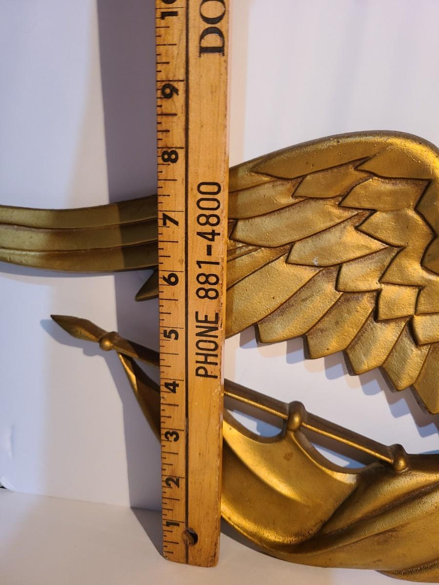 Metal. Vintage. Ready to mount on wall. Medium weight. Gold in color. No makers marks. Please see all pictures as they are the best representation of the items. The pictures show condition, measurements if taken, and what is included in the lot. Due to the large amount that we photograph and the time frame, we are not always able to take measurements. All items unless noted, are pre-owned and have been used. If you purchased furniture, you must bring help. We do not allow one person to carry large furniture out on their own. Bring help, tools and a truck for the safety of our client’s homes, and your personal safety. Any damages that result to the property including walls, and floors due to moving of the furniture will be charged to the buyer. Company policy. Thank you.