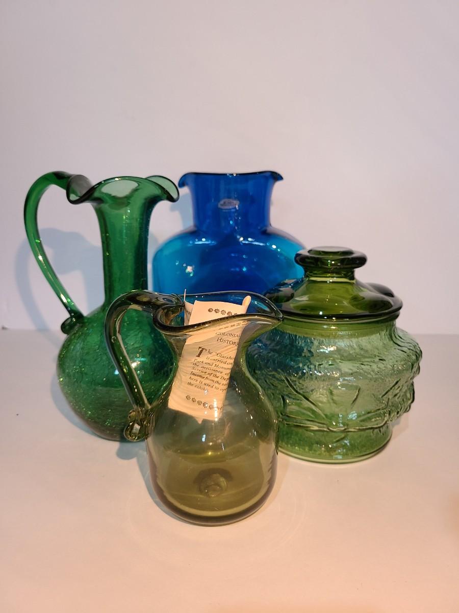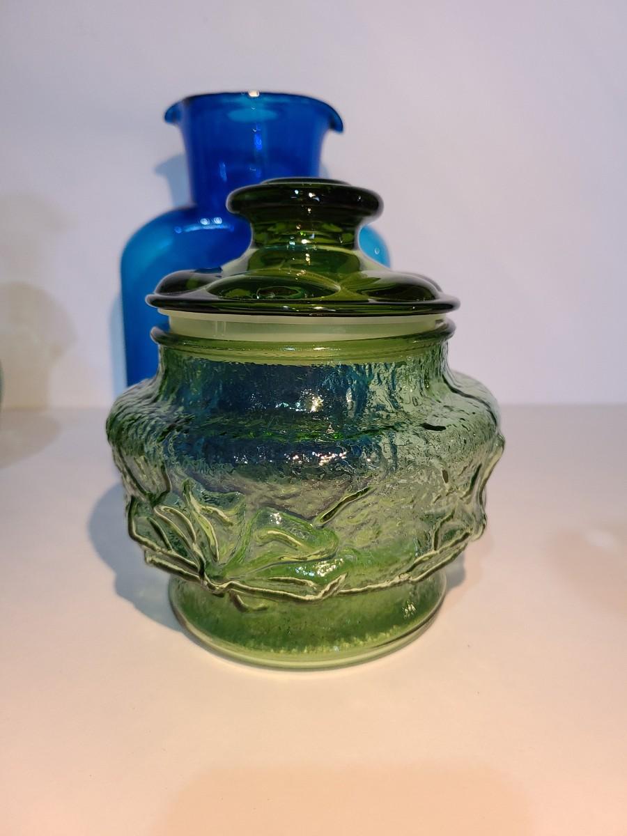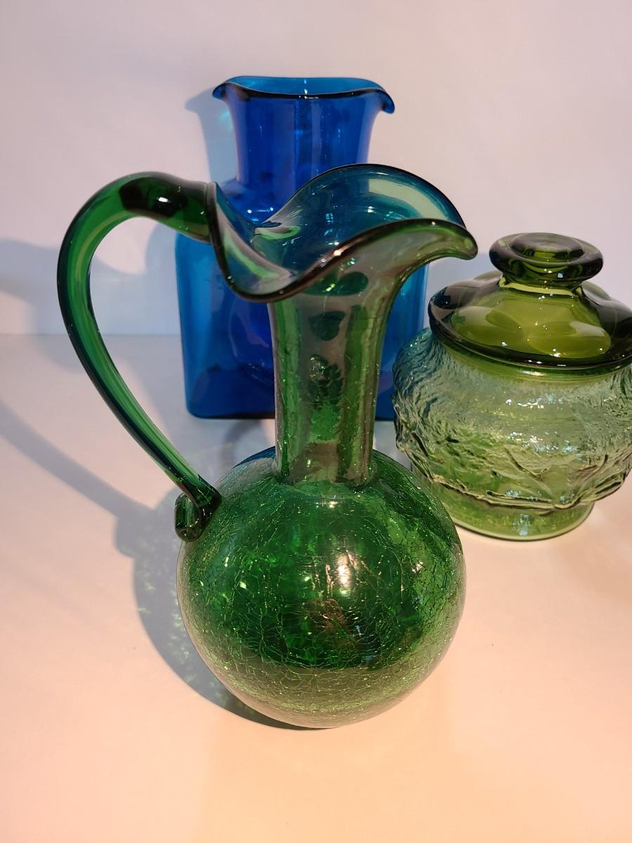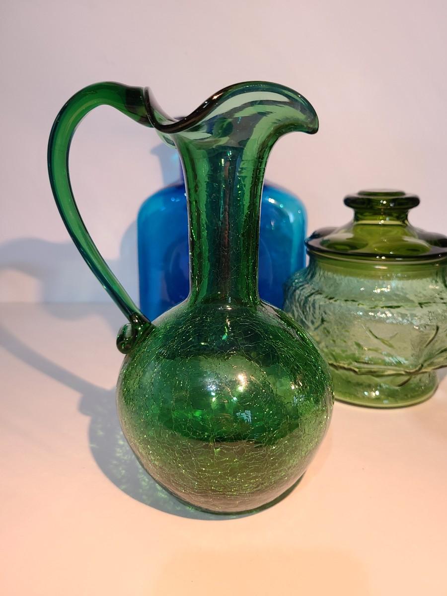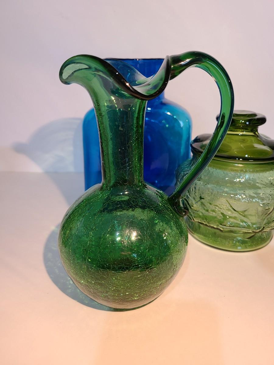 LOT 19: Blenko Pitcher, MCM Green Canister, Crackle Glass and More