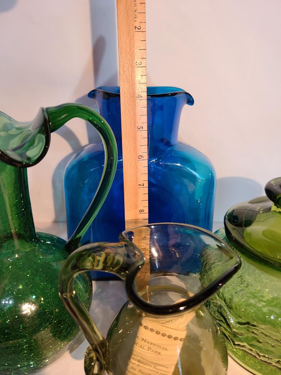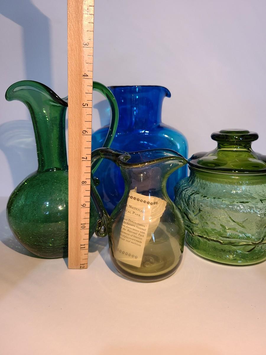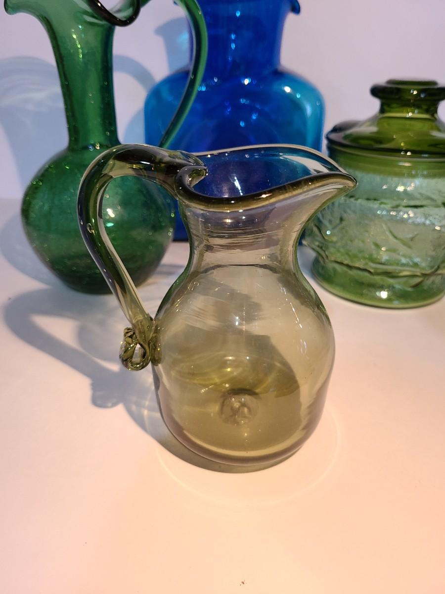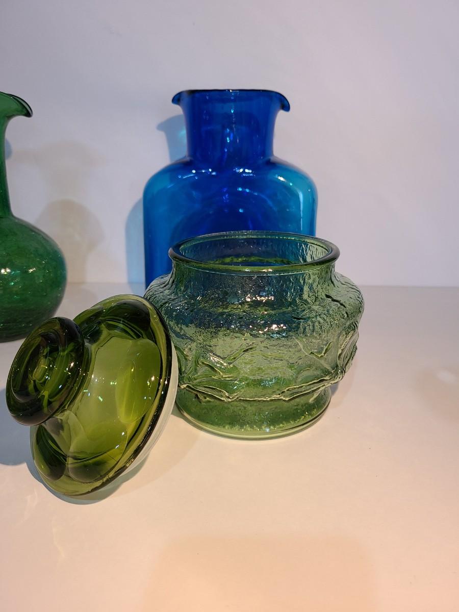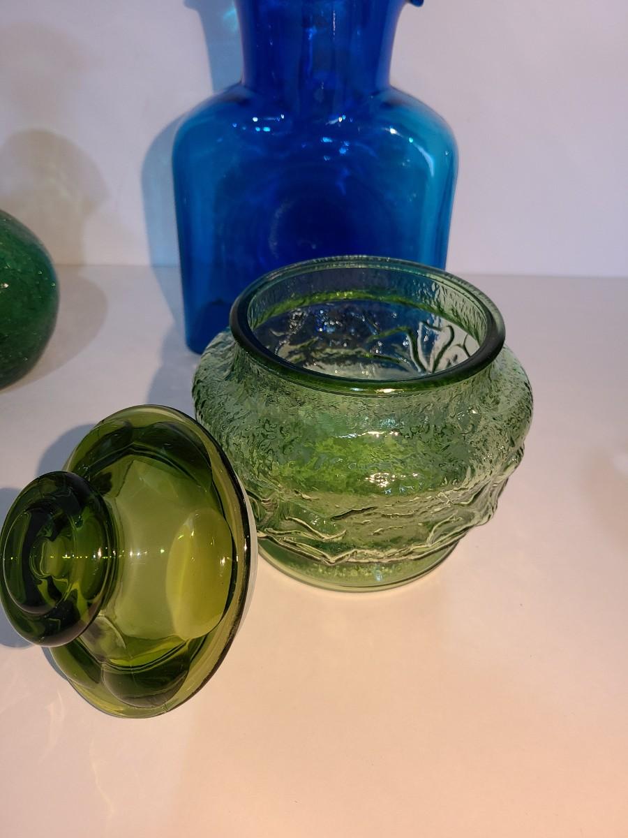 LOT 19: Blenko Pitcher, MCM Green Canister, Crackle Glass and More