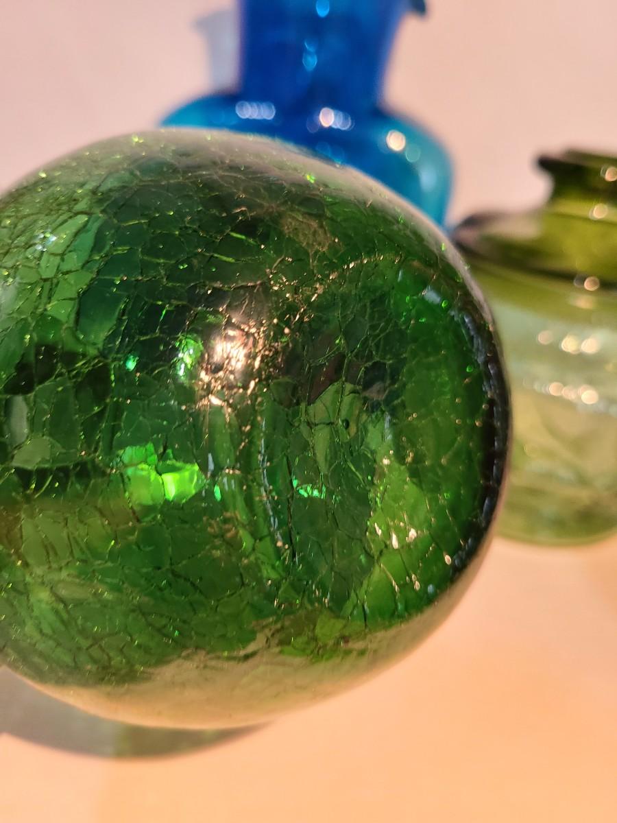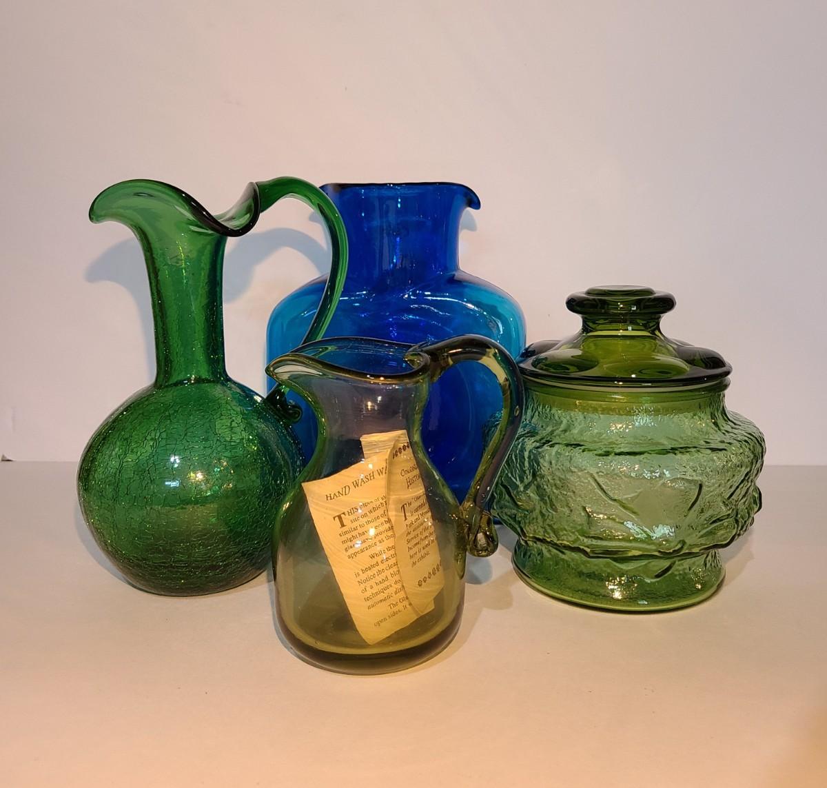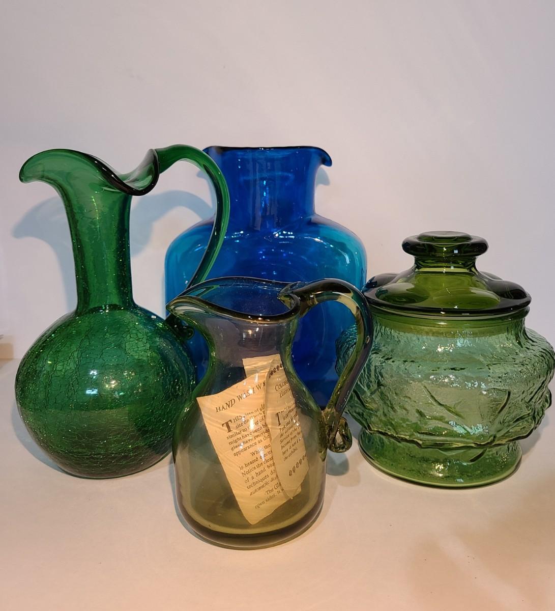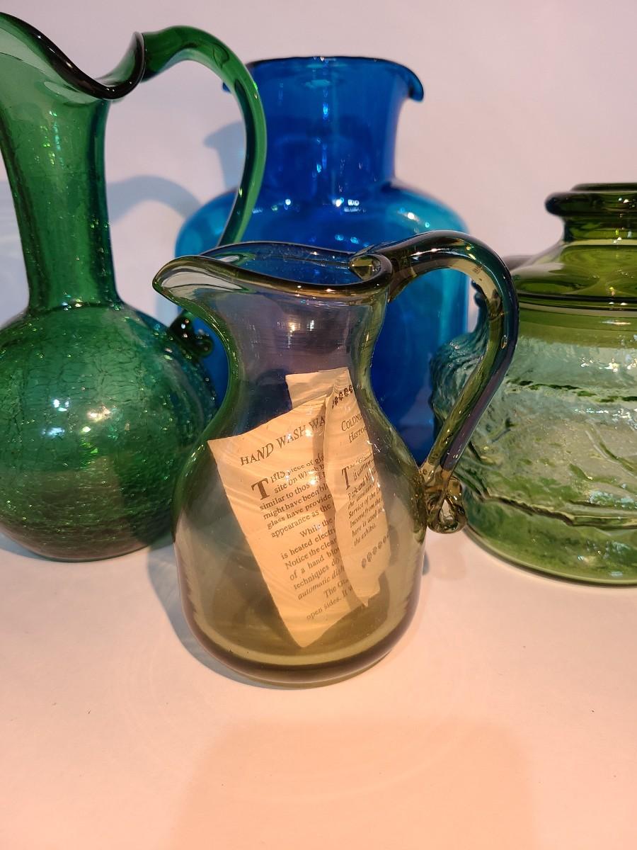 LOT 19: Blenko Pitcher, MCM Green Canister, Crackle Glass and More