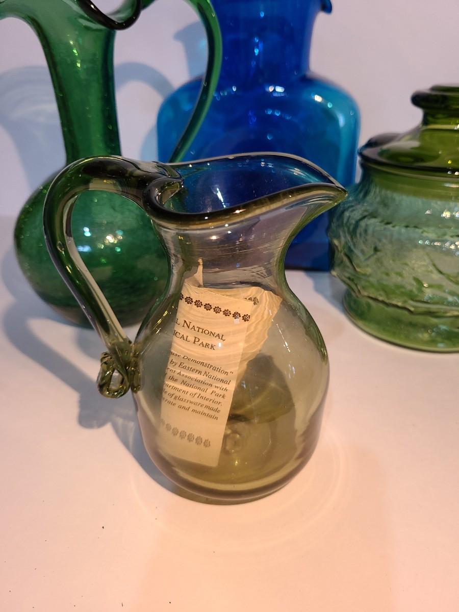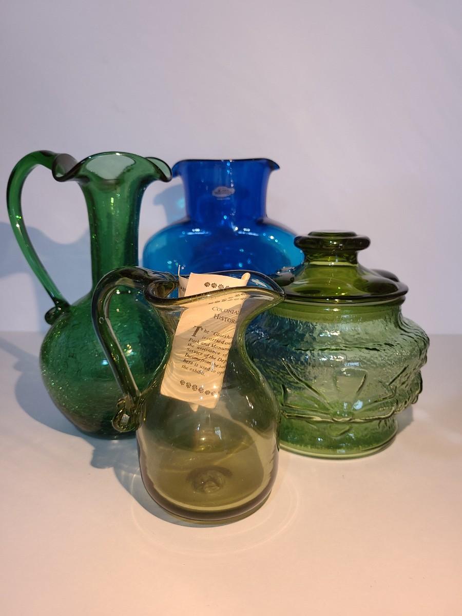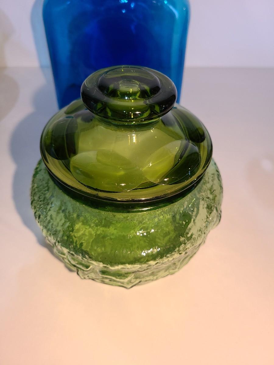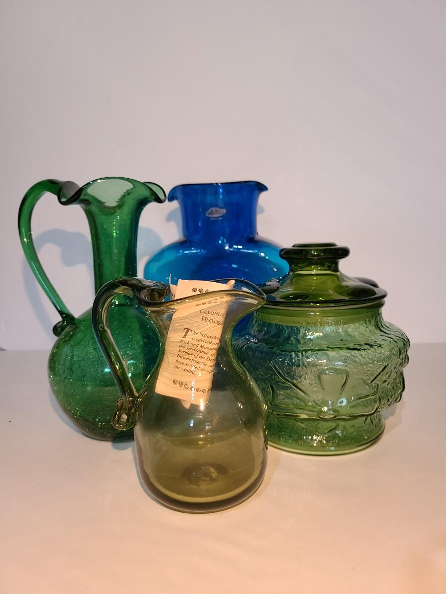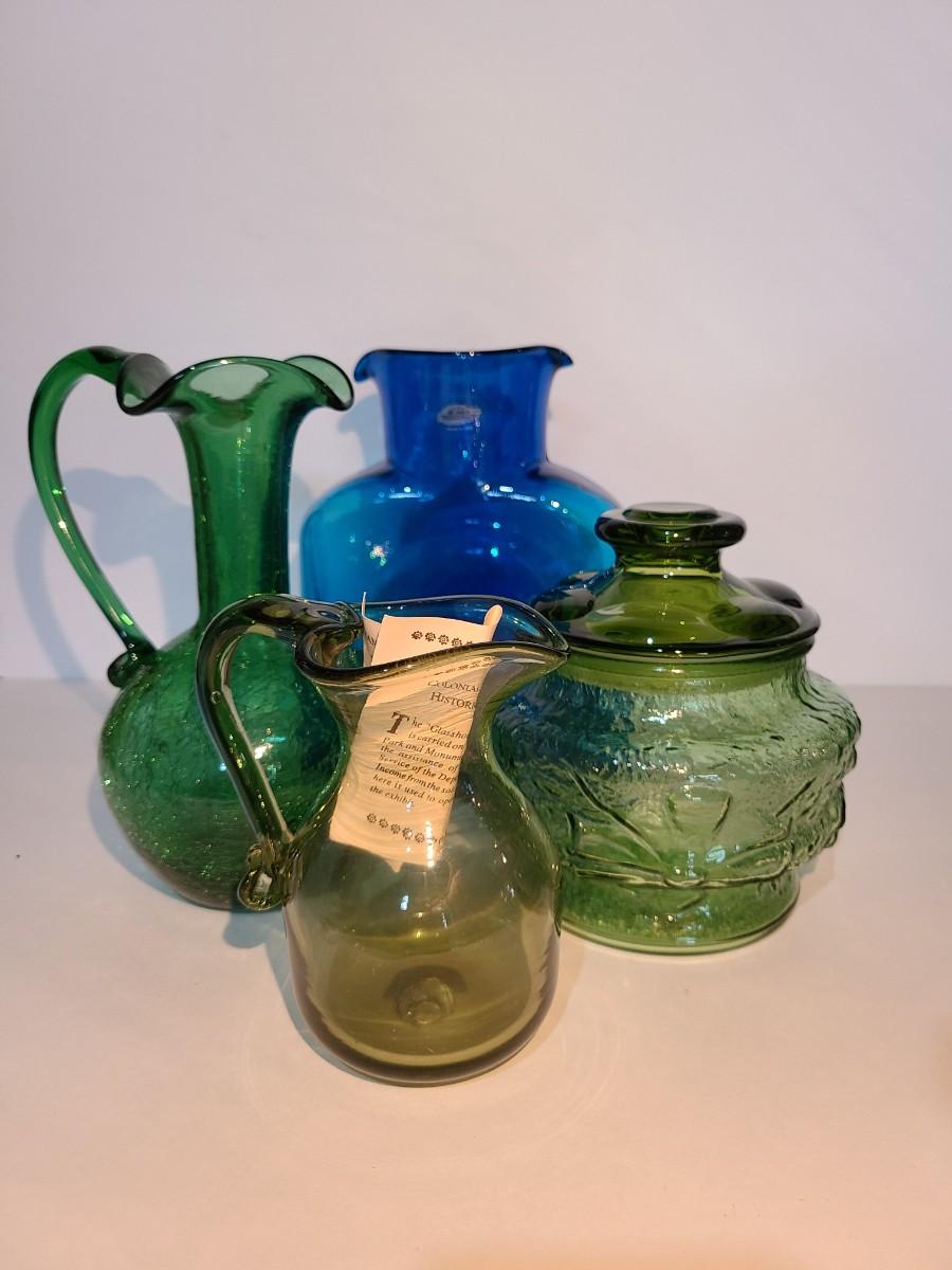 LOT 19: Blenko Pitcher, MCM Green Canister, Crackle Glass and More