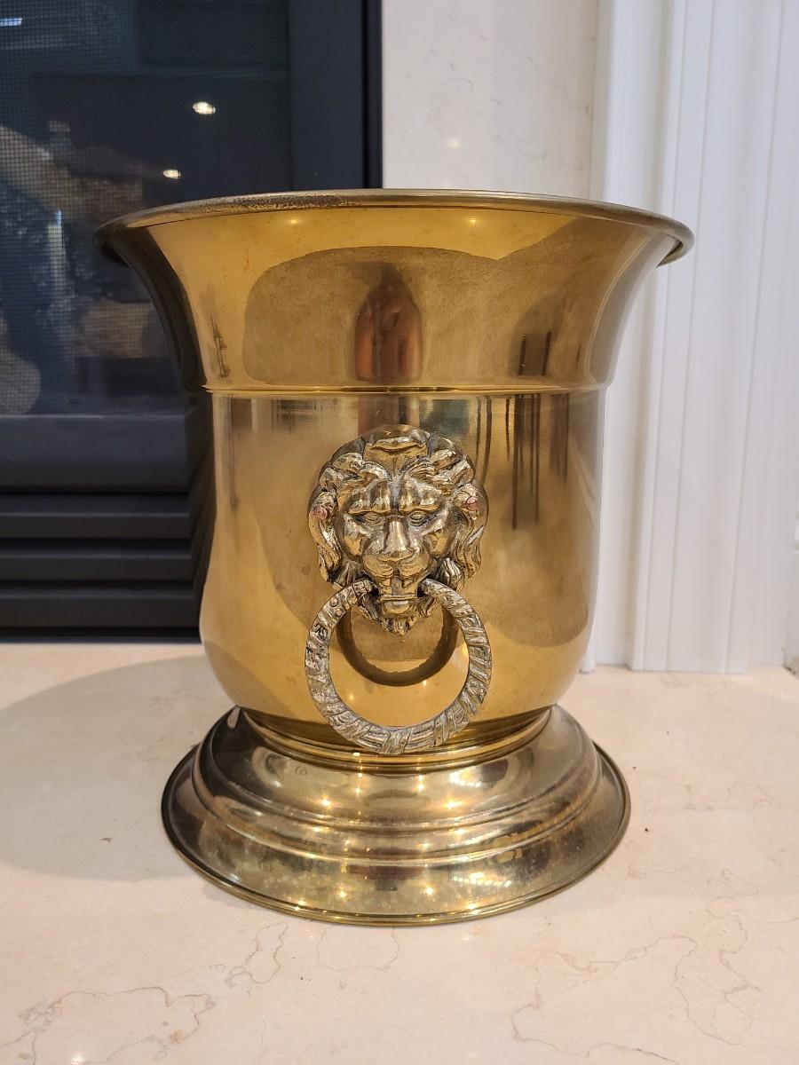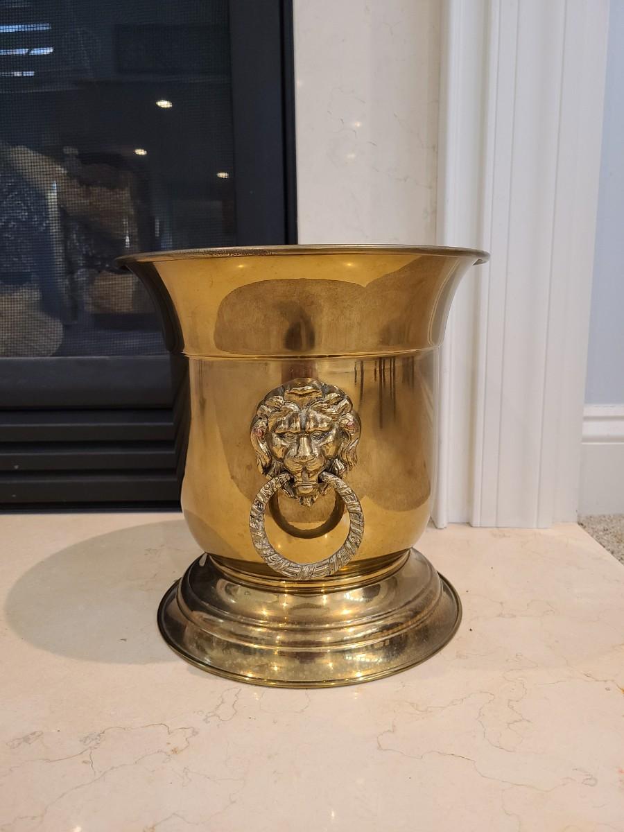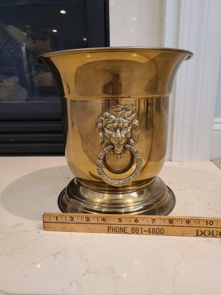 LOT 25: Vintage MCM Taurus Brass Lionhead Planter