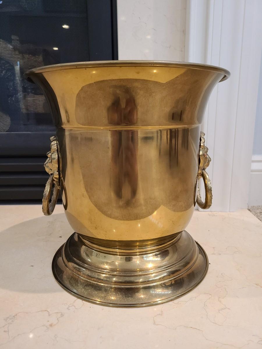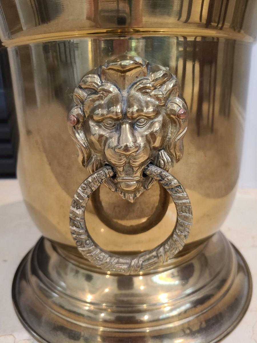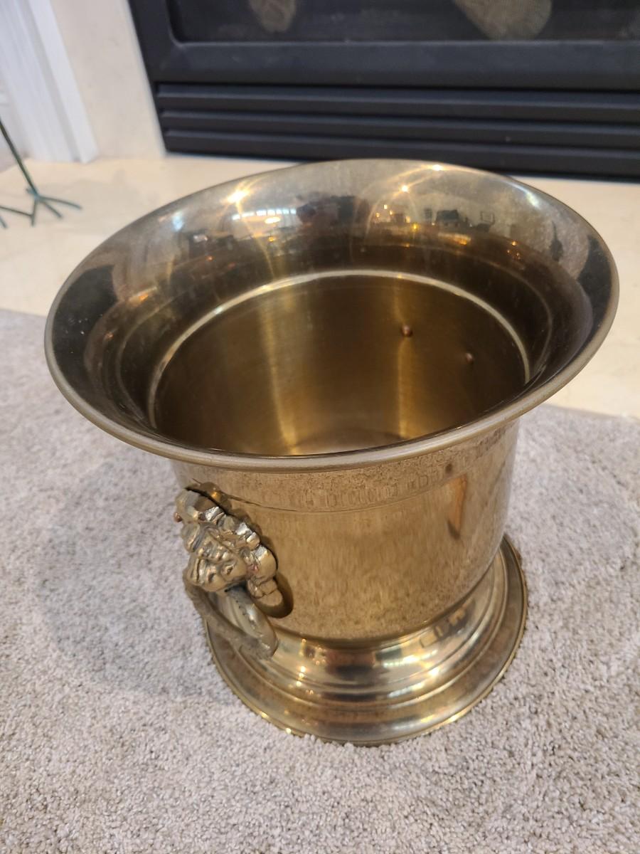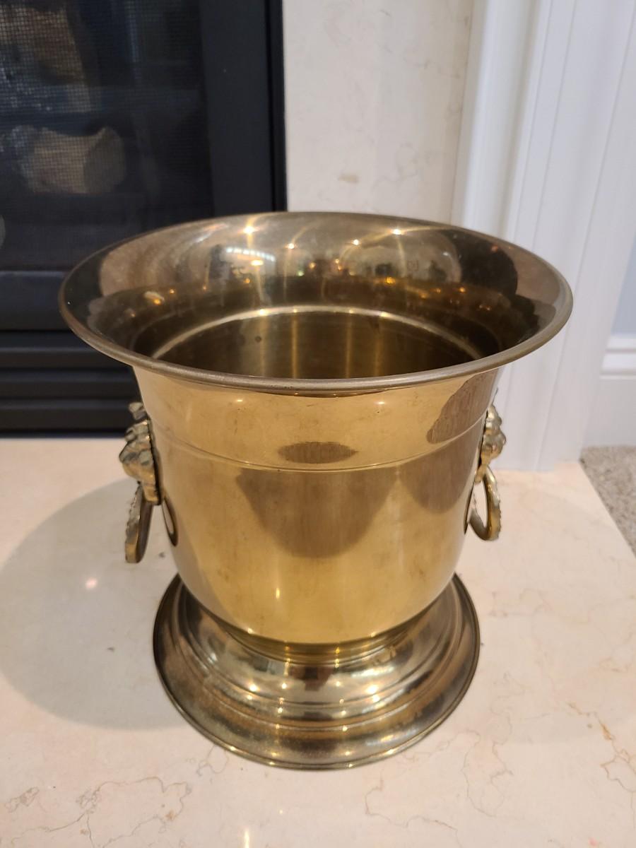 LOT 25: Vintage MCM Taurus Brass Lionhead Planter