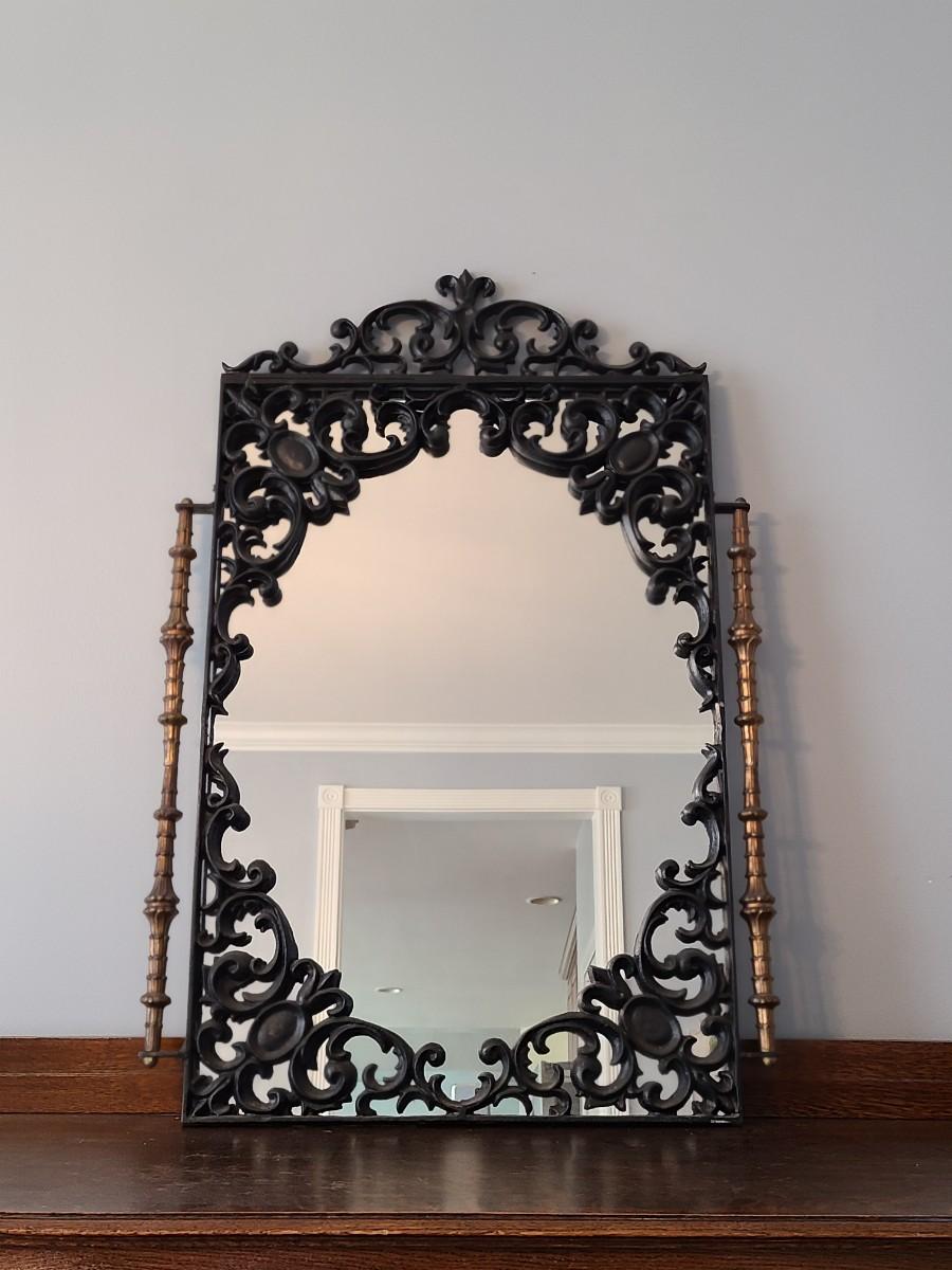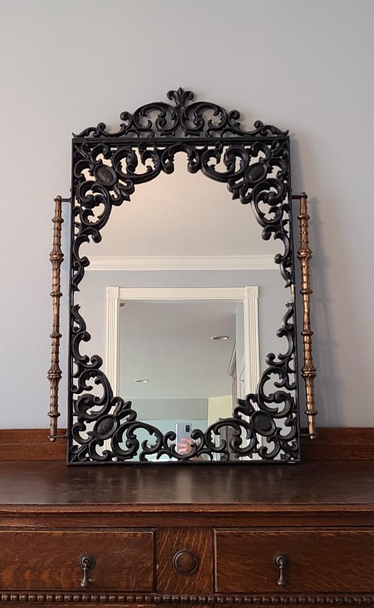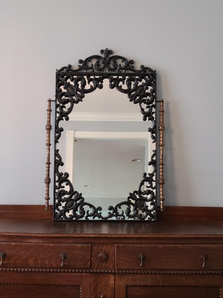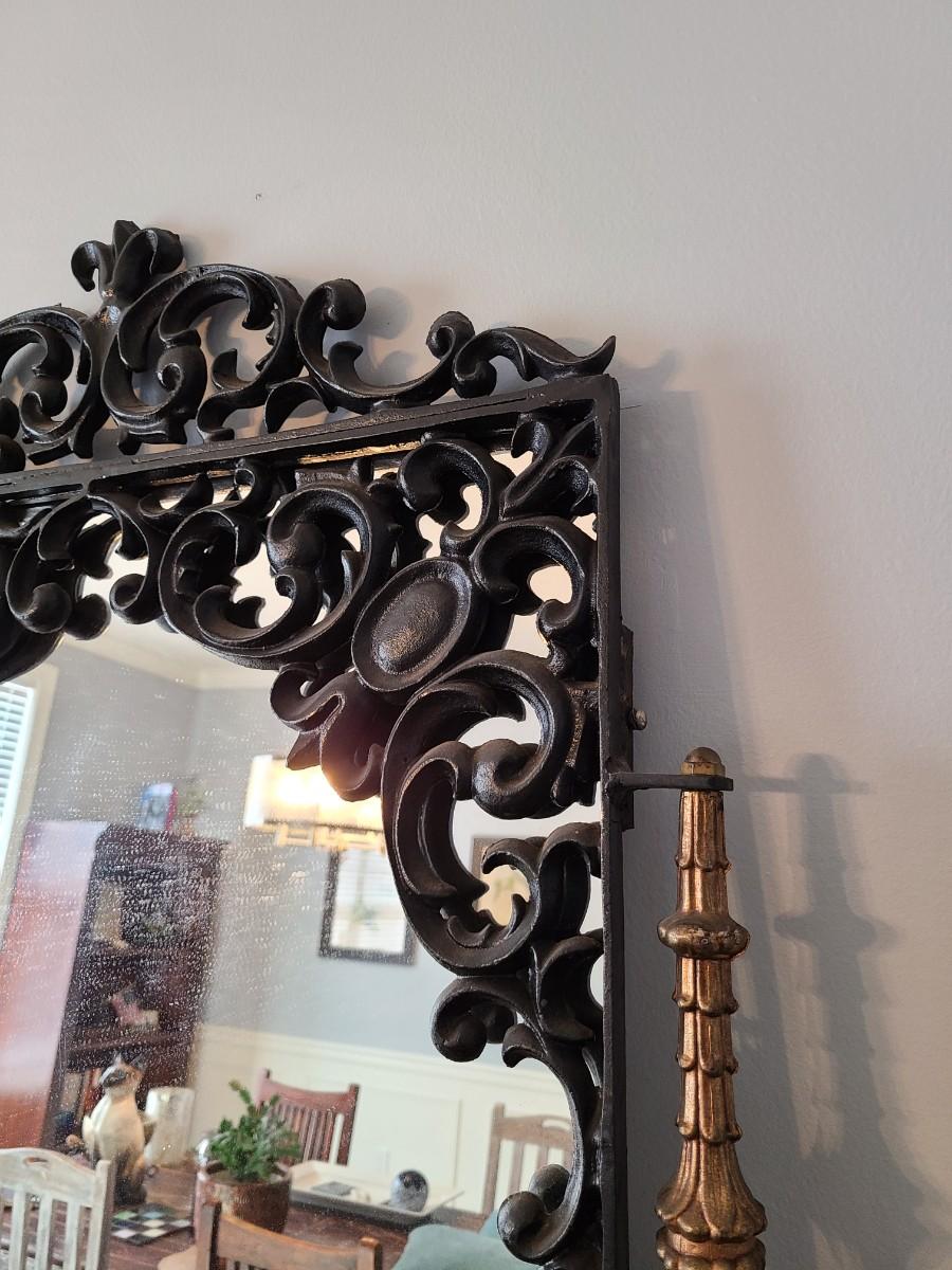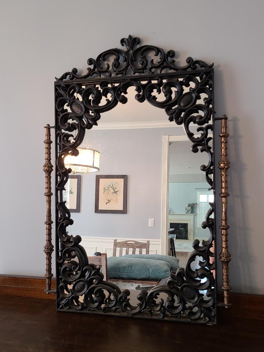 This is a vey unique piece! Can hang on wall or sit on piece. Perfect for any room in the house. This is very heavy! The mirror just slides in and can be replaced for newer one. It is just rectangle not round. Also, you can remove and use alibe. Mirror showing aging and small chips at edges. Please see all pictures as they are the best representation of the items. The pictures show condition, measurements if taken, and what is included in the lot. Due to the large amount that we photograph and the time frame, we are not always able to take measurements. All items unless noted, are pre-owned and have been used. If you purchased furniture, you must bring help. We do not allow one person to carry large furniture out on their own. Bring help, tools and a truck for the safety of our client’s homes, and your personal safety. Any damages that result to the property including walls, and floors due to moving of the furniture will be charged to the buyer. Company policy. Thank you.