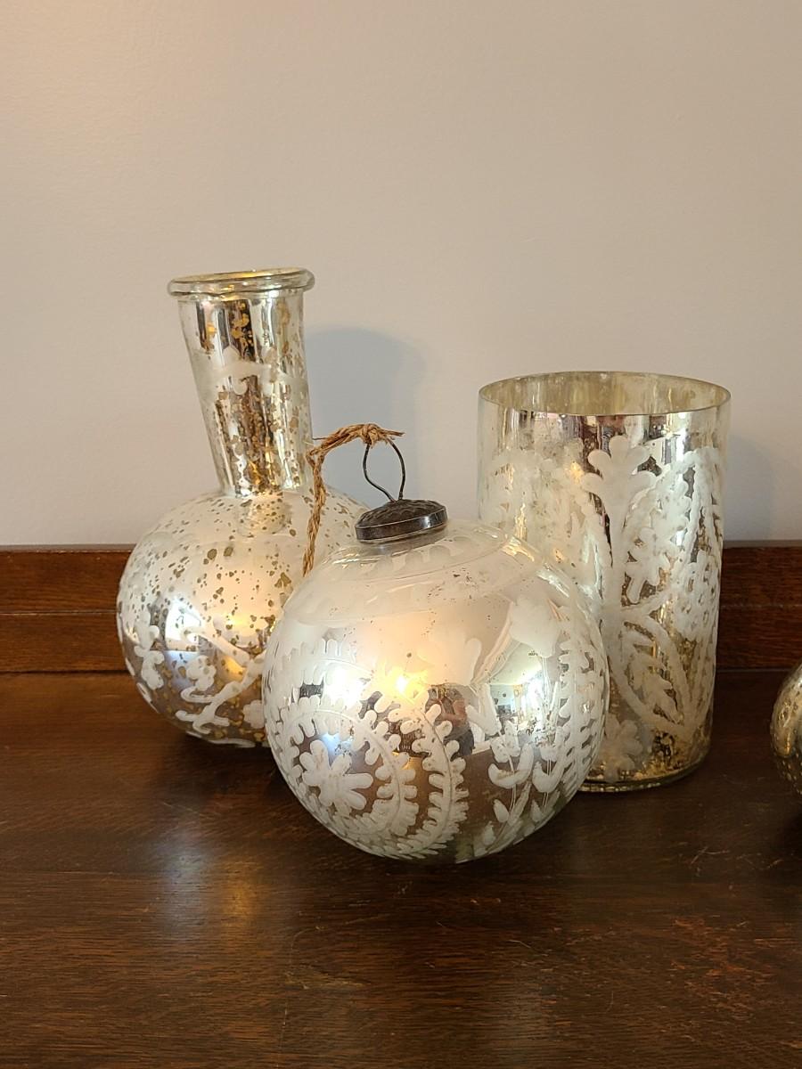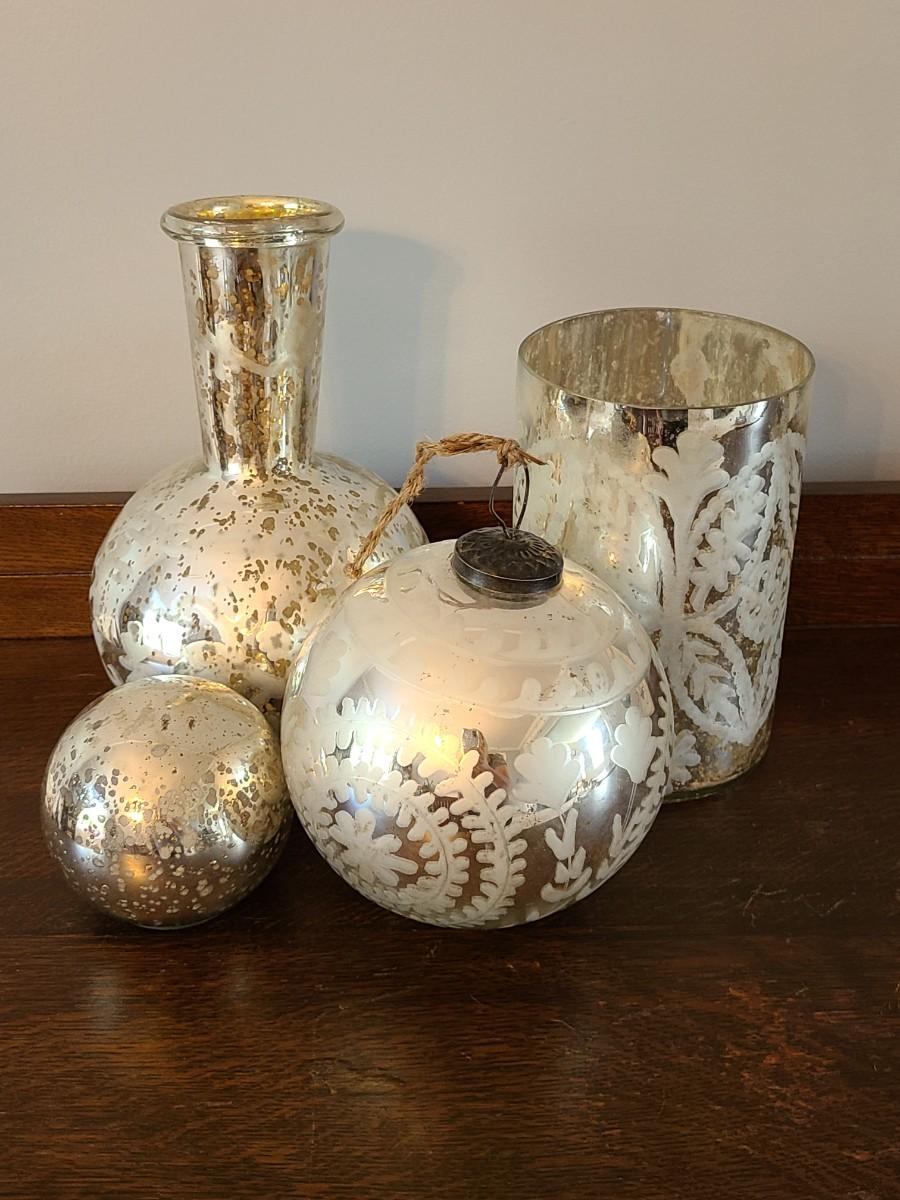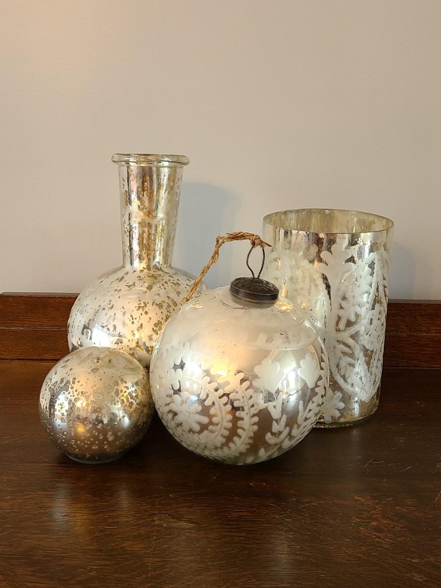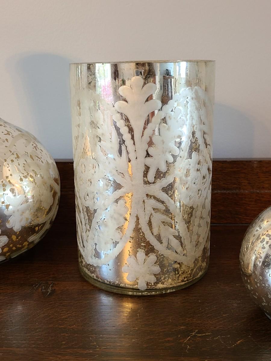 LOT 39: Mercury Glass Home Decor: Vase, Candle Holder and More