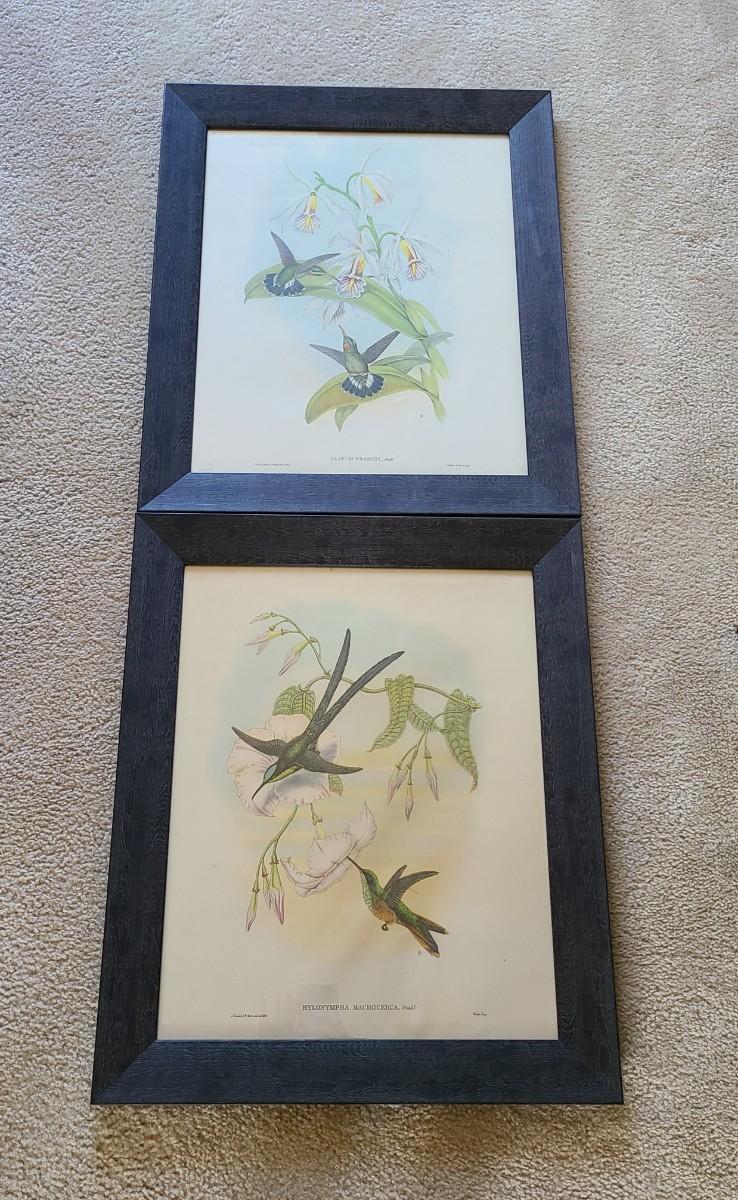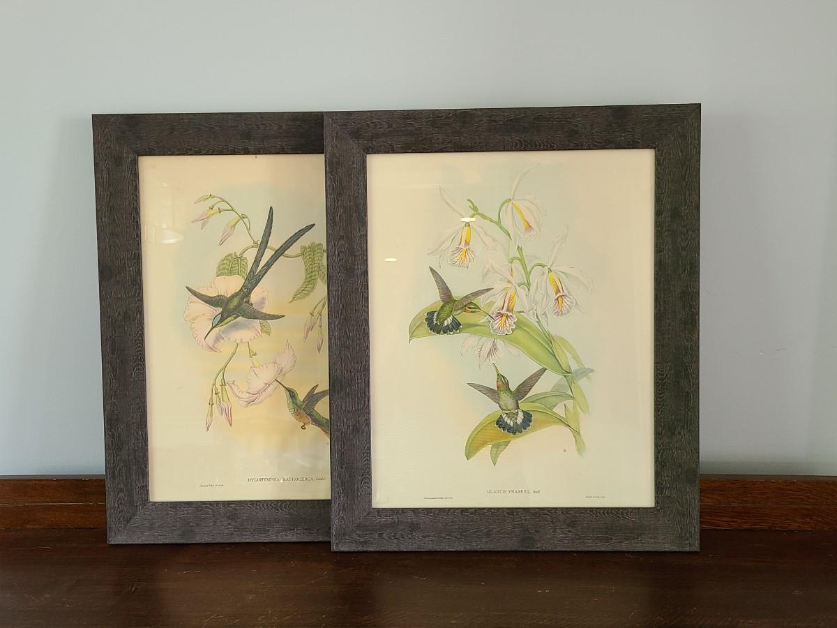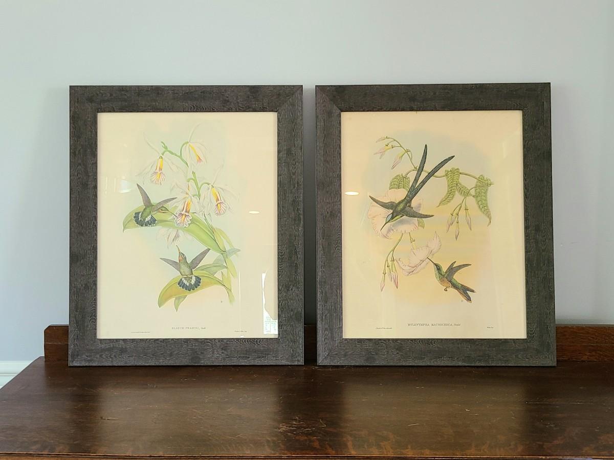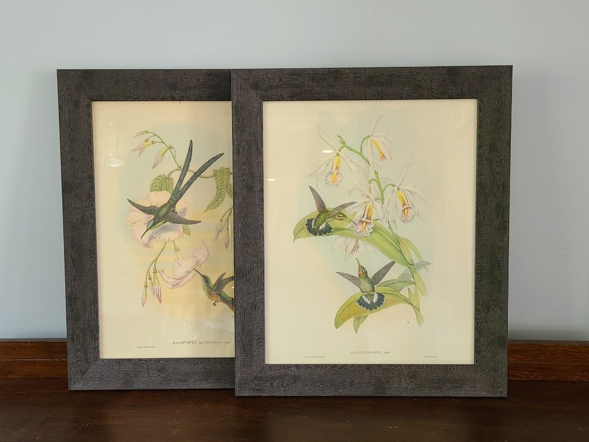 LOT 43: Large Pair of Hummingbird Vintage Litho Prints by Gould & Richter