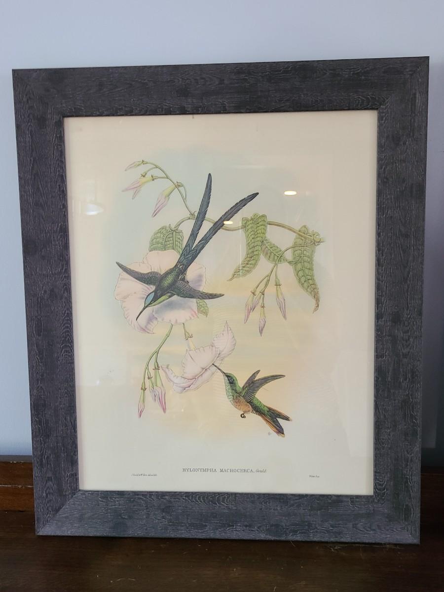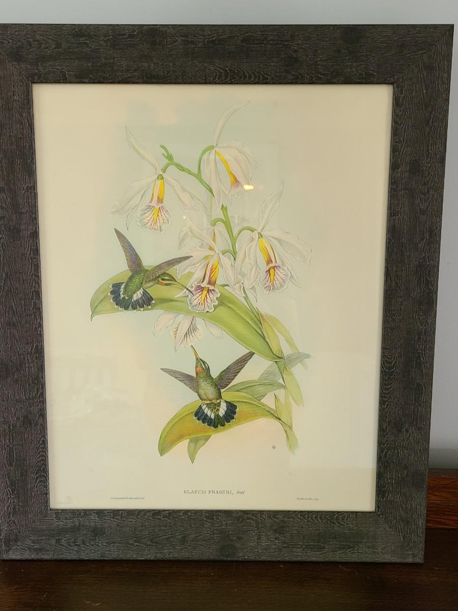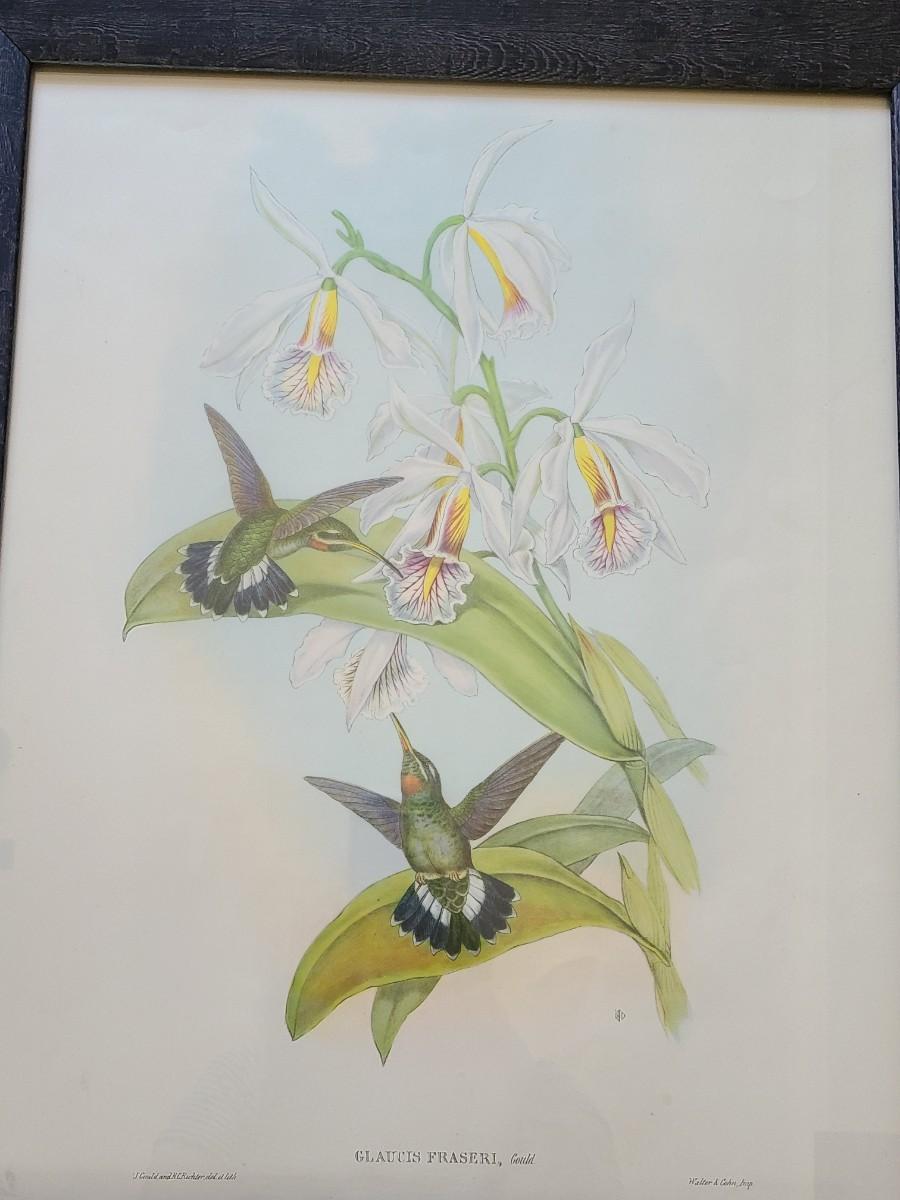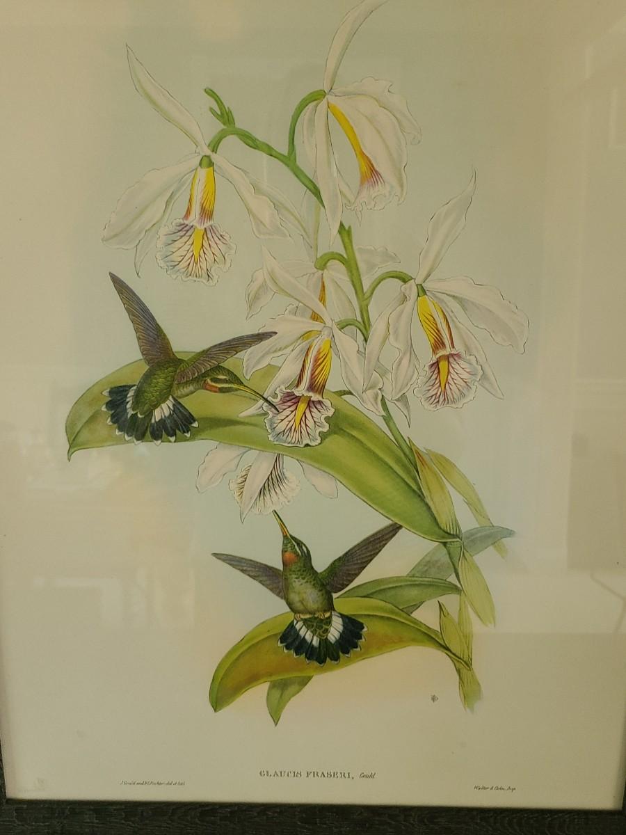 LOT 43: Large Pair of Hummingbird Vintage Litho Prints by Gould & Richter