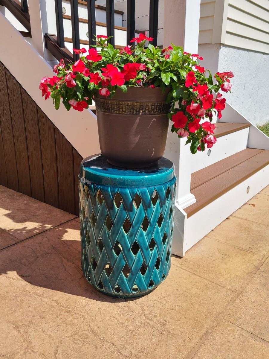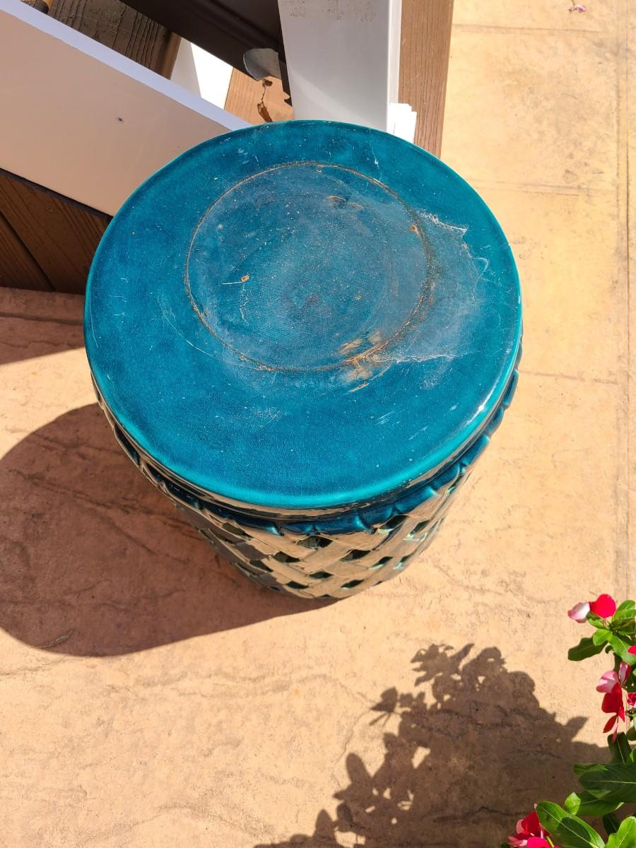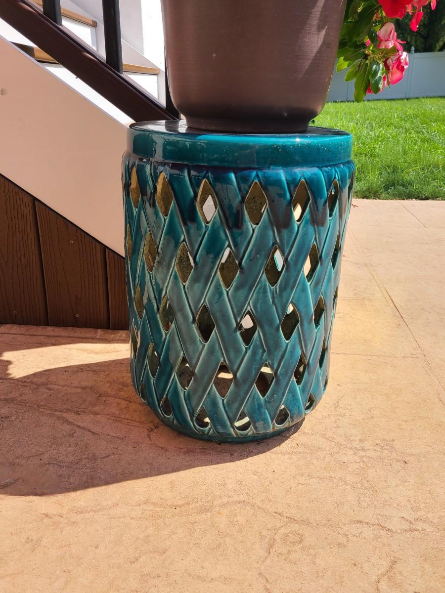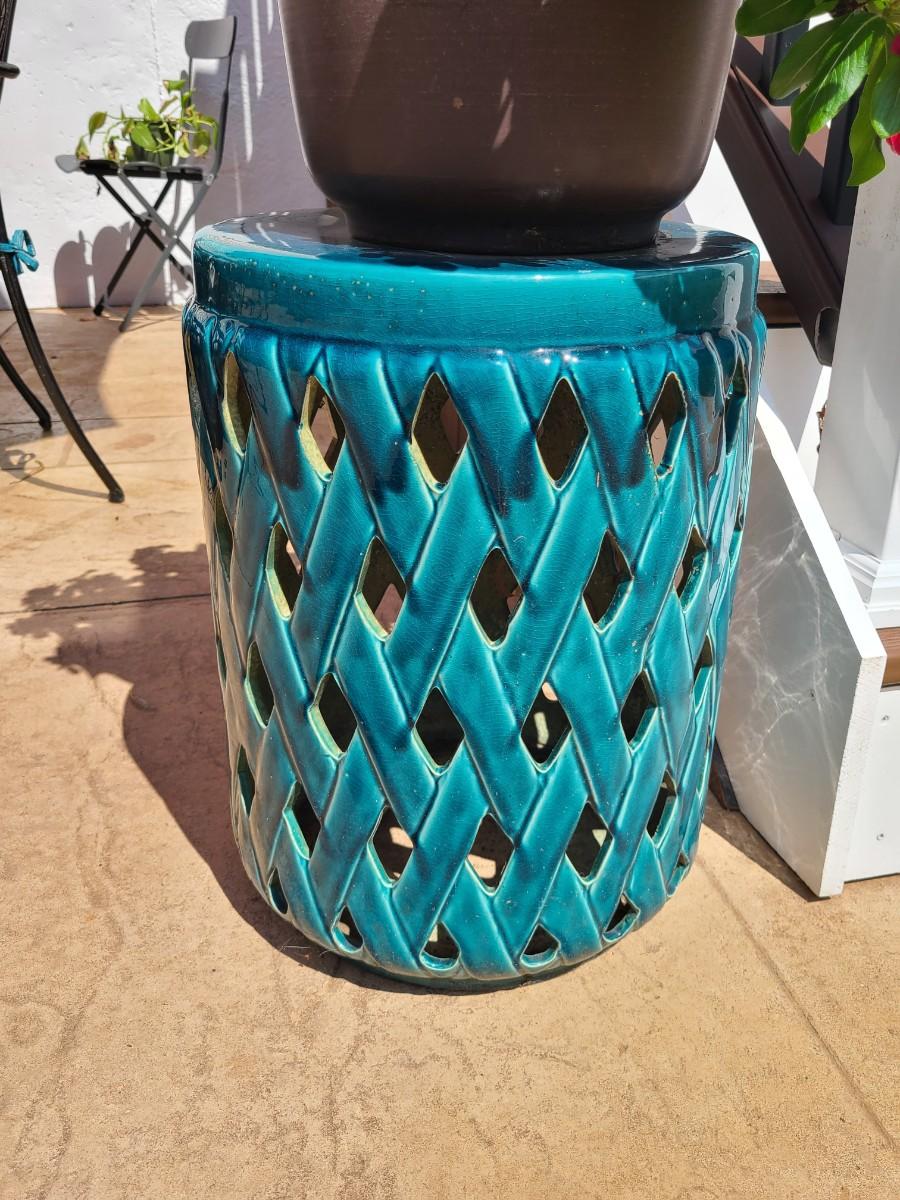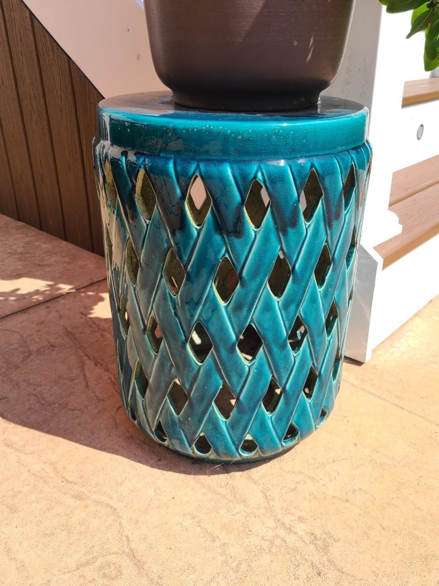 LOT 47: Patio Ceramic Glazed Plant Stand/ Side Table