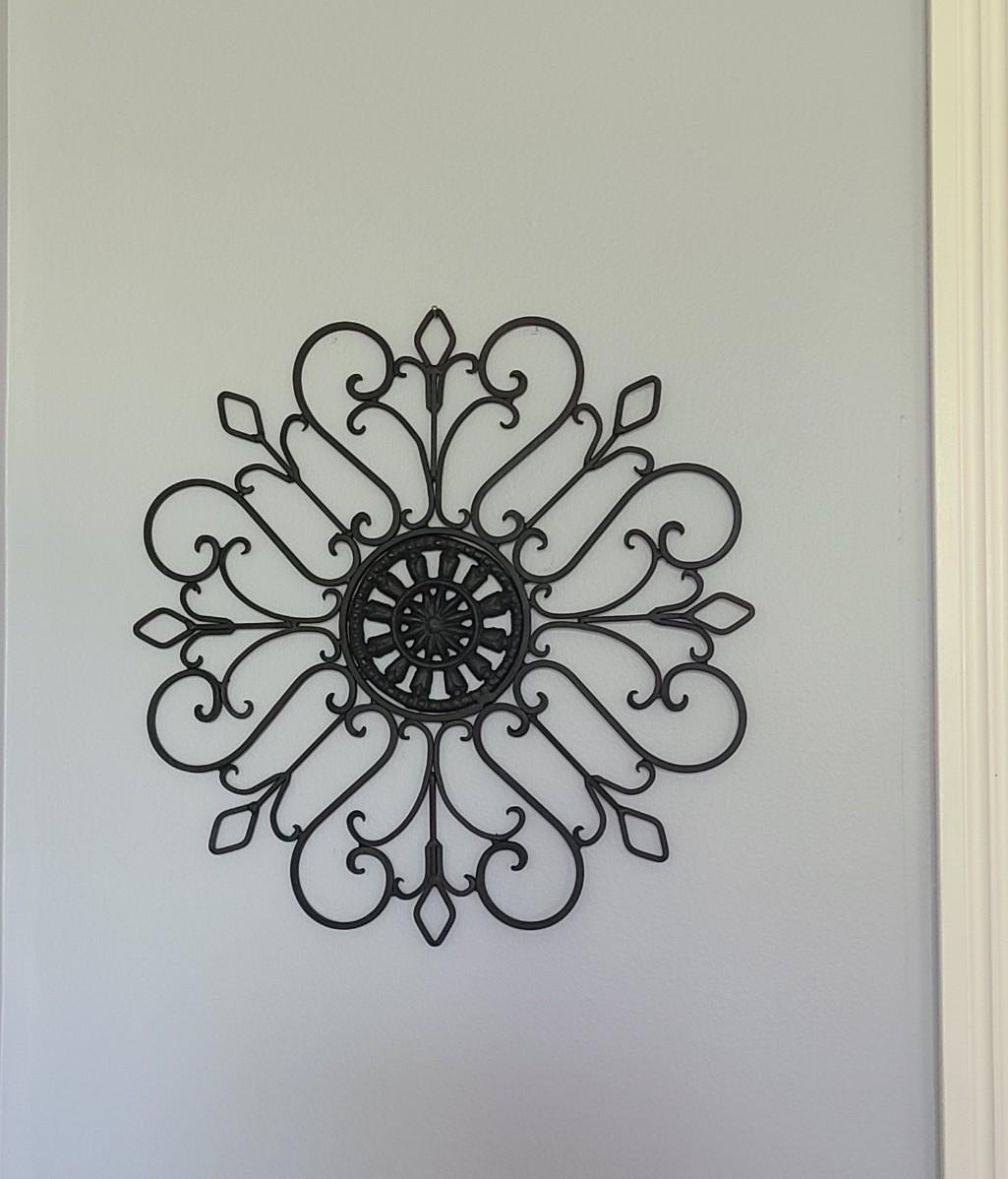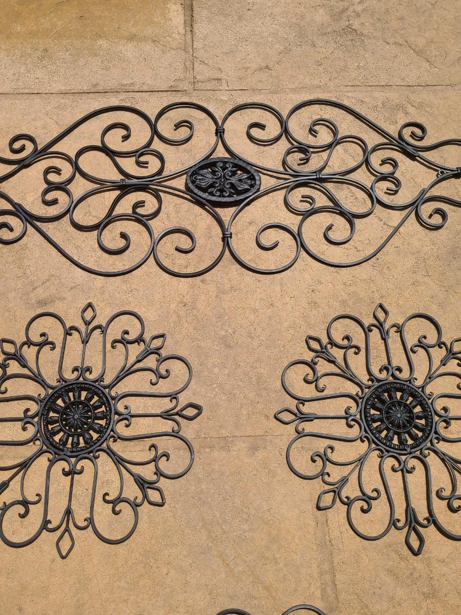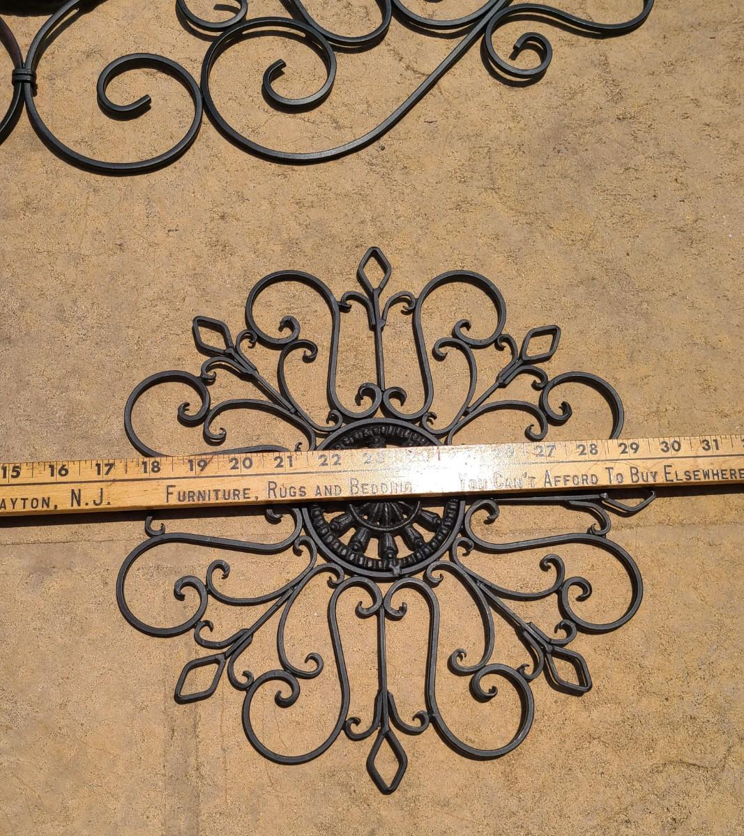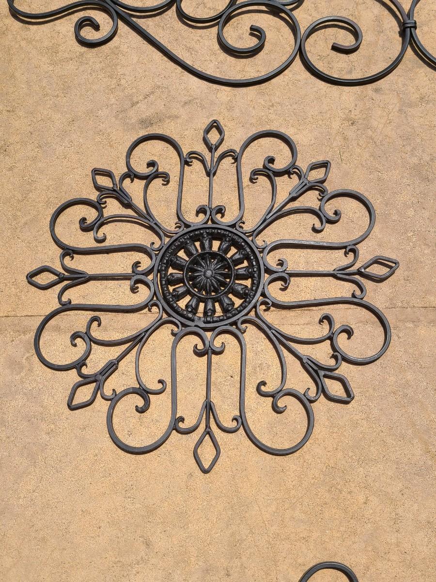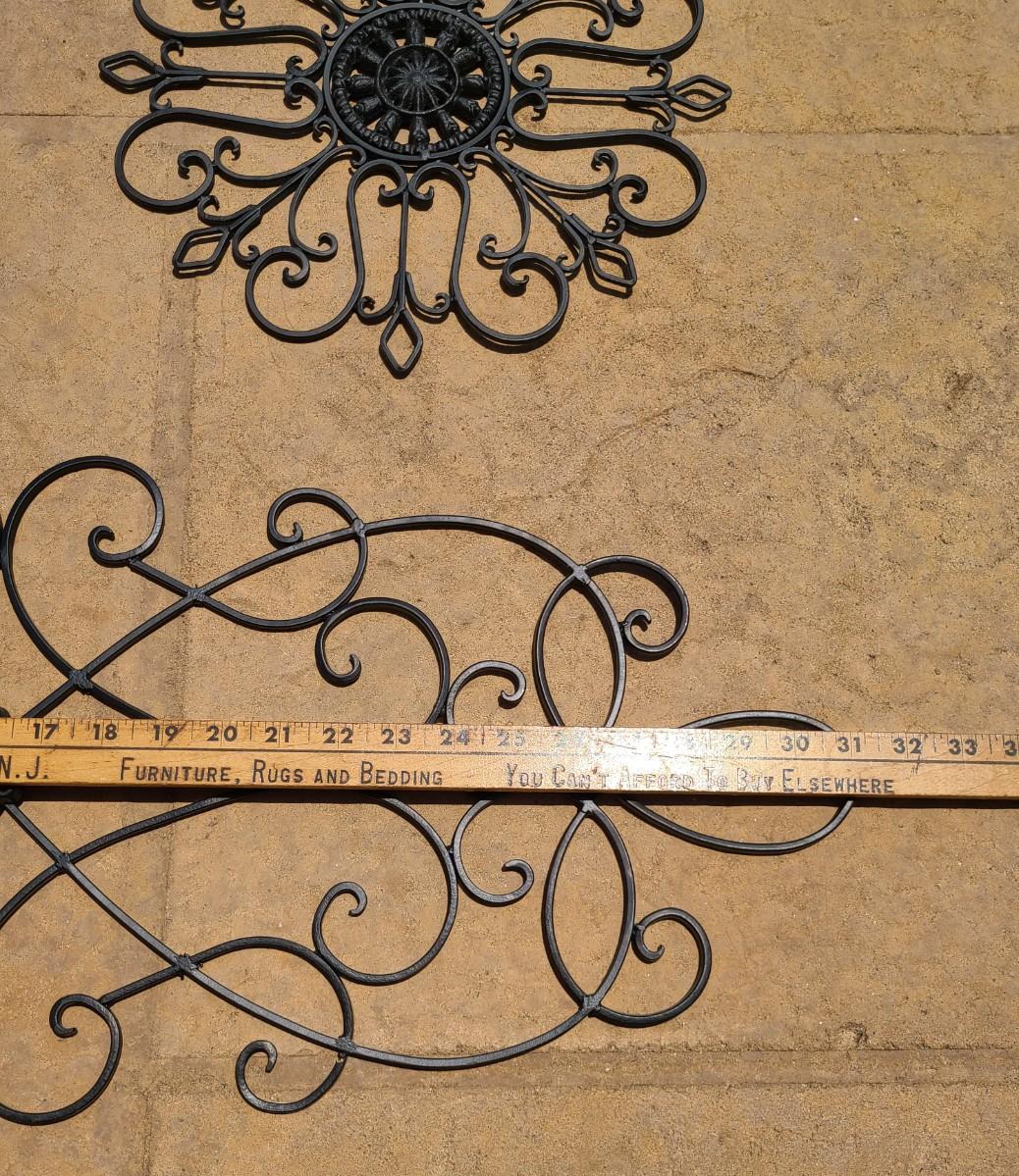 Four pieces of metal scrollwork reminiscent of gate scrollwork. These were used indoors above entryways, and on walls. Ready for new home! Still like new! Please see all pictures as they are the best representation of the items. The pictures show condition, measurements if taken, and what is included in the lot. Due to the large amount that we photograph and the time frame, we are not always able to take measurements. All items unless noted, are pre-owned and have been used. If you purchased furniture, you must bring help. We do not allow one person to carry large furniture out on their own. Bring help, tools and a truck for the safety of our client’s homes, and your personal safety. Any damages that result to the property including walls, and floors due to moving of the furniture will be charged to the buyer. Company policy. Thank you.