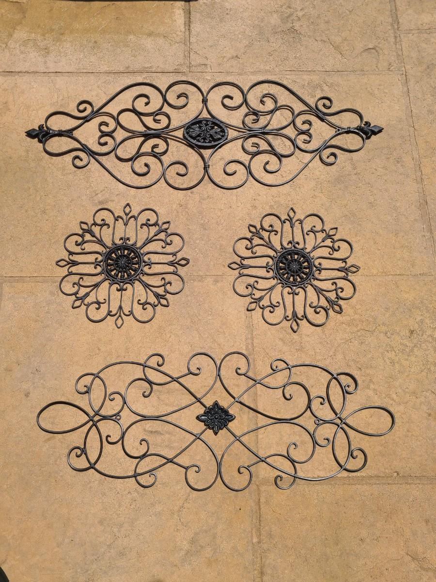 LOT 48: Four Metal Scrollwork Pieces Indoor or Out