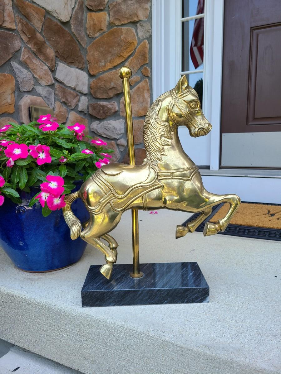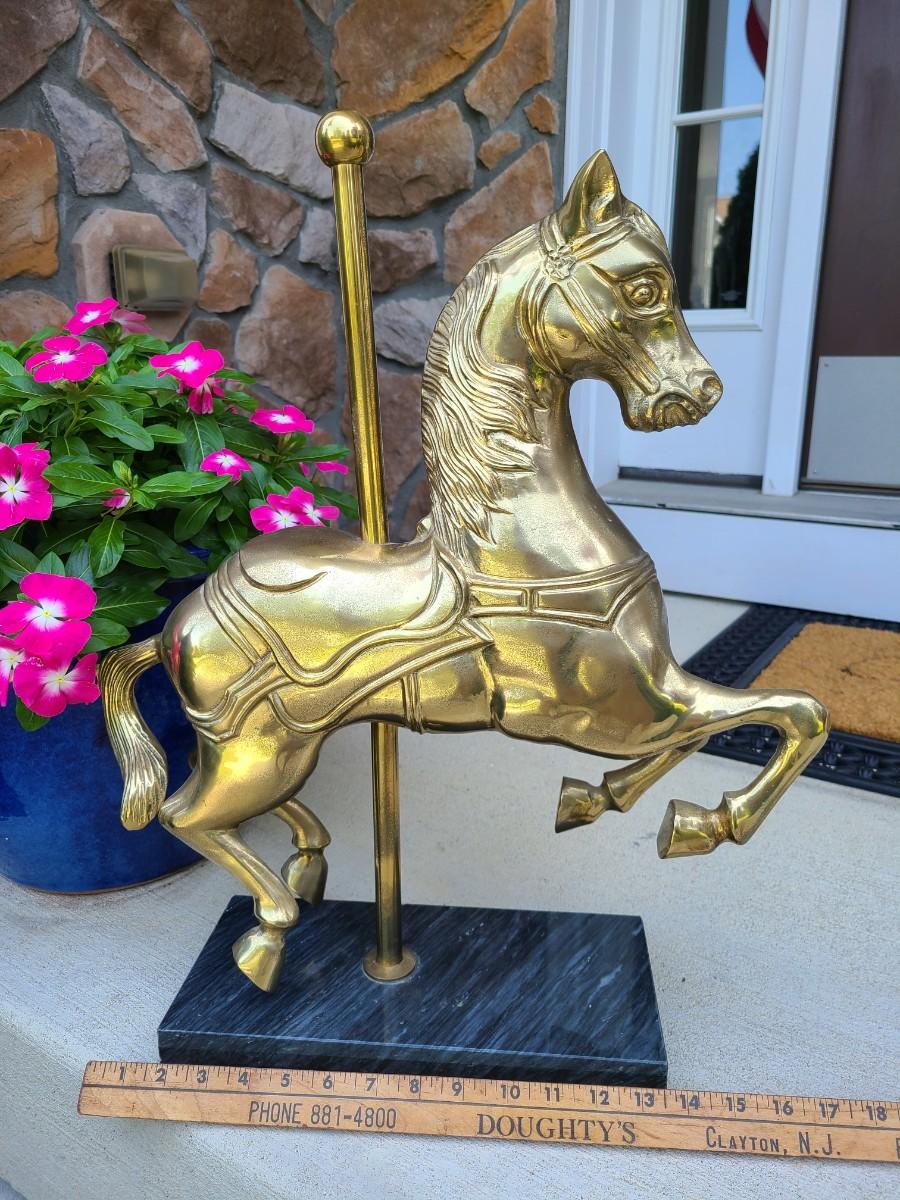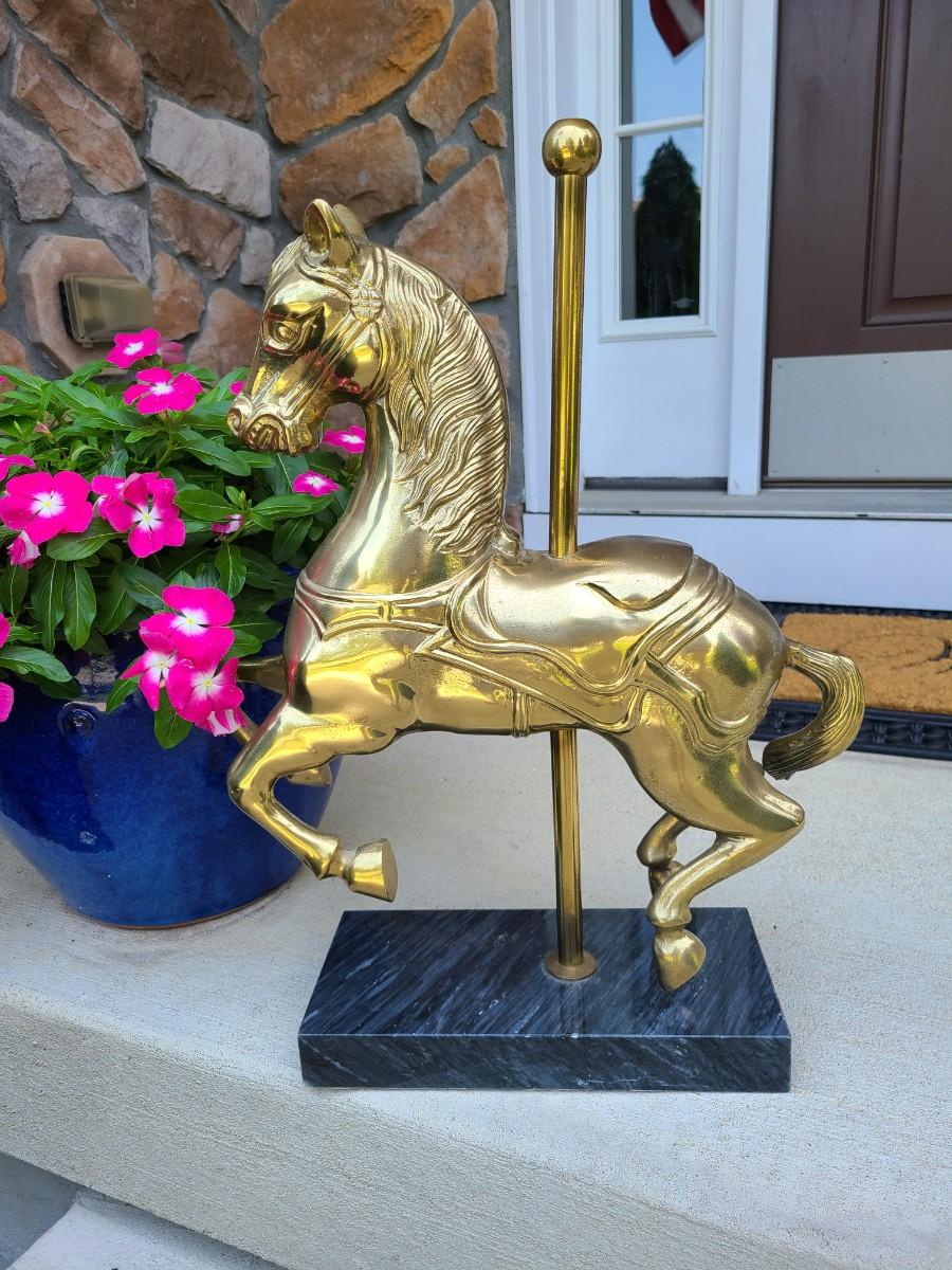 LOT 49: Brass & Marble Large Carousel Horse