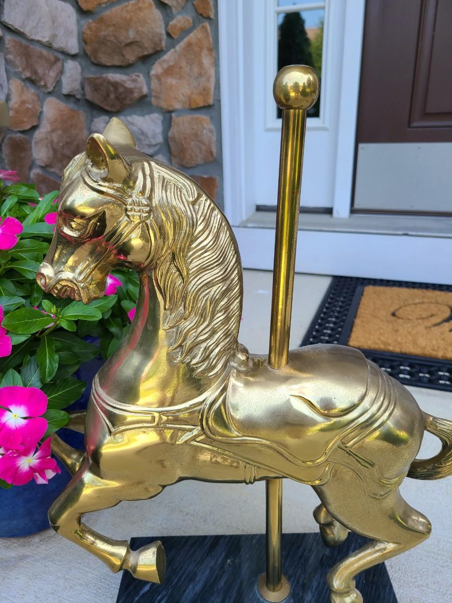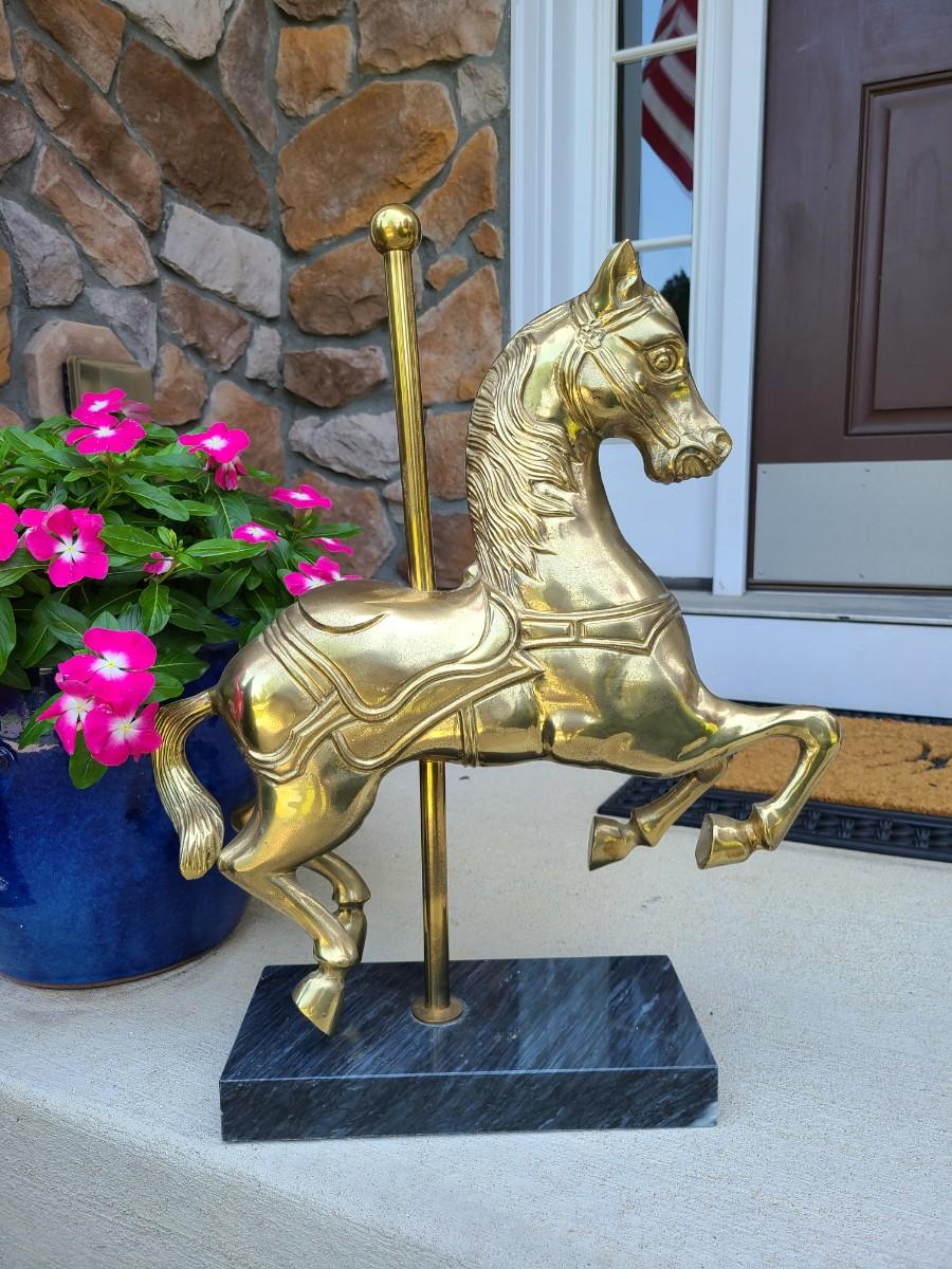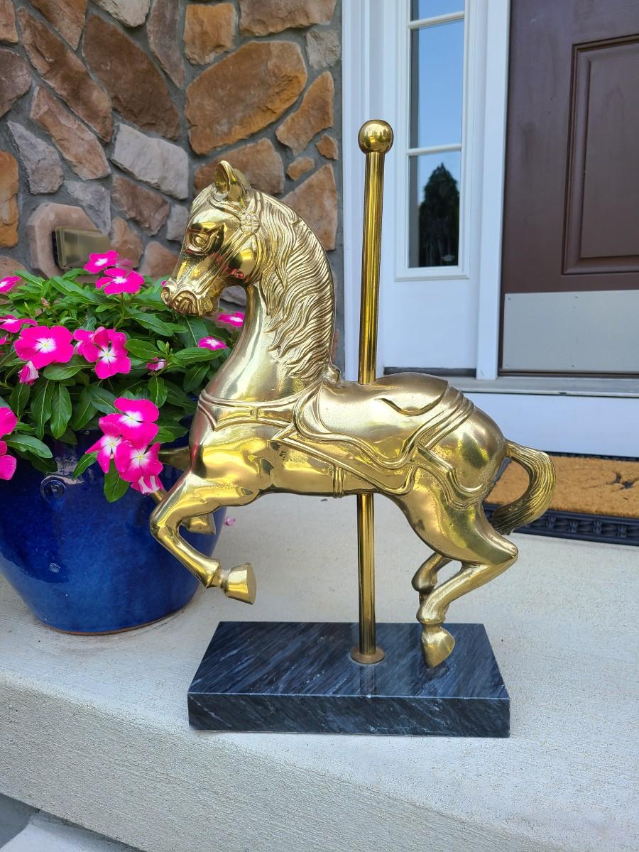 LOT 49: Brass & Marble Large Carousel Horse