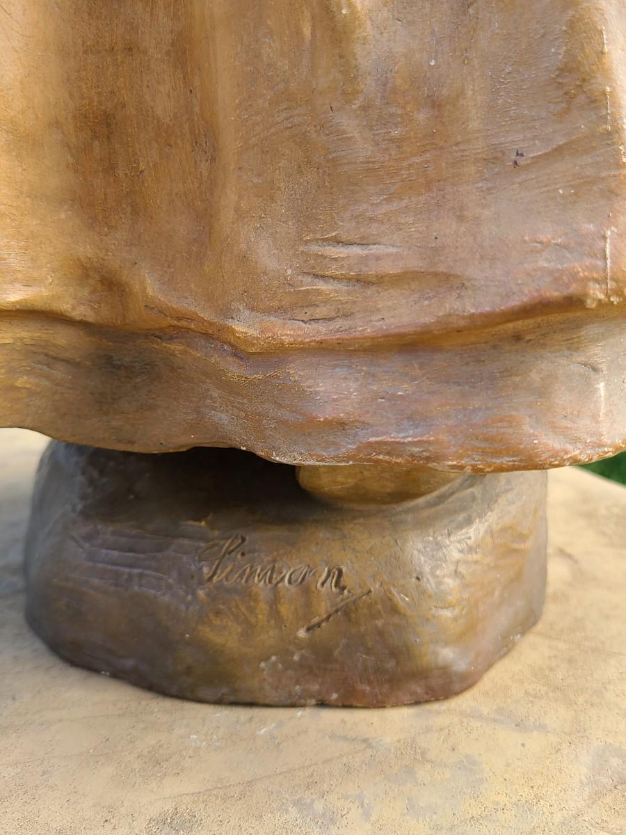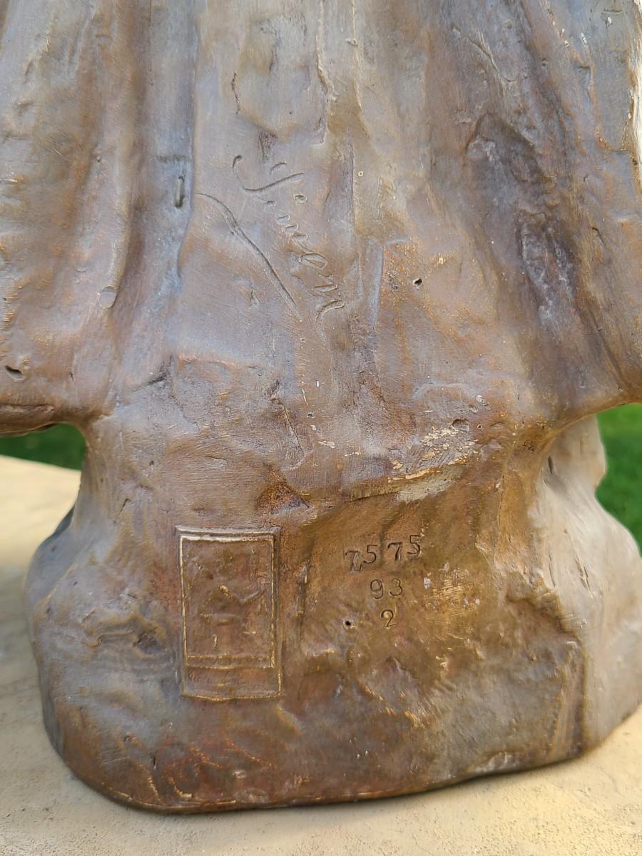 This piece is gorgeous. Pictures taken outside to show detail but this has been kept indoors. Large piece, heavy, solid terracotta. Amazing detail. Signed "Simon" with Goldscheider Stamp. Please see all pictures as they are the best representation of the items. The pictures show condition, measurements if taken, and what is included in the lot. Due to the large amount that we photograph and the time frame, we are not always able to take measurements. All items unless noted, are pre-owned and have been used. If you purchased furniture, you must bring help. We do not allow one person to carry large furniture out on their own. Bring help, tools and a truck for the safety of our client’s homes, and your personal safety. Any damages that result to the property including walls, and floors due to moving of the furniture will be charged to the buyer. Company policy. Thank you.