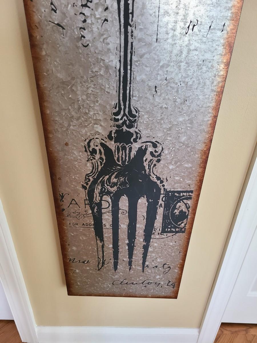 LOT 57: Large Metal Fork w/French Script Wall Sign Art