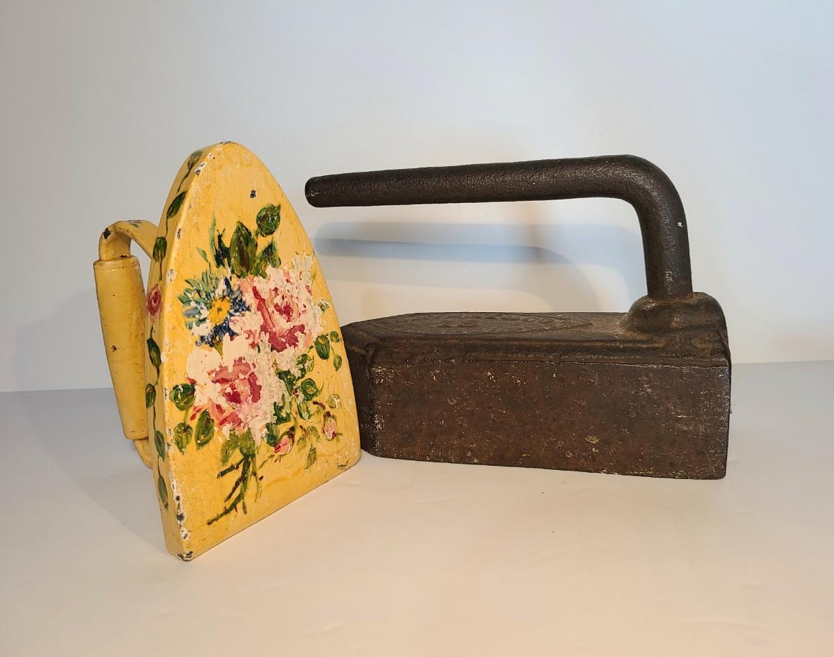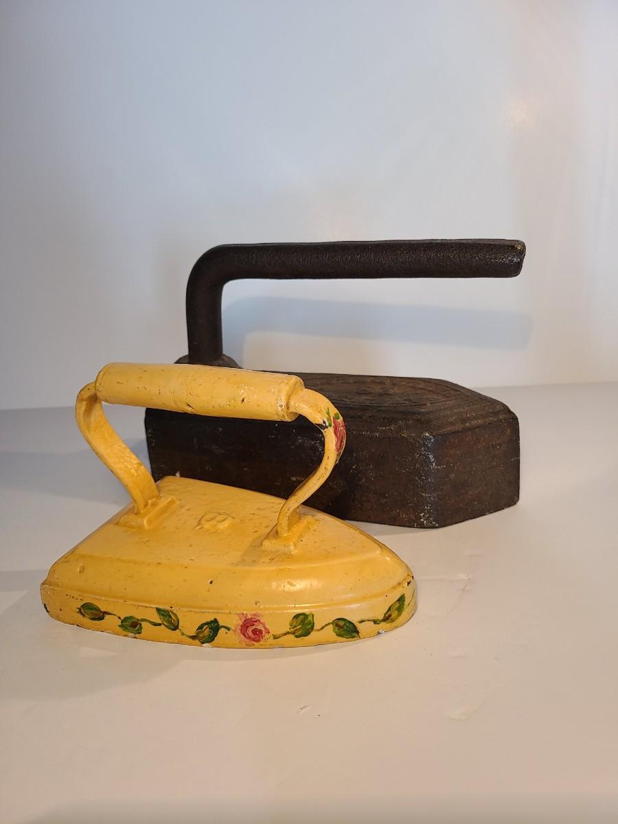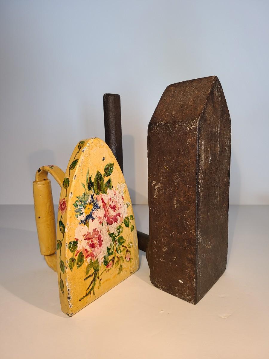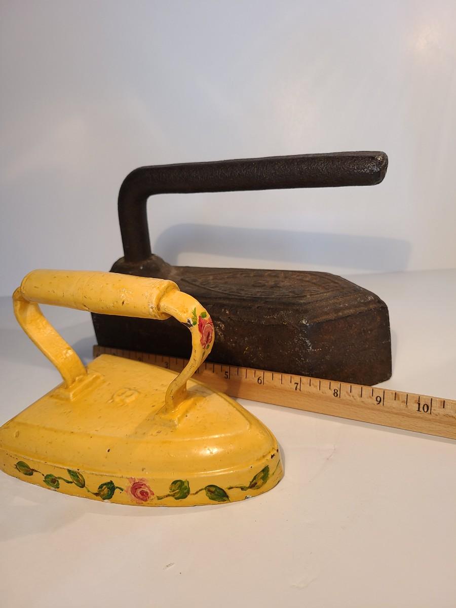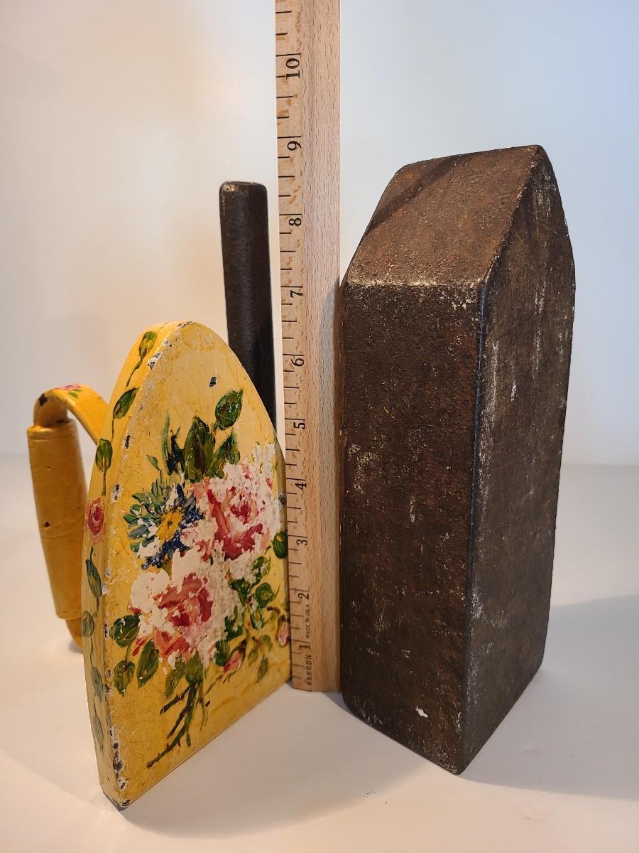 Two vintage/Antique Sad Irons. One was used as bookend, the other a doorstop. Functional even today! The large one is very heavy!! Please see all pictures as they are the best representation of the items. The pictures show condition, measurements if taken, and what is included in the lot. Due to the large amount that we photograph and the time frame, we are not always able to take measurements. All items unless noted, are pre-owned and have been used. If you purchased furniture, you must bring help. We do not allow one person to carry large furniture out on their own. Bring help, tools and a truck for the safety of our client’s homes, and your personal safety. Any damages that result to the property including walls, and floors due to moving of the furniture will be charged to the buyer. Company policy. Thank you.