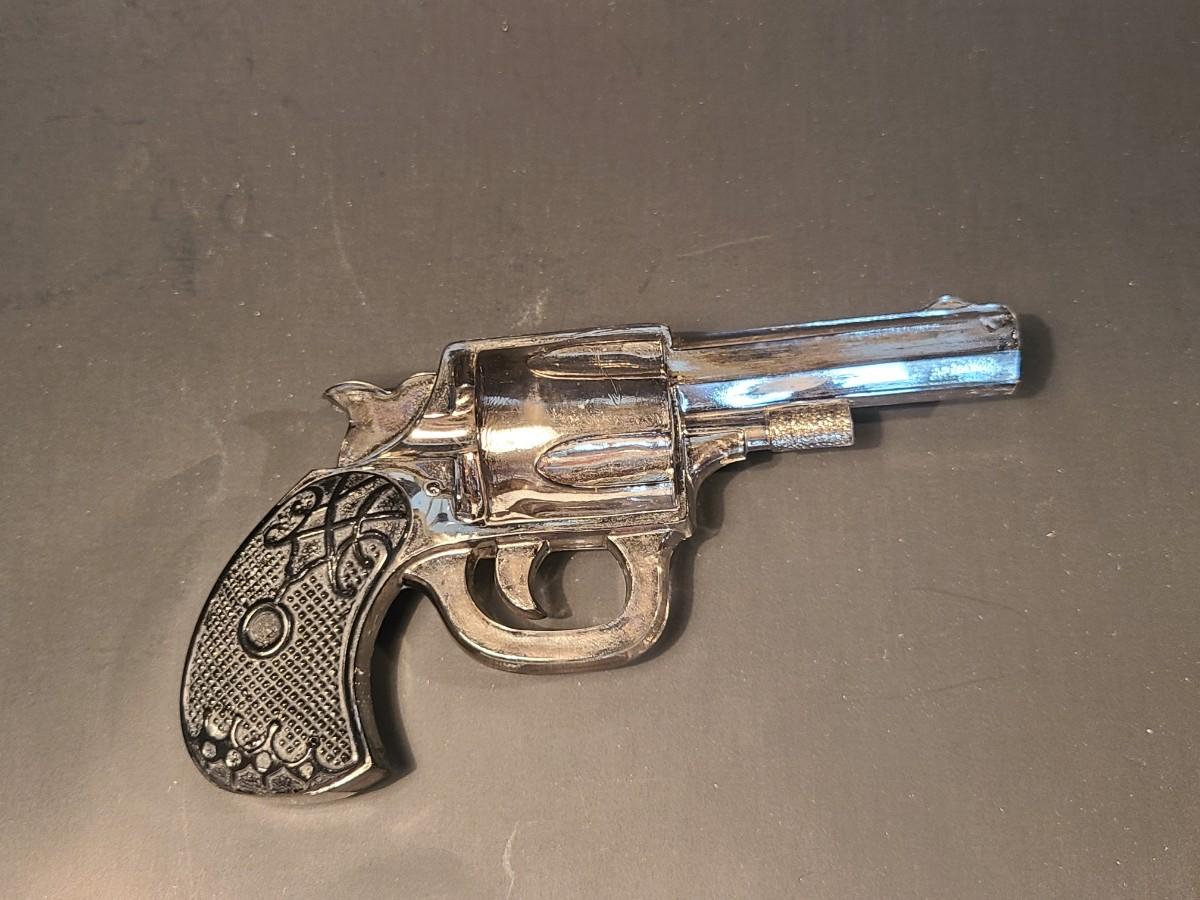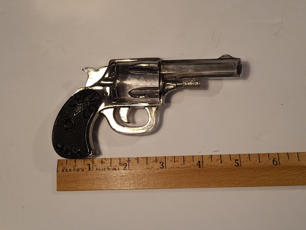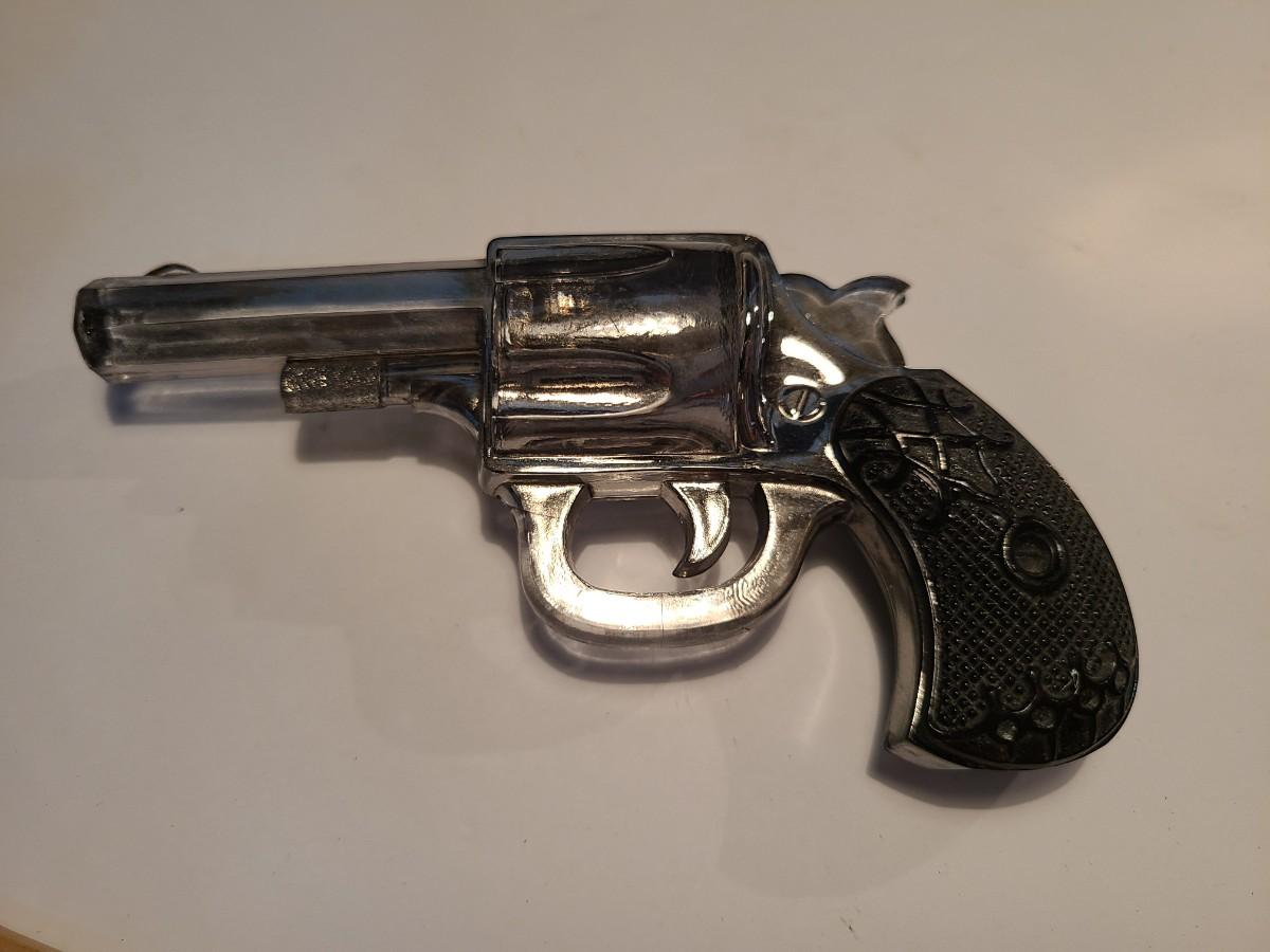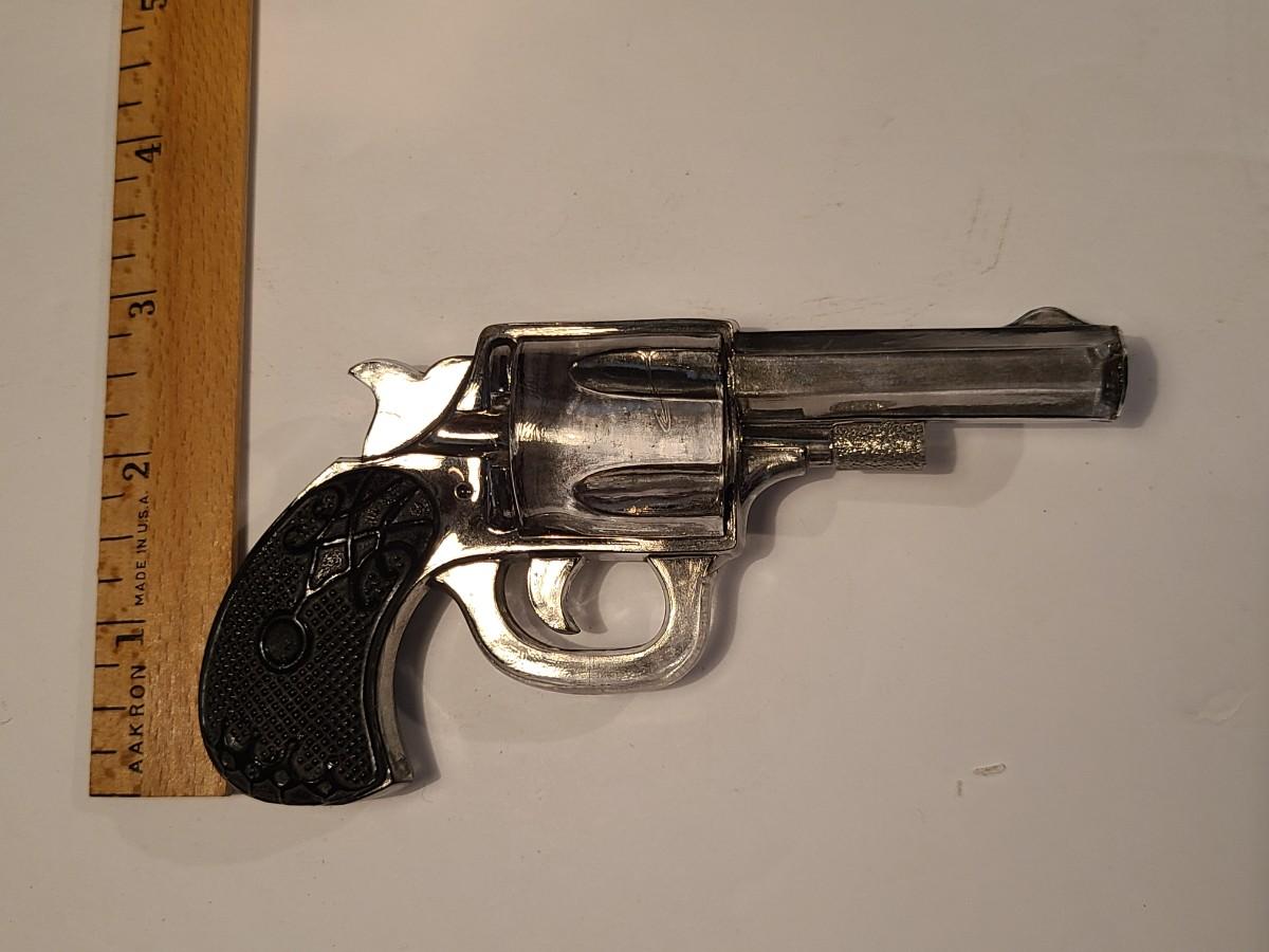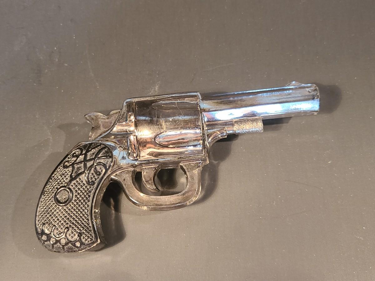 These unique vintage piece is made of glass. It does show minor wear due to age. Under inspection, there is a small chip in underside of back top handle part, and tip of gun. Solid piece. Great gift even as found! See measurements for size! Please see all pictures as they are the best representation of the items. The pictures show condition, measurements if taken, and what is included in the lot. Due to the large amount that we photograph and the time frame, we are not always able to take measurements. All items unless noted, are pre-owned and have been used. If you purchased furniture, you must bring help. We do not allow one person to carry large furniture out on their own. Bring help, tools and a truck for the safety of our client’s homes, and your personal safety. Any damages that result to the property including walls, and floors due to moving of the furniture will be charged to the buyer. Company policy. Thank you.