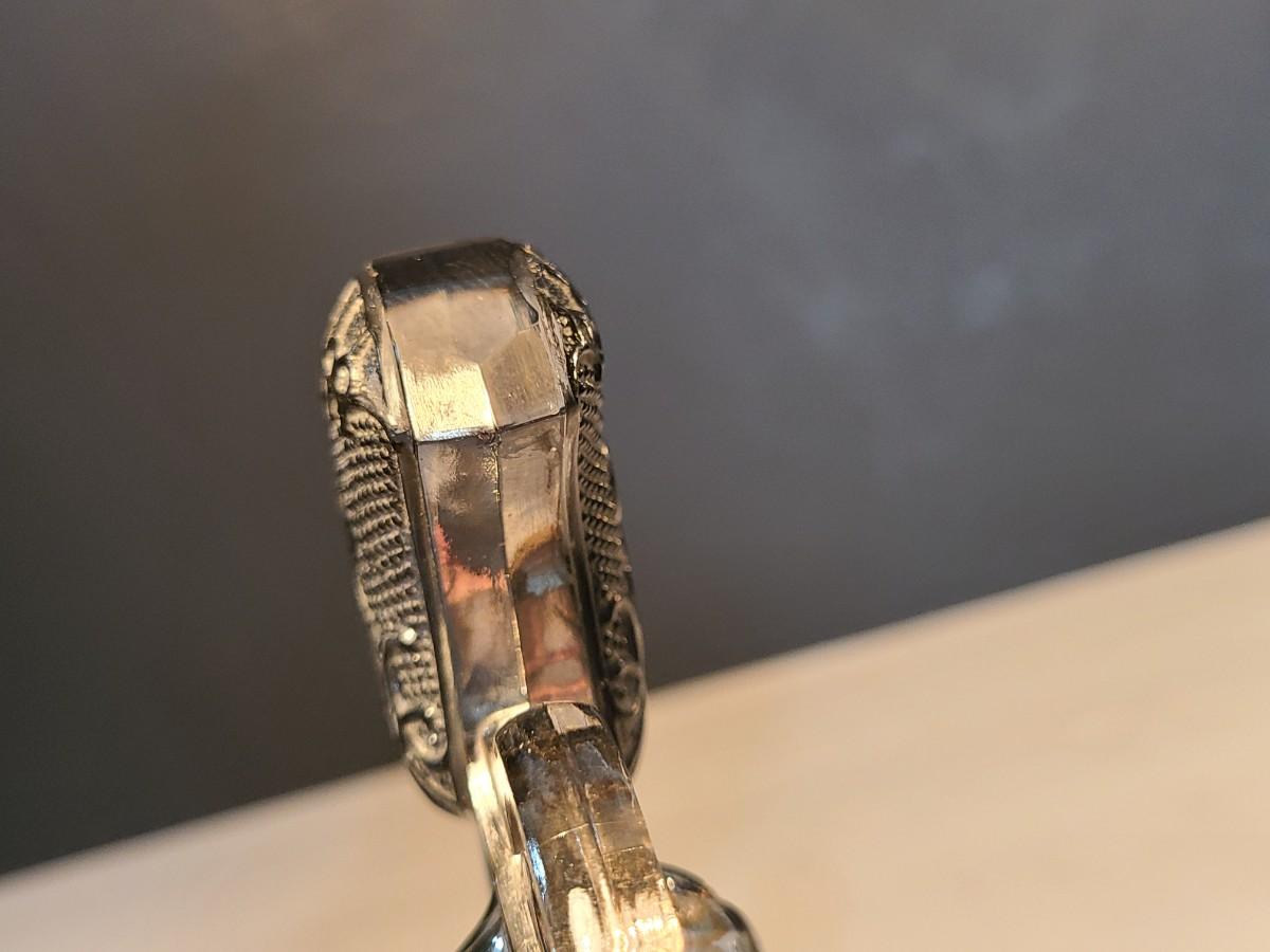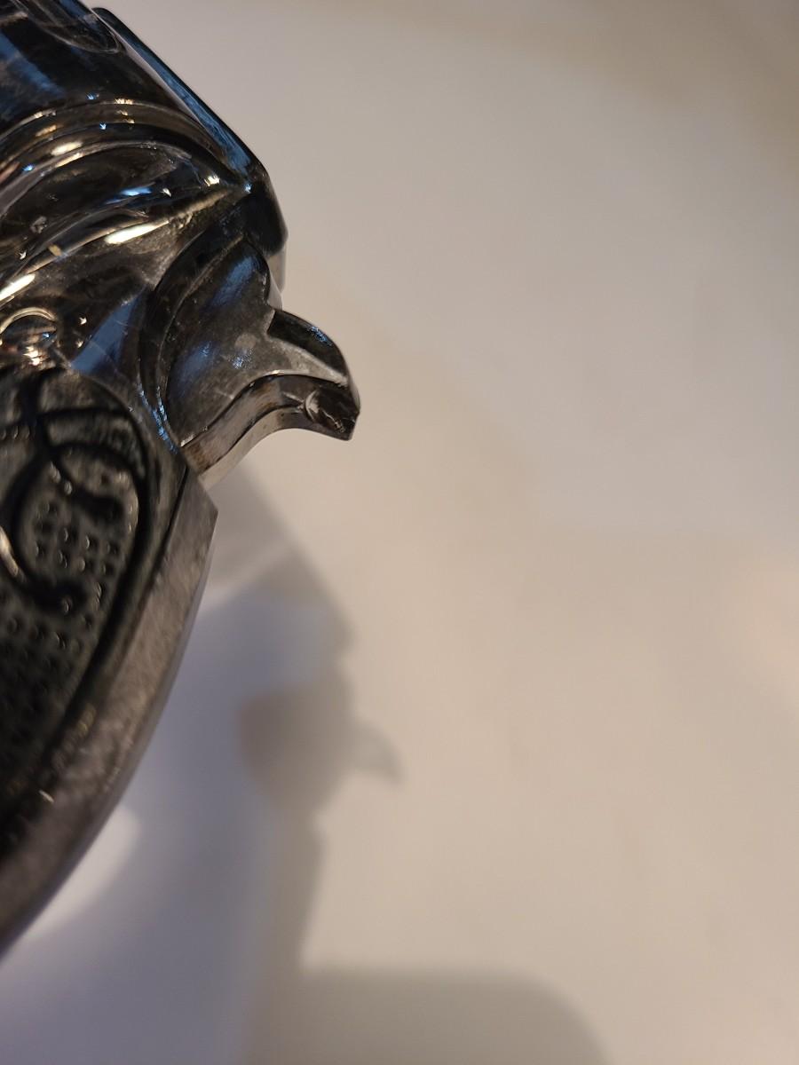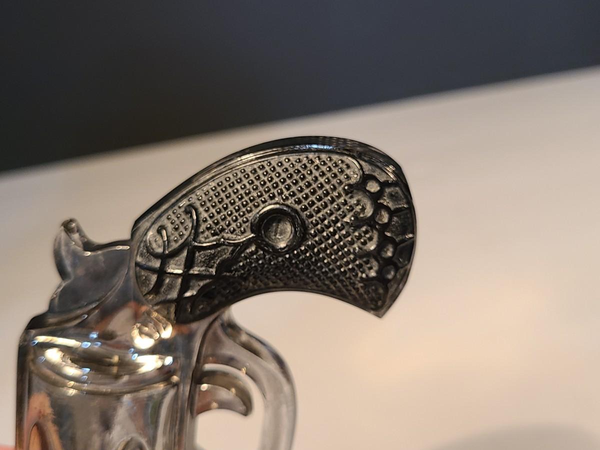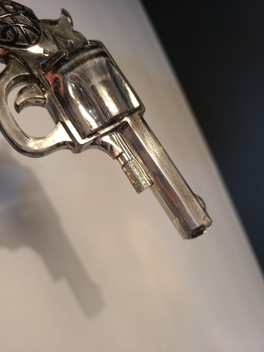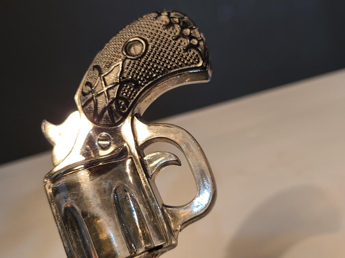 These unique vintage piece is made of glass. It does show minor wear due to age. Under inspection, there is a small chip in underside of back top handle part, and tip of gun. Solid piece. Great gift even as found! See measurements for size! Please see all pictures as they are the best representation of the items. The pictures show condition, measurements if taken, and what is included in the lot. Due to the large amount that we photograph and the time frame, we are not always able to take measurements. All items unless noted, are pre-owned and have been used. If you purchased furniture, you must bring help. We do not allow one person to carry large furniture out on their own. Bring help, tools and a truck for the safety of our client’s homes, and your personal safety. Any damages that result to the property including walls, and floors due to moving of the furniture will be charged to the buyer. Company policy. Thank you.