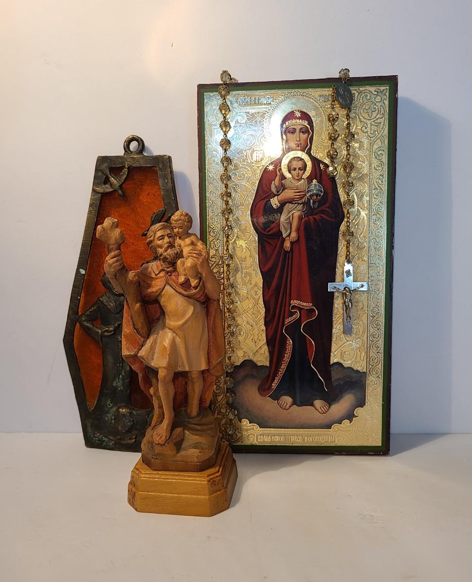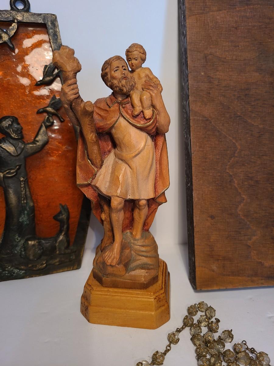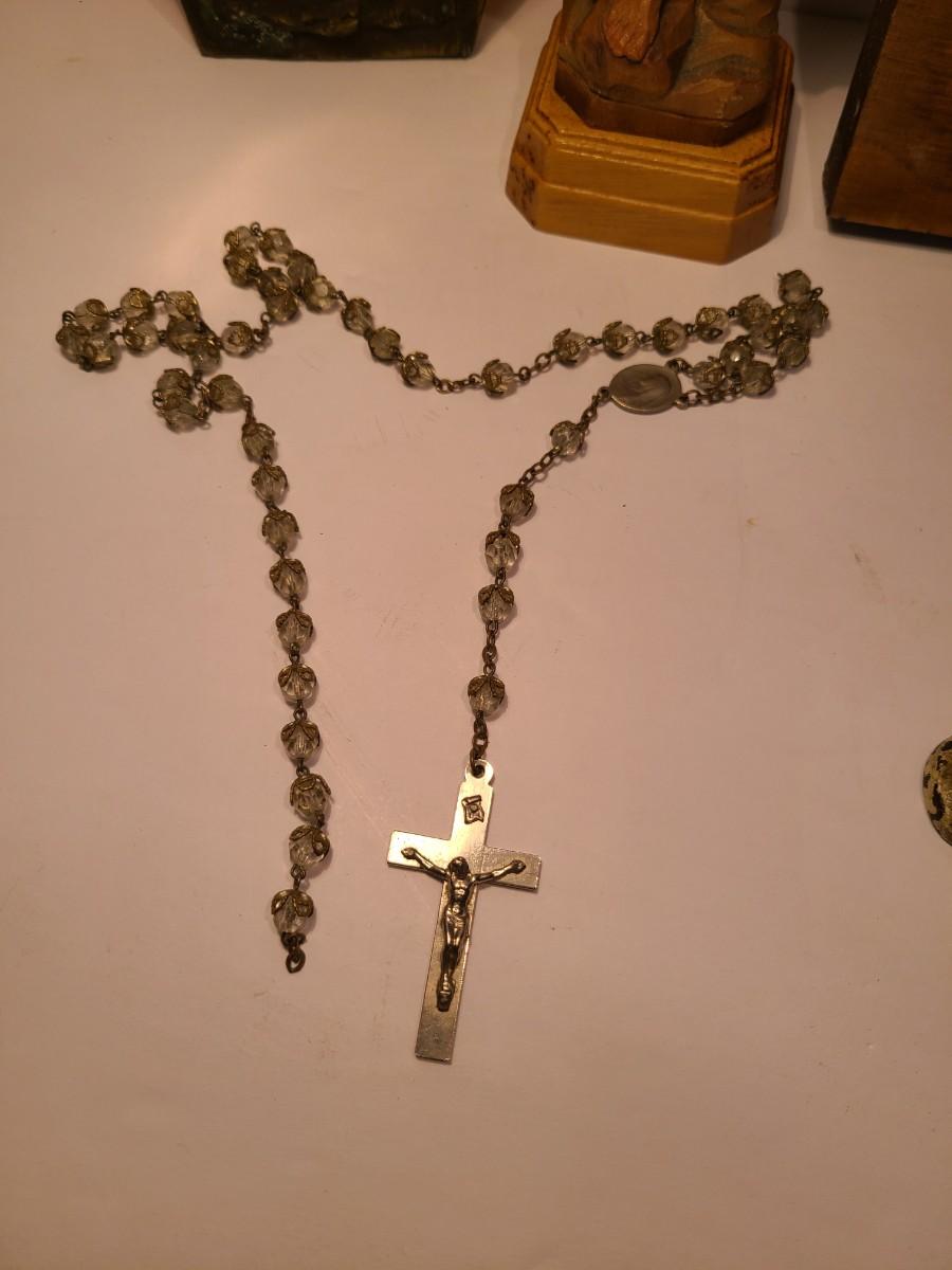 LOT 64: Wood Carved Anri Statue, Vintage Glass Rosary Beads and More