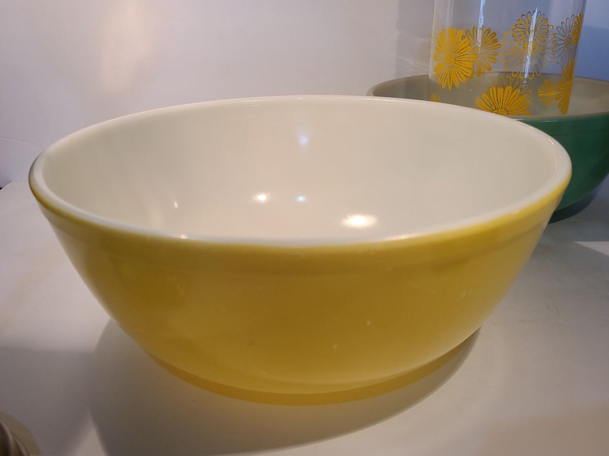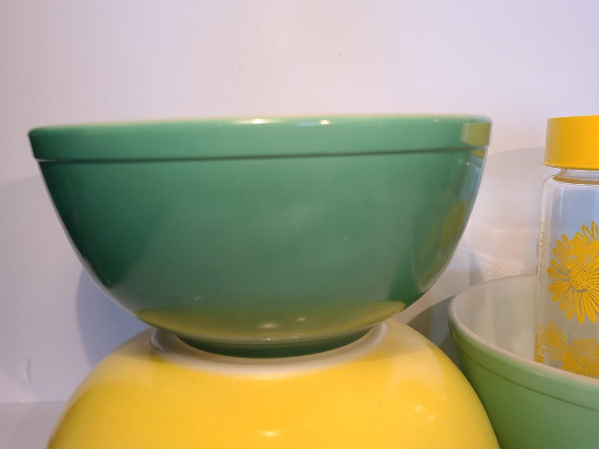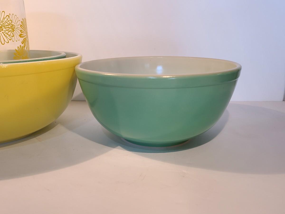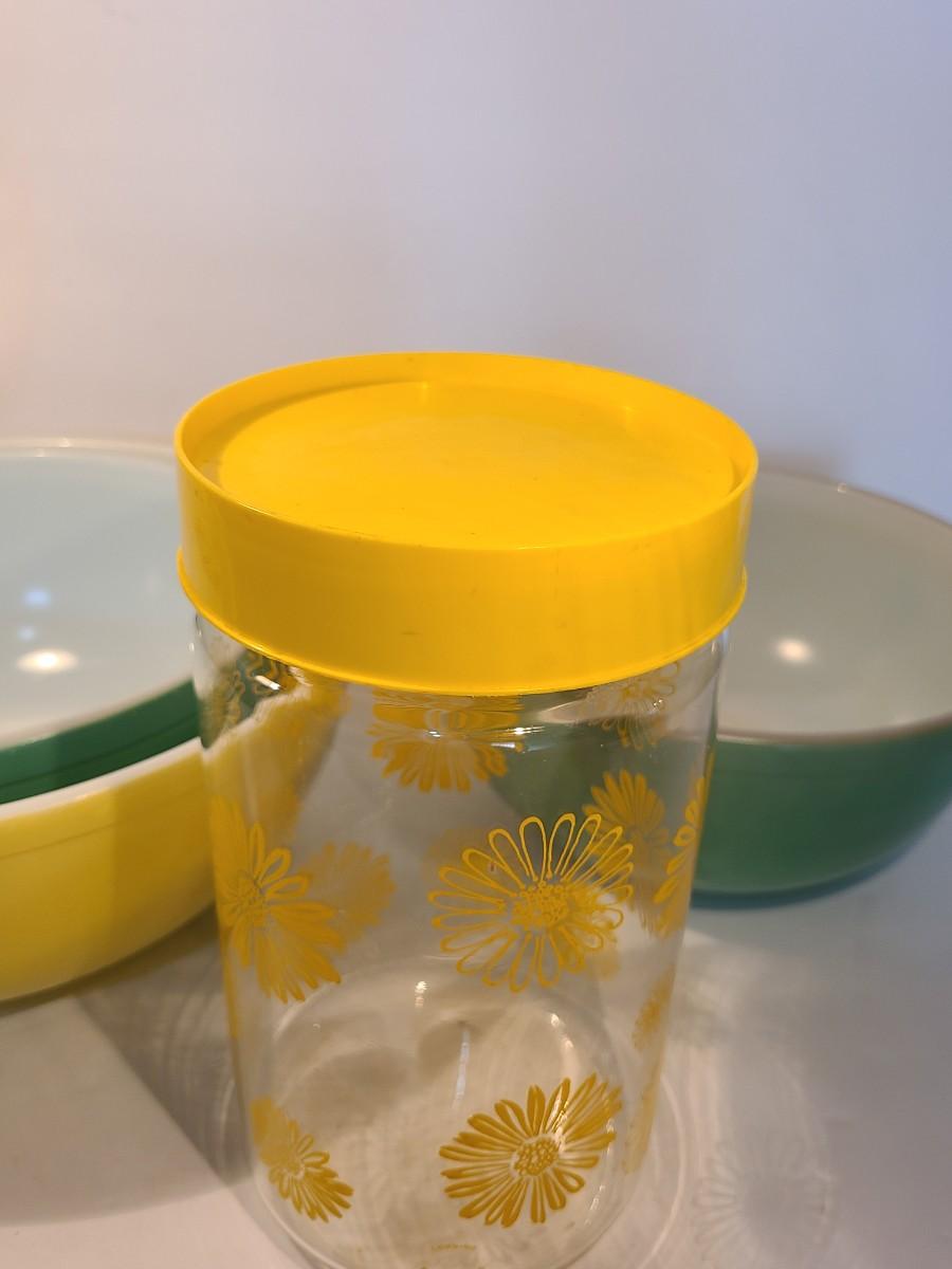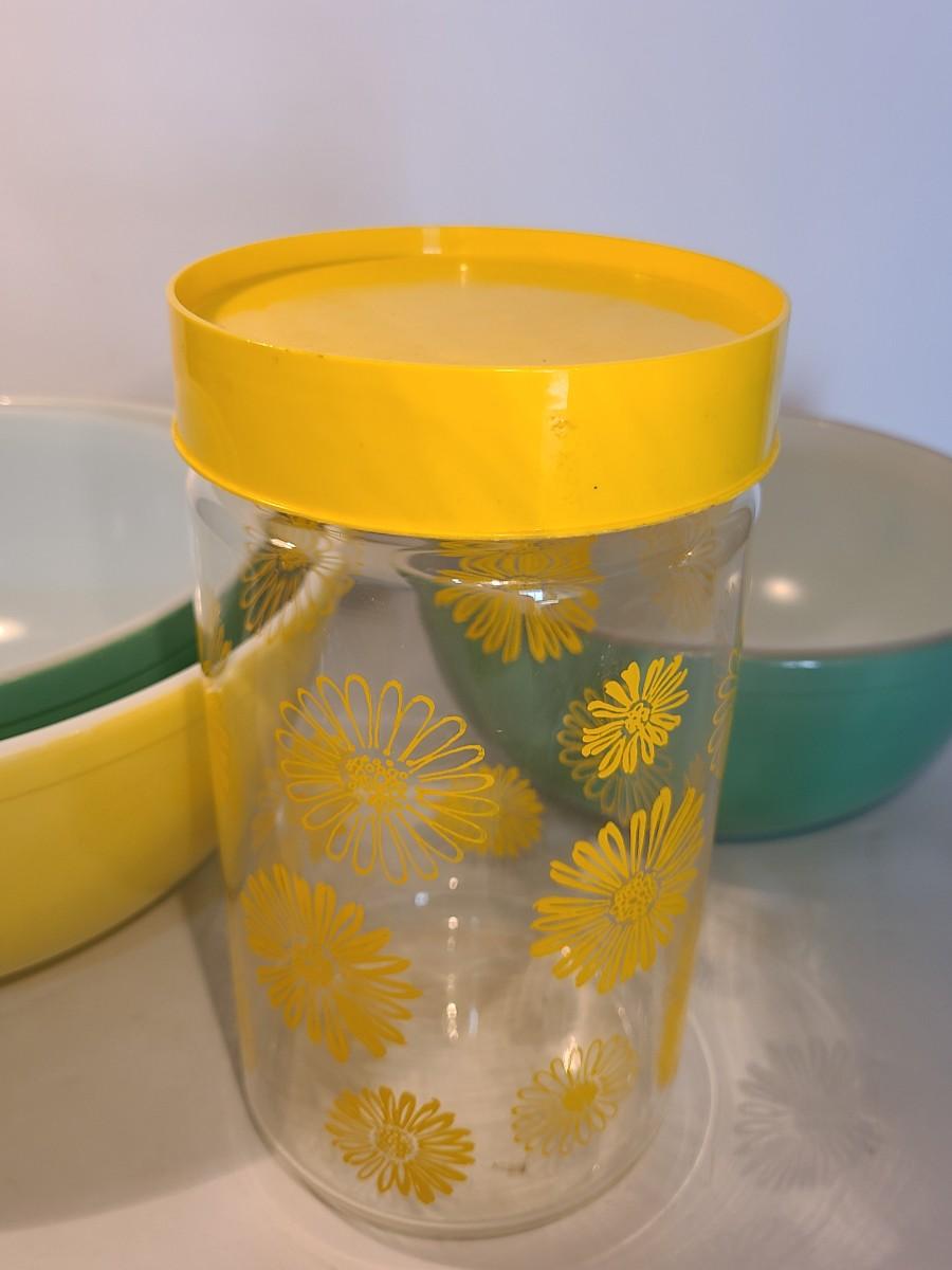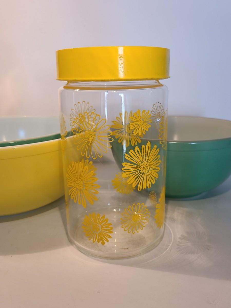 LOT 65:: Pyrex Mixing Bowls & Corning Daisy Canister