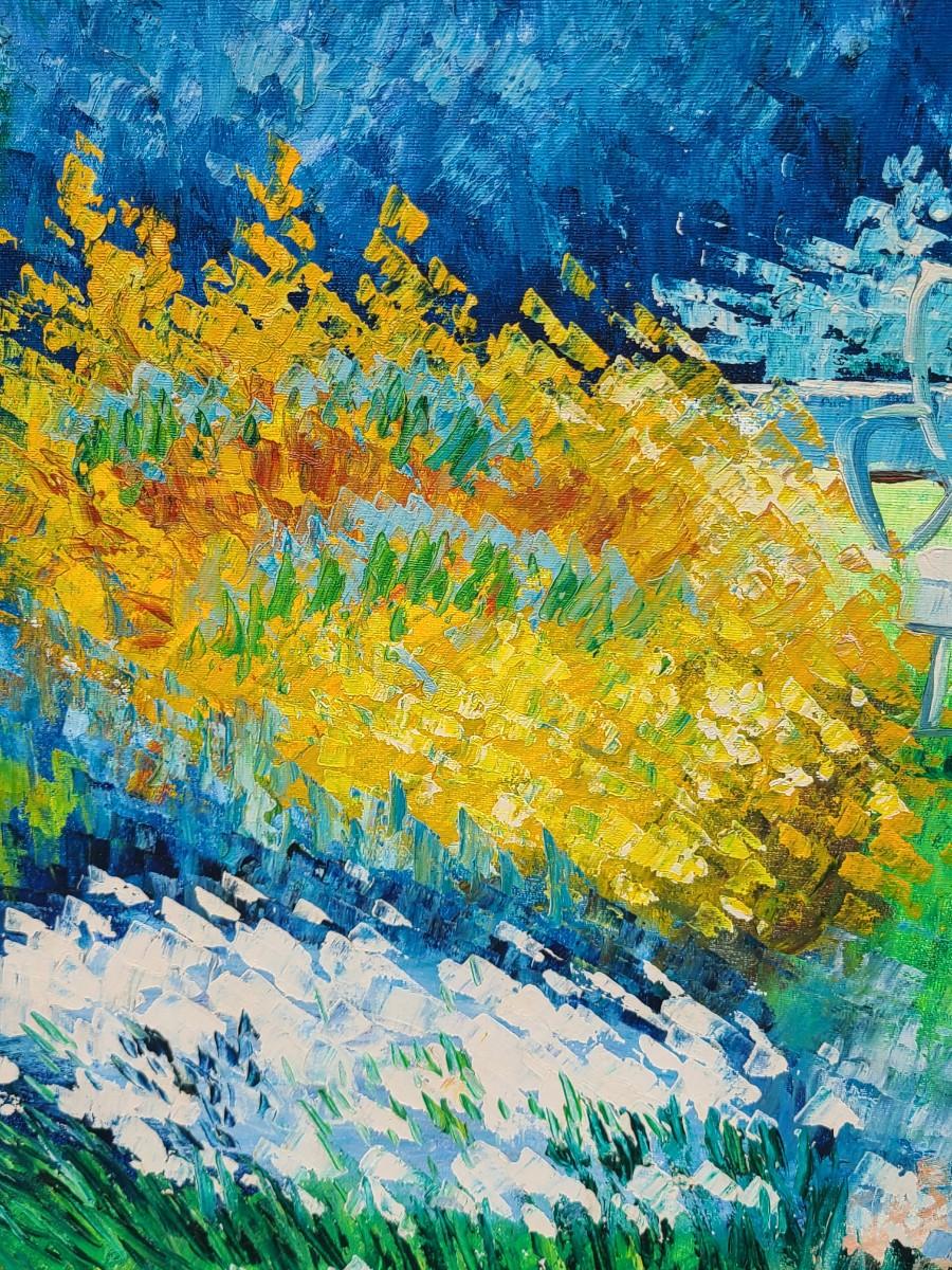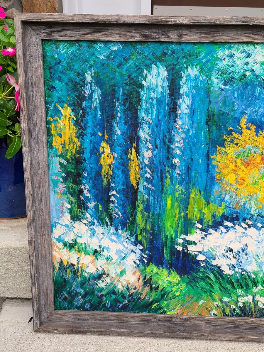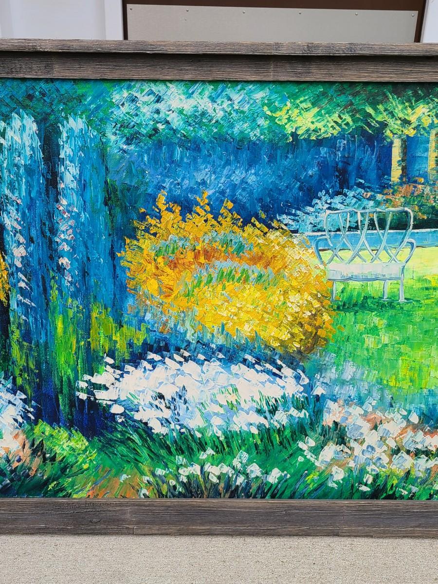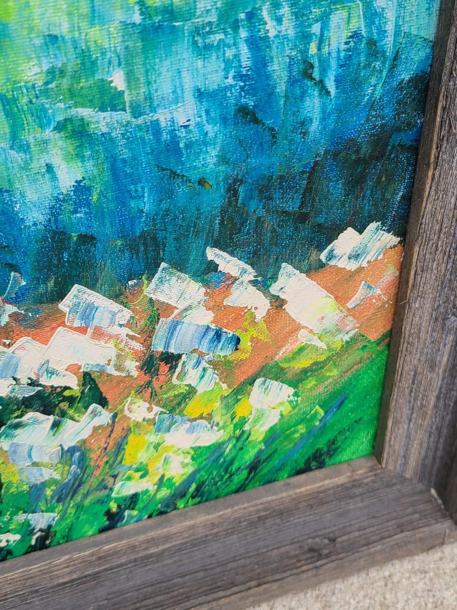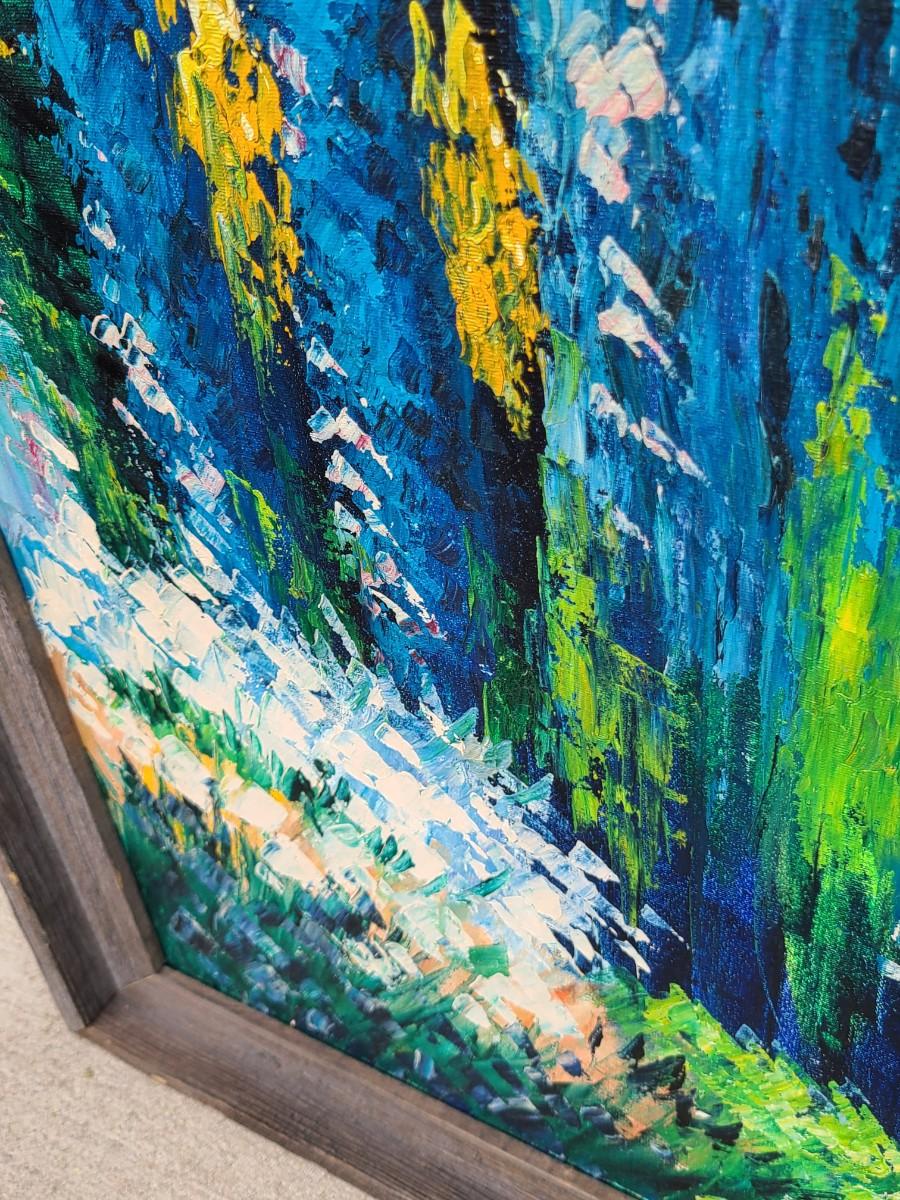 Not sure if oil or acrylics. Absolutely gorgeous. On canvas. Please see all pictures as they are the best representation of the items. The pictures show condition, measurements if taken, and what is included in the lot. Due to the large amount that we photograph and the time frame, we are not always able to take measurements. All items unless noted, are pre-owned and have been used. If you purchased furniture, you must bring help. We do not allow one person to carry large furniture out on their own. Bring help, tools and a truck for the safety of our client’s homes, and your personal safety. Any damages that result to the property including walls, and floors due to moving of the furniture will be charged to the buyer. Company policy. Thank you.