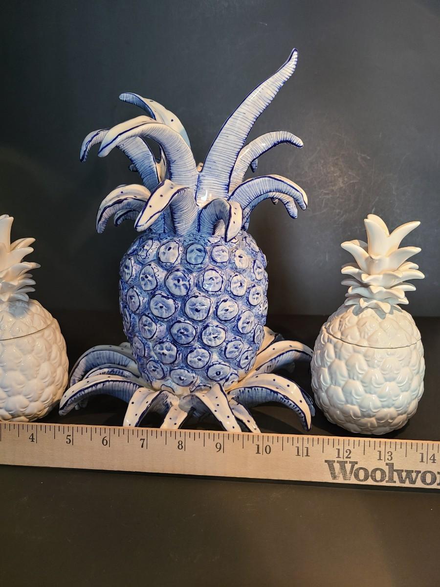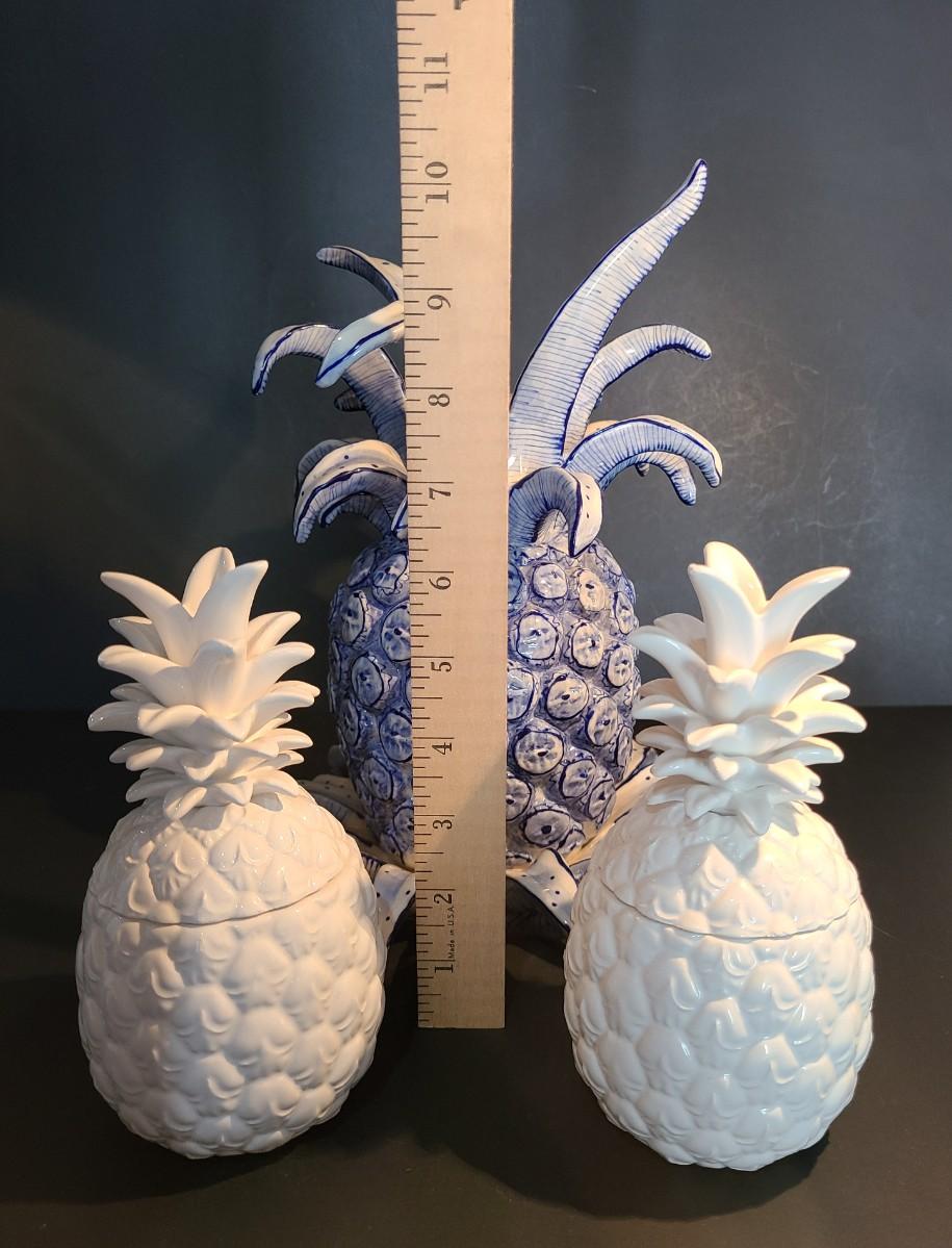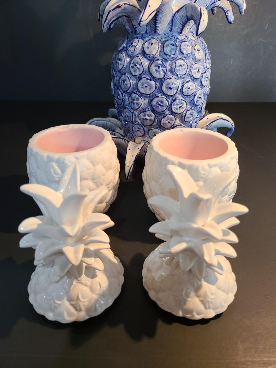 This is so fun! Comes with two small pineapples that can hold candles. They need to be cleaned out. Please see all pictures as they are the best representation of the items. The pictures show condition, measurements if taken, and what is included in the lot. Due to the large amount that we photograph and the time frame, we are not always able to take measurements. All items unless noted, are pre-owned and have been used. If you purchased furniture, you must bring help. We do not allow one person to carry large furniture out on their own. Bring help, tools and a truck for the safety of our client’s homes, and your personal safety. Any damages that result to the property including walls, and floors due to moving of the furniture will be charged to the buyer. Company policy. Thank you.