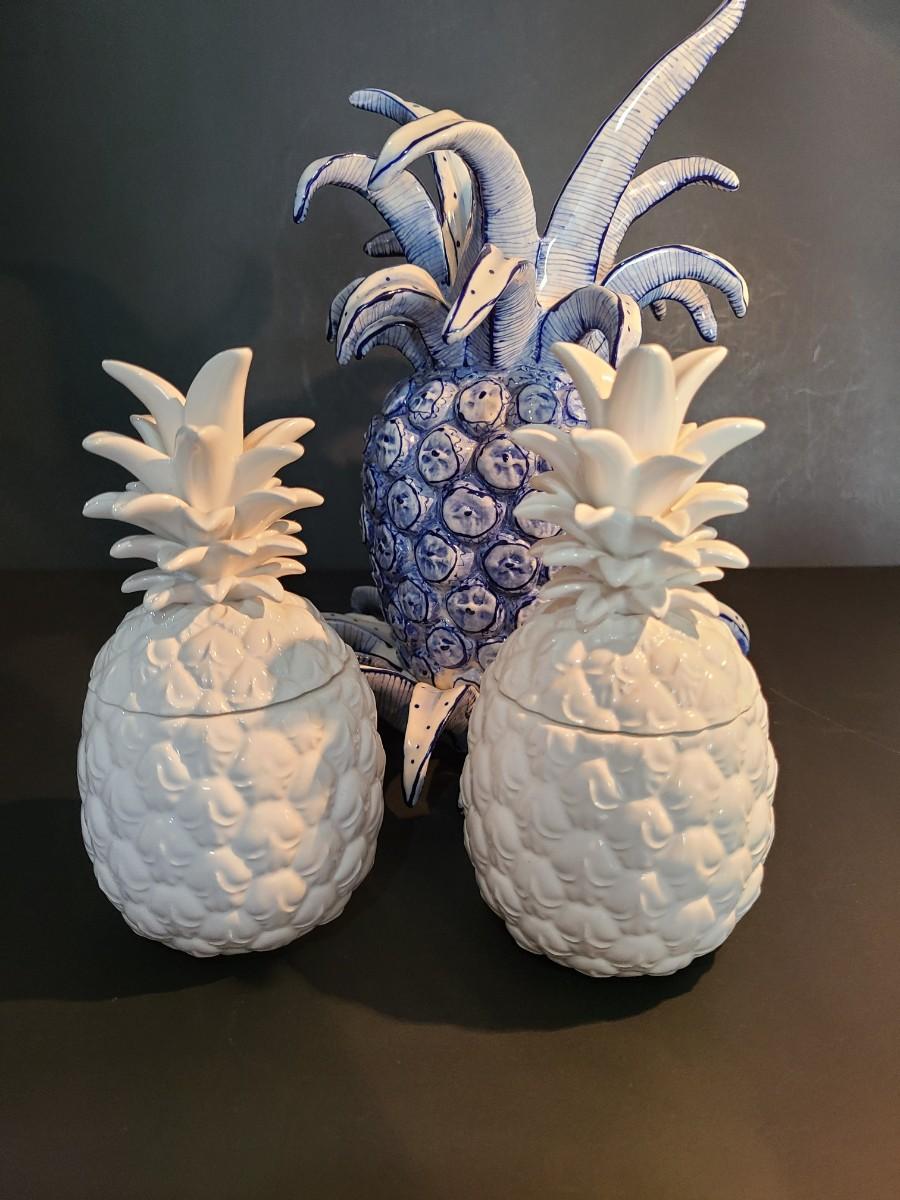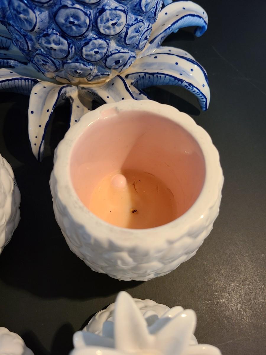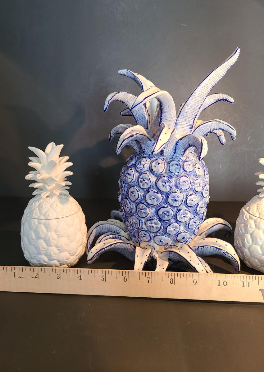 This is so fun! Comes with two small pineapples that can hold candles. They need to be cleaned out. Please see all pictures as they are the best representation of the items. The pictures show condition, measurements if taken, and what is included in the lot. Due to the large amount that we photograph and the time frame, we are not always able to take measurements. All items unless noted, are pre-owned and have been used. If you purchased furniture, you must bring help. We do not allow one person to carry large furniture out on their own. Bring help, tools and a truck for the safety of our client’s homes, and your personal safety. Any damages that result to the property including walls, and floors due to moving of the furniture will be charged to the buyer. Company policy. Thank you.