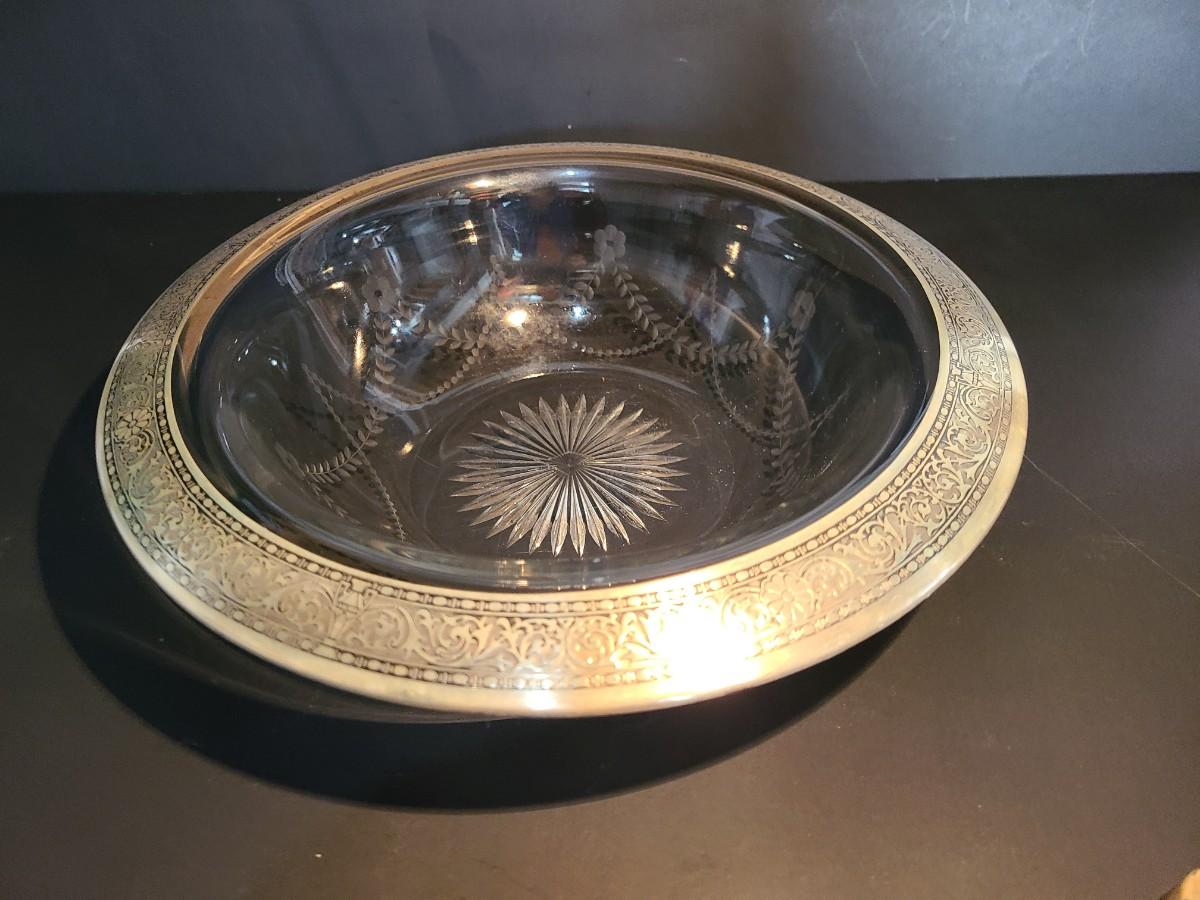 LOT 80: Antique Heisey Glass Sterling Rimmed Art Deco Bowl