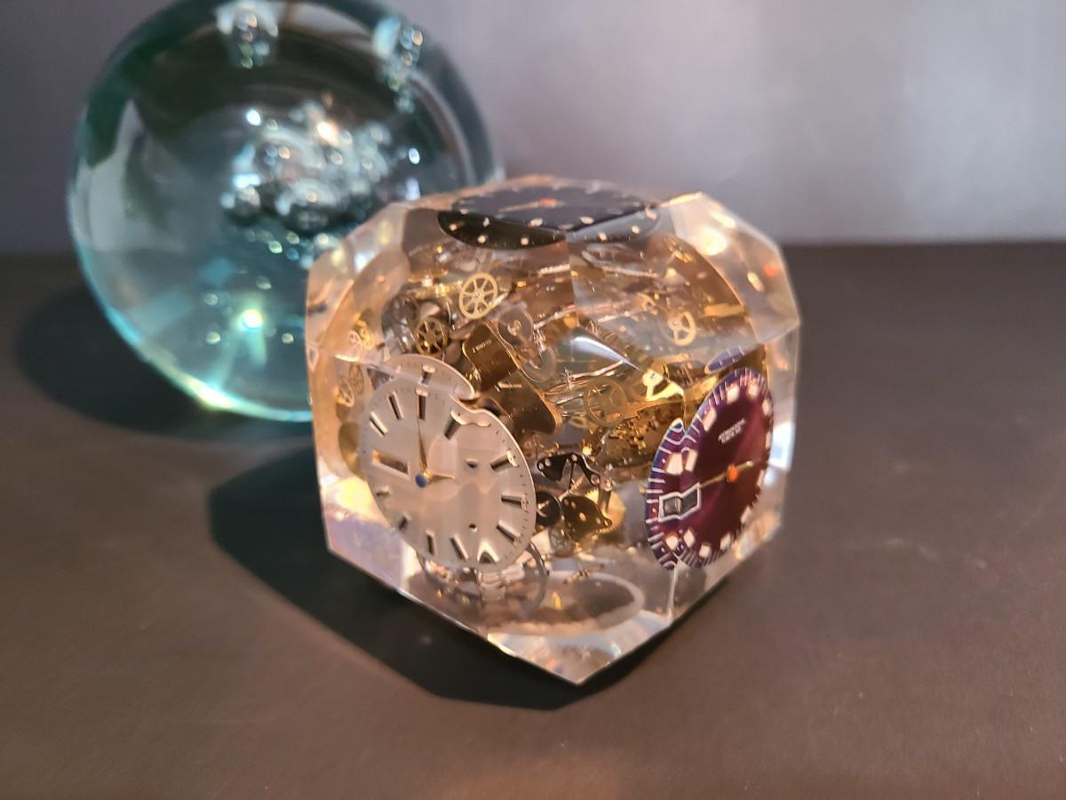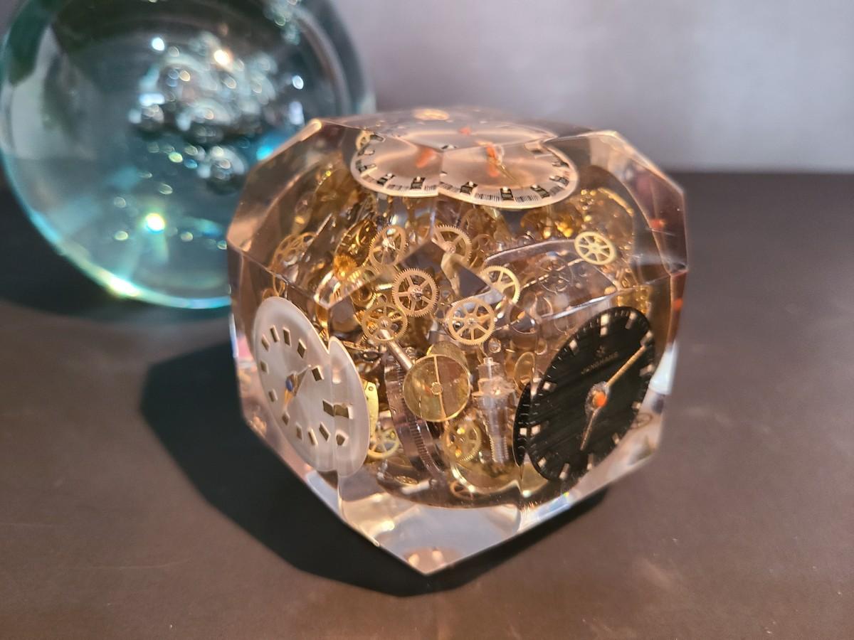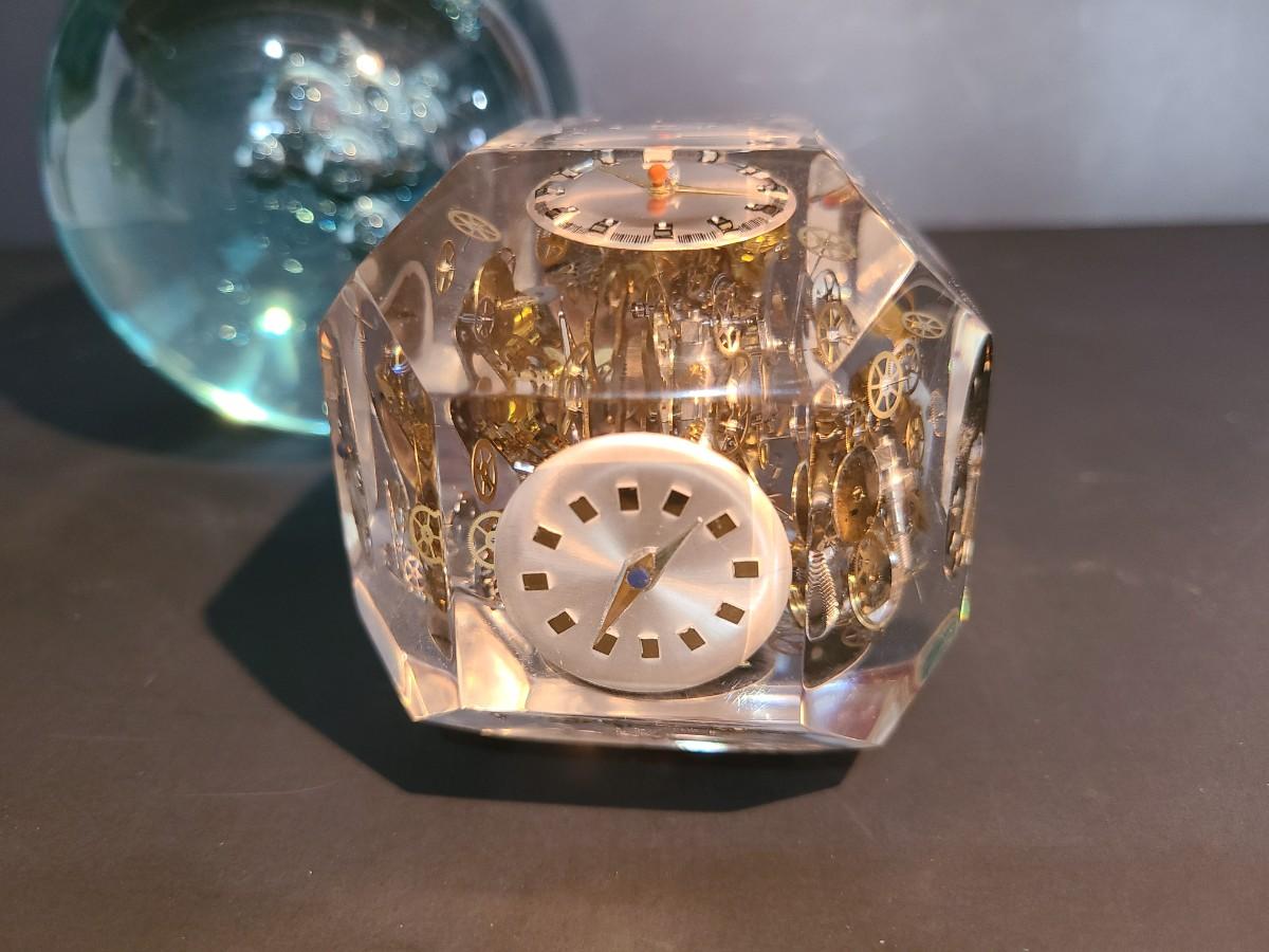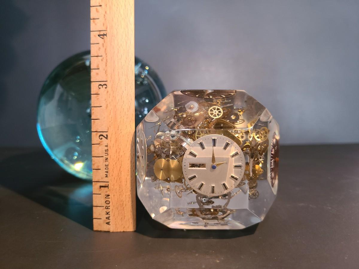 LOT 81: MCM Vintage Paperweights: Acrylic Exploding Watches & Blue Bubble