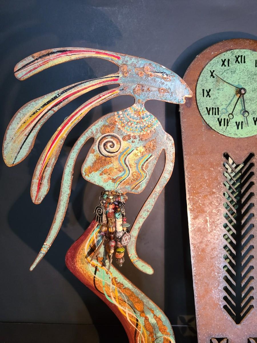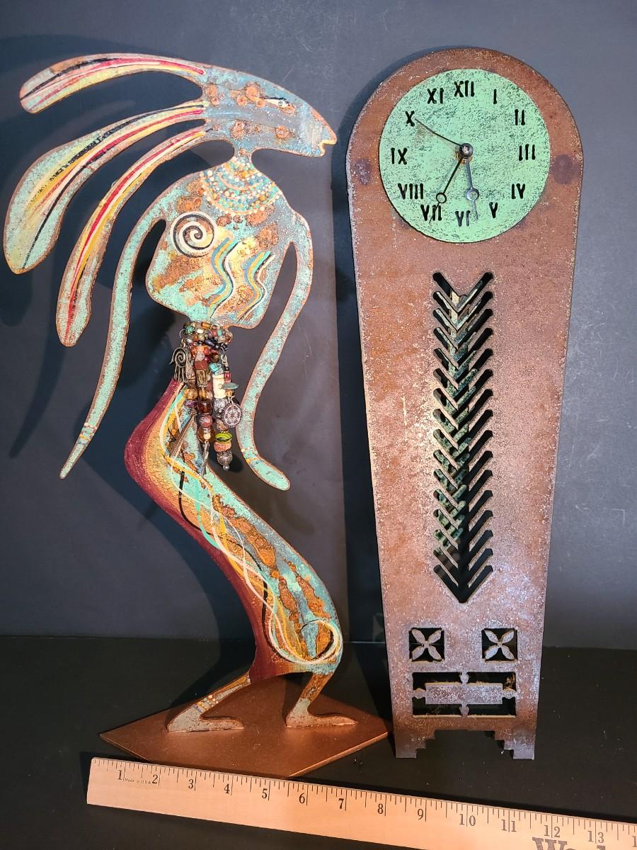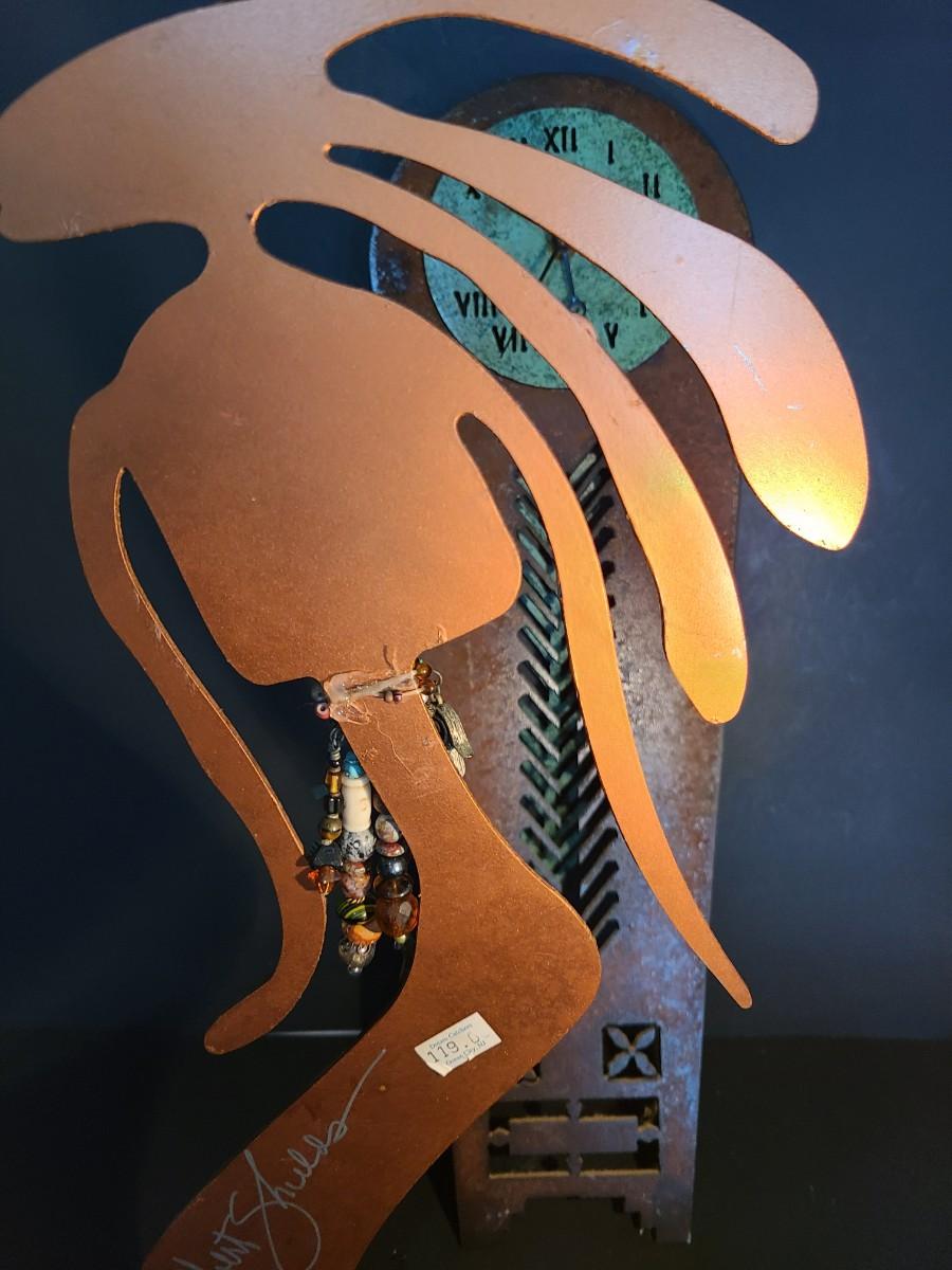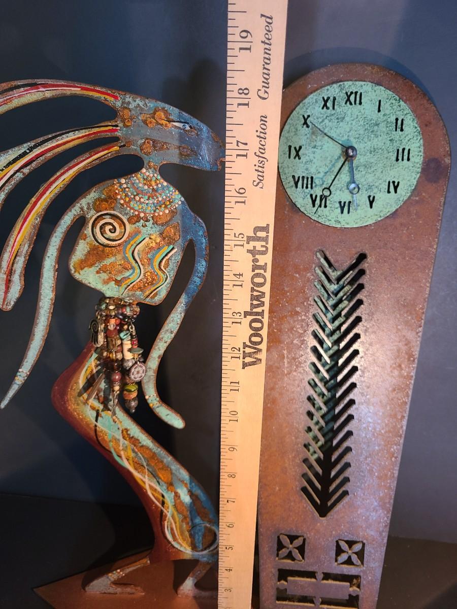 LOT 100: Vintage Artist Signed, Robert Shields Metal Art Southwest Sculpture & Clock