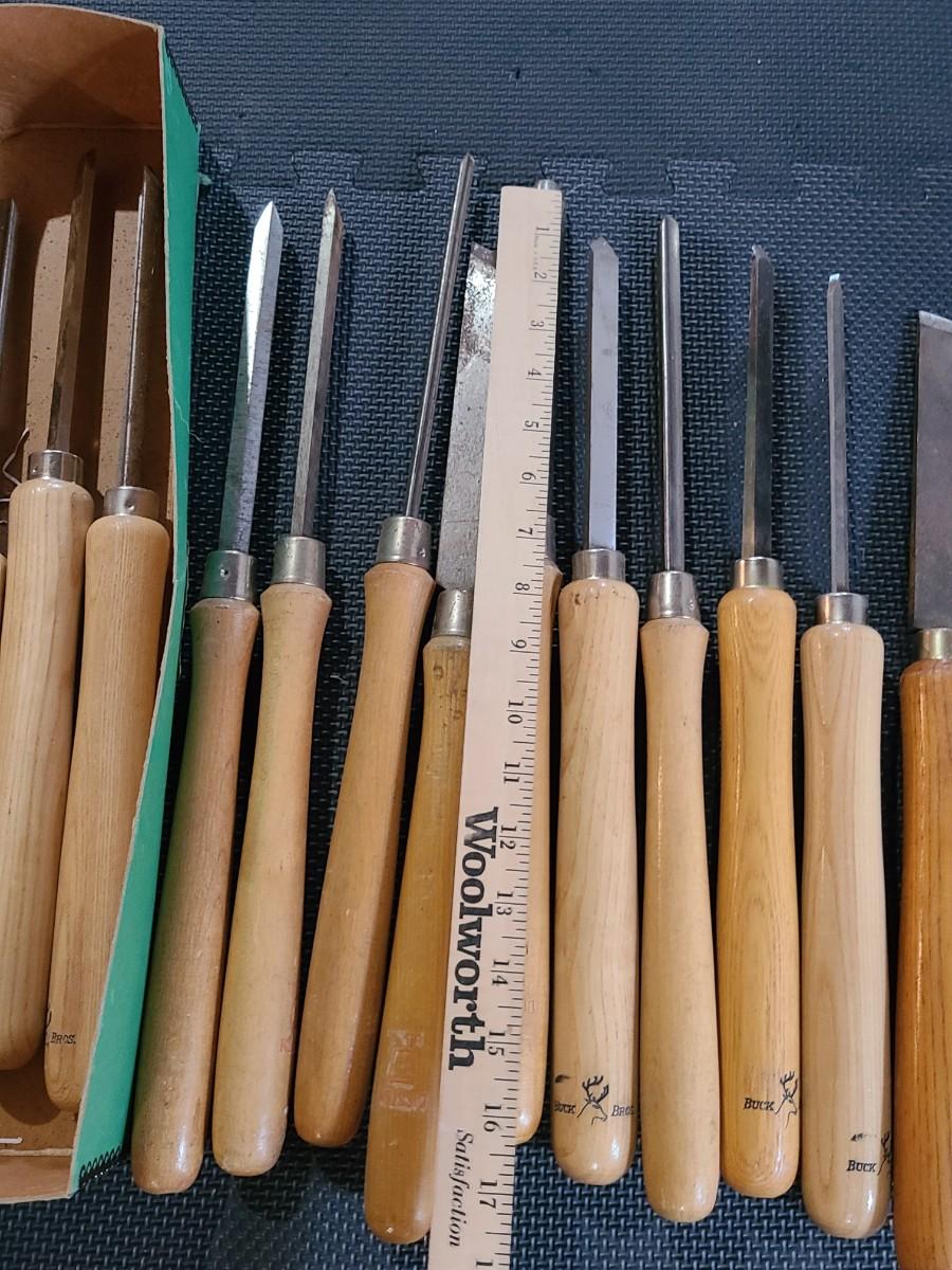 LOT 102: Large lot of Buck & Disston Wood Working Lathe Chisels