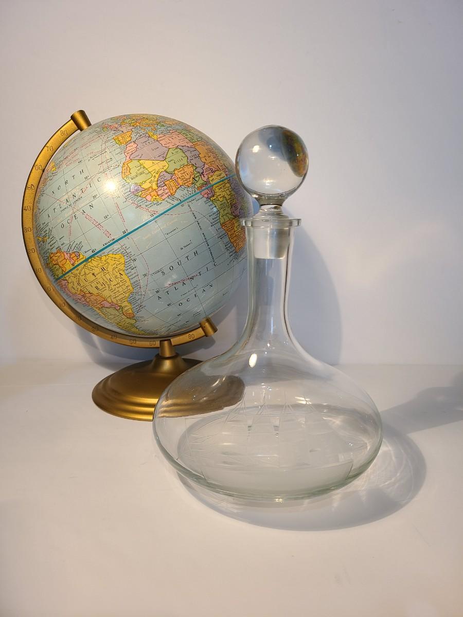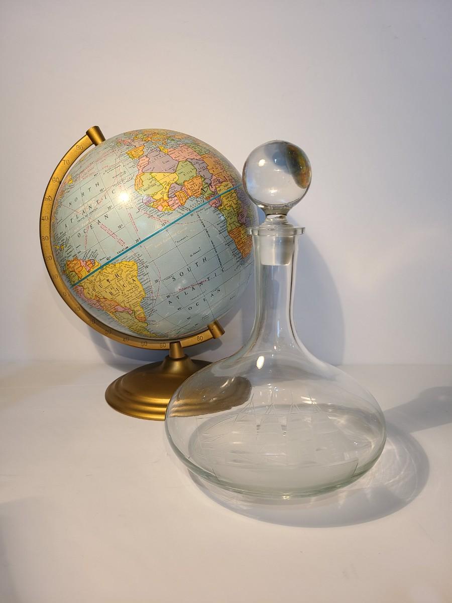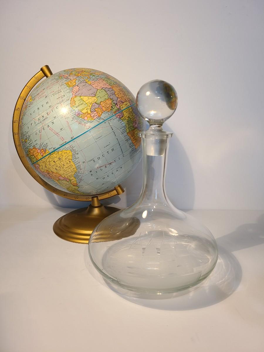 LOT 113: MCM Vintage 9 inch Globe & Tallships Decanter