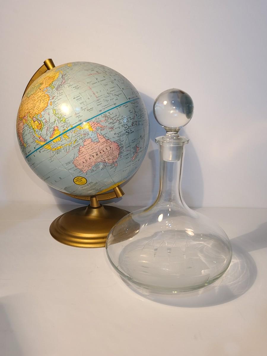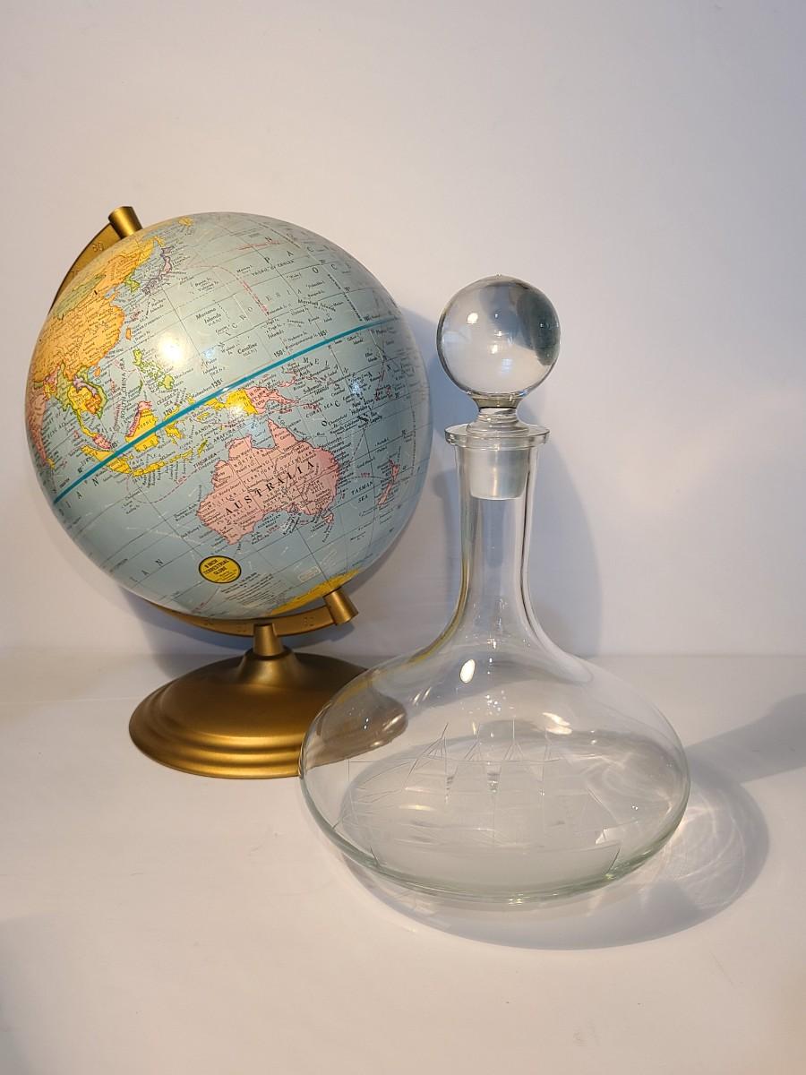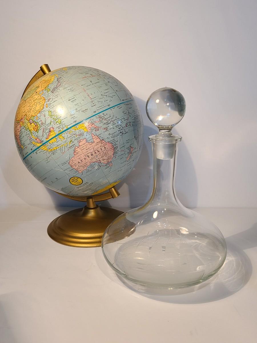LOT 113: MCM Vintage 9 inch Globe & Tallships Decanter