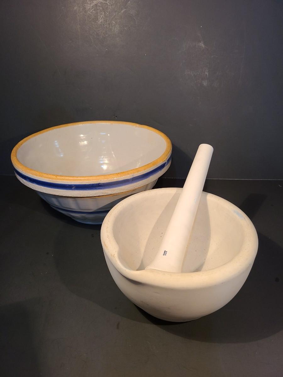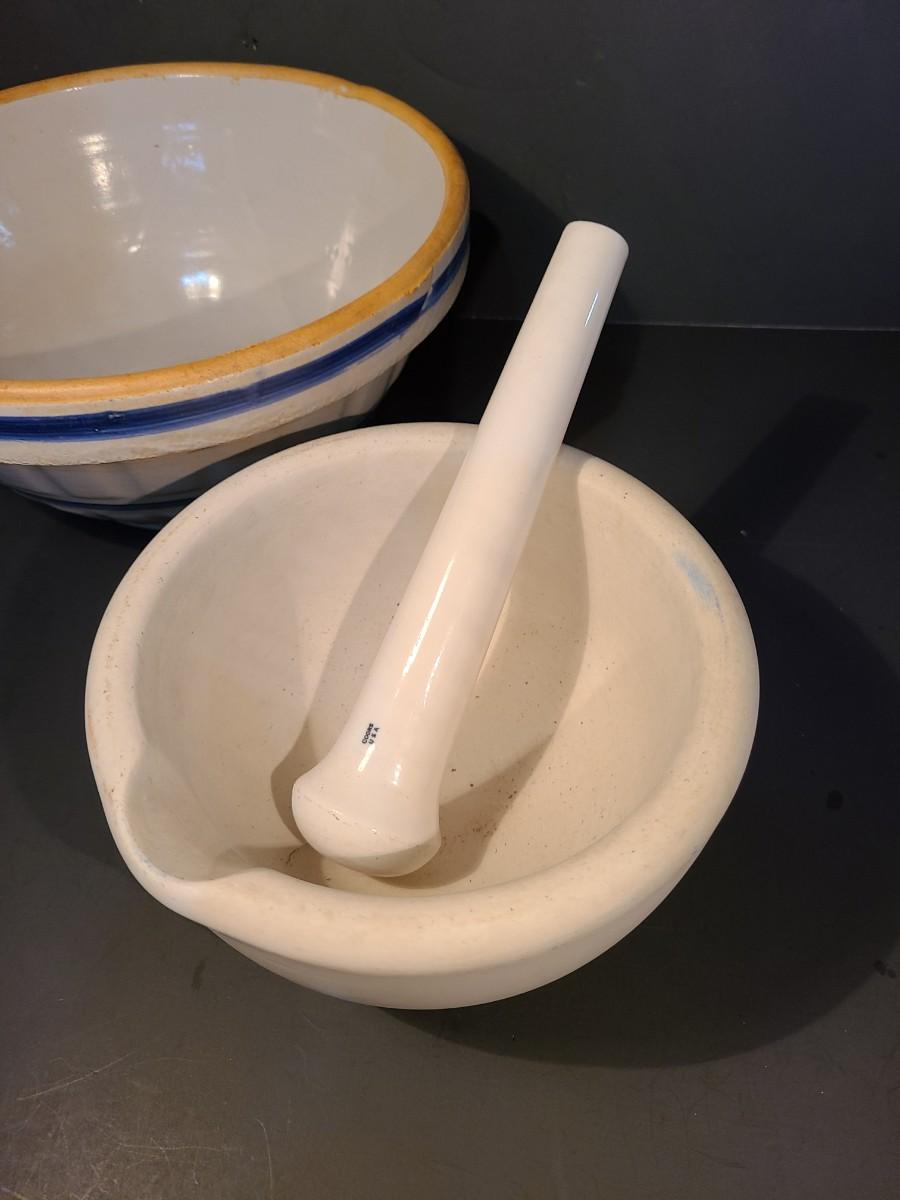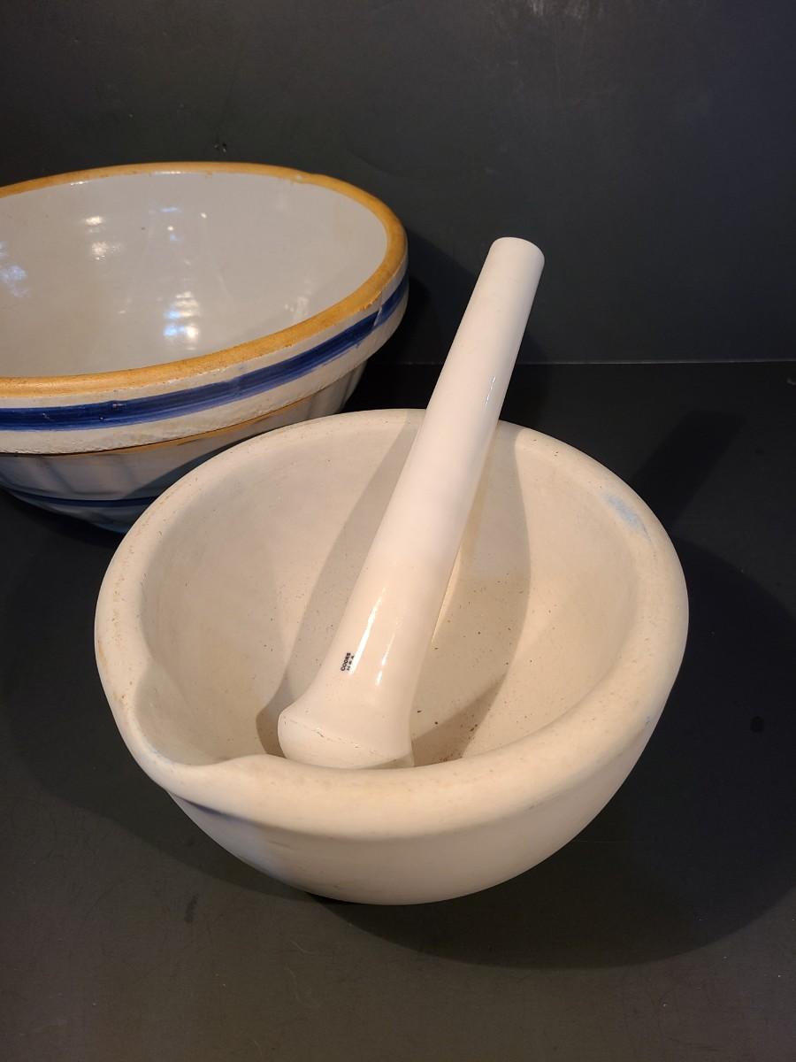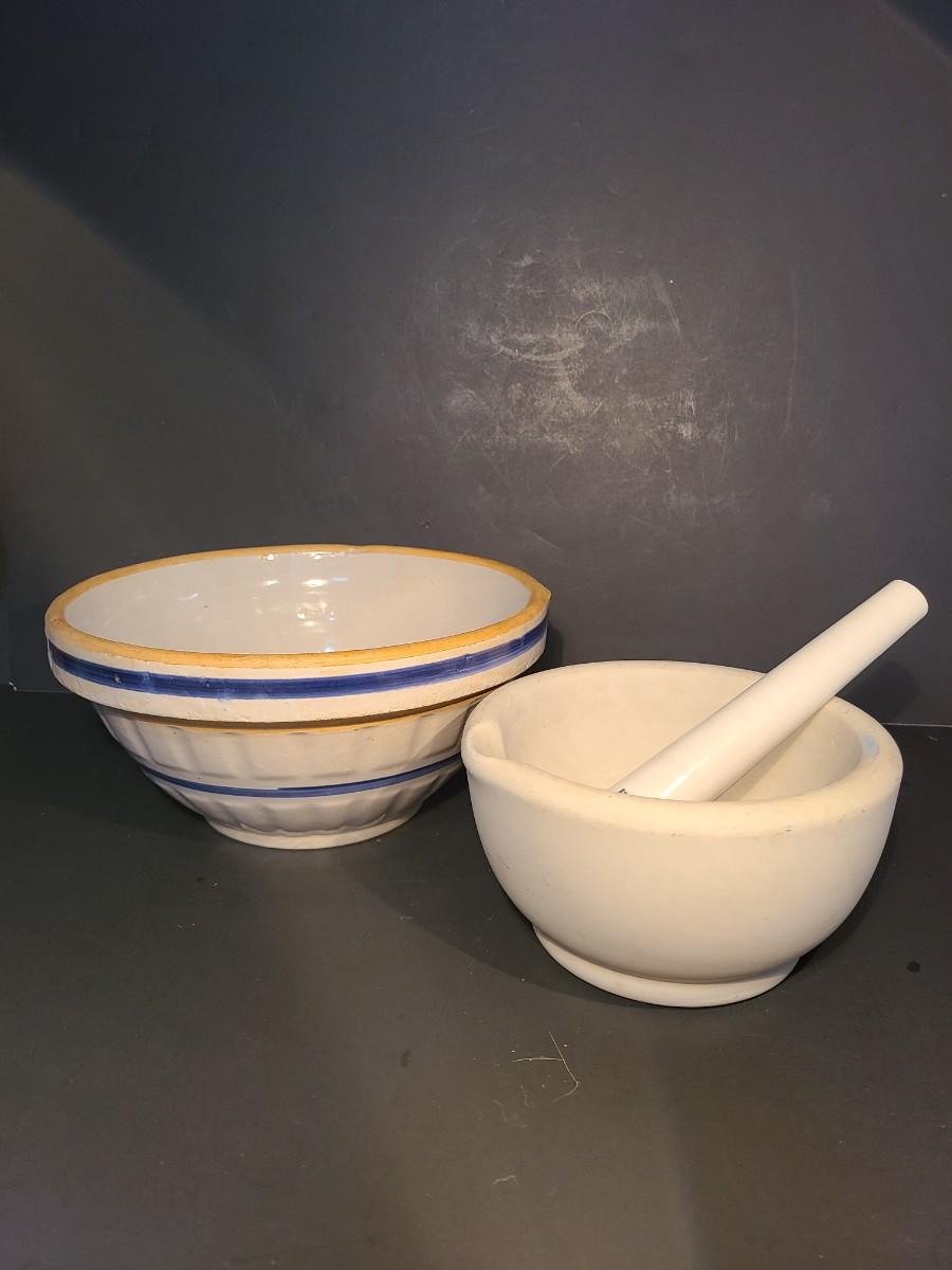 LOT 117: Vintage 10 inch Mixing Bowl & Mortar/Pestle