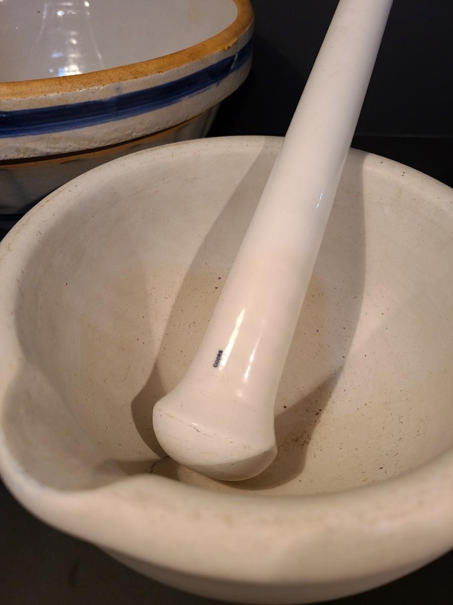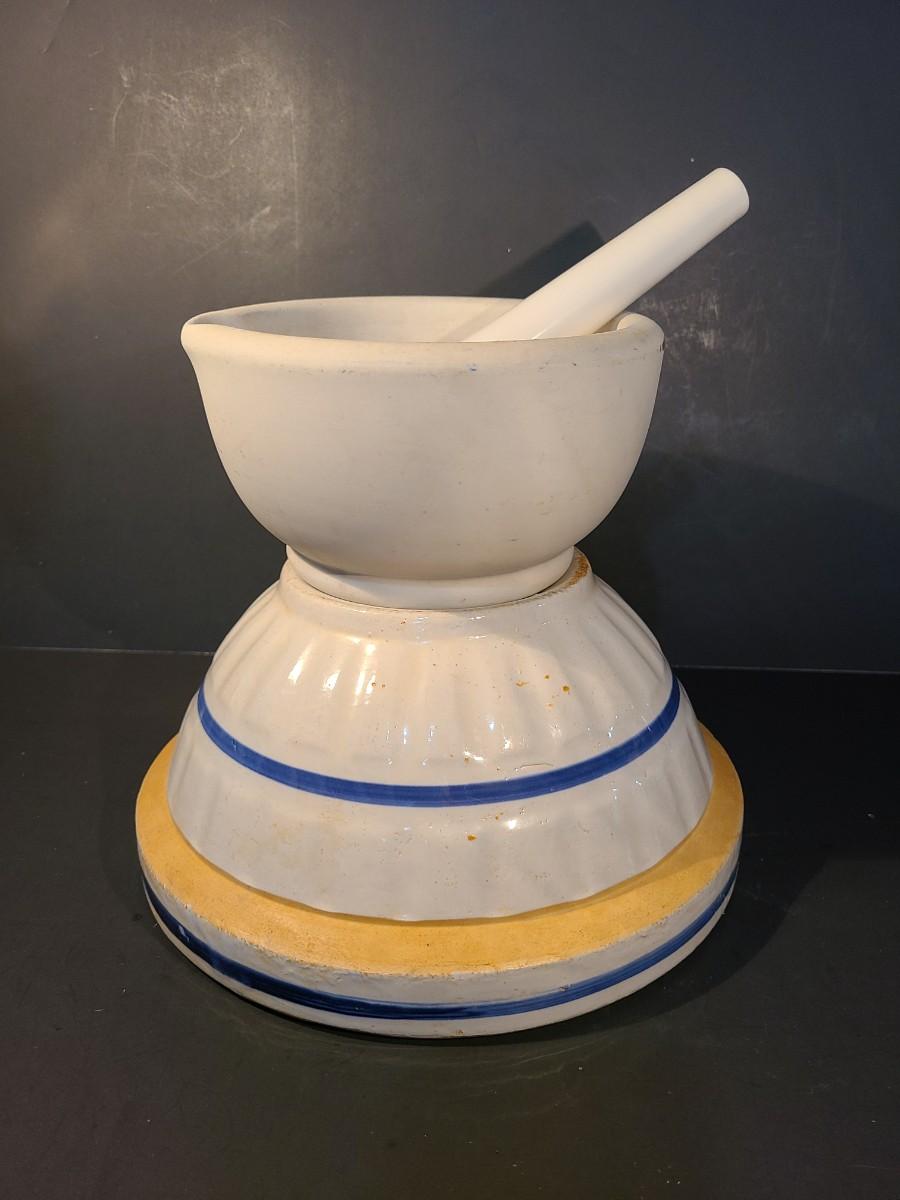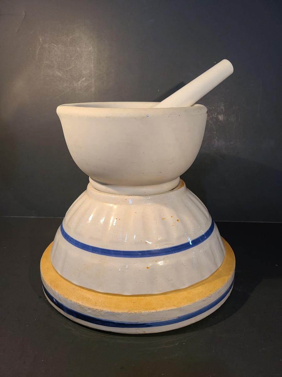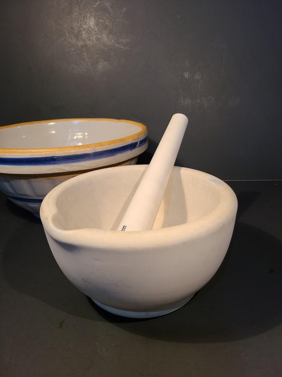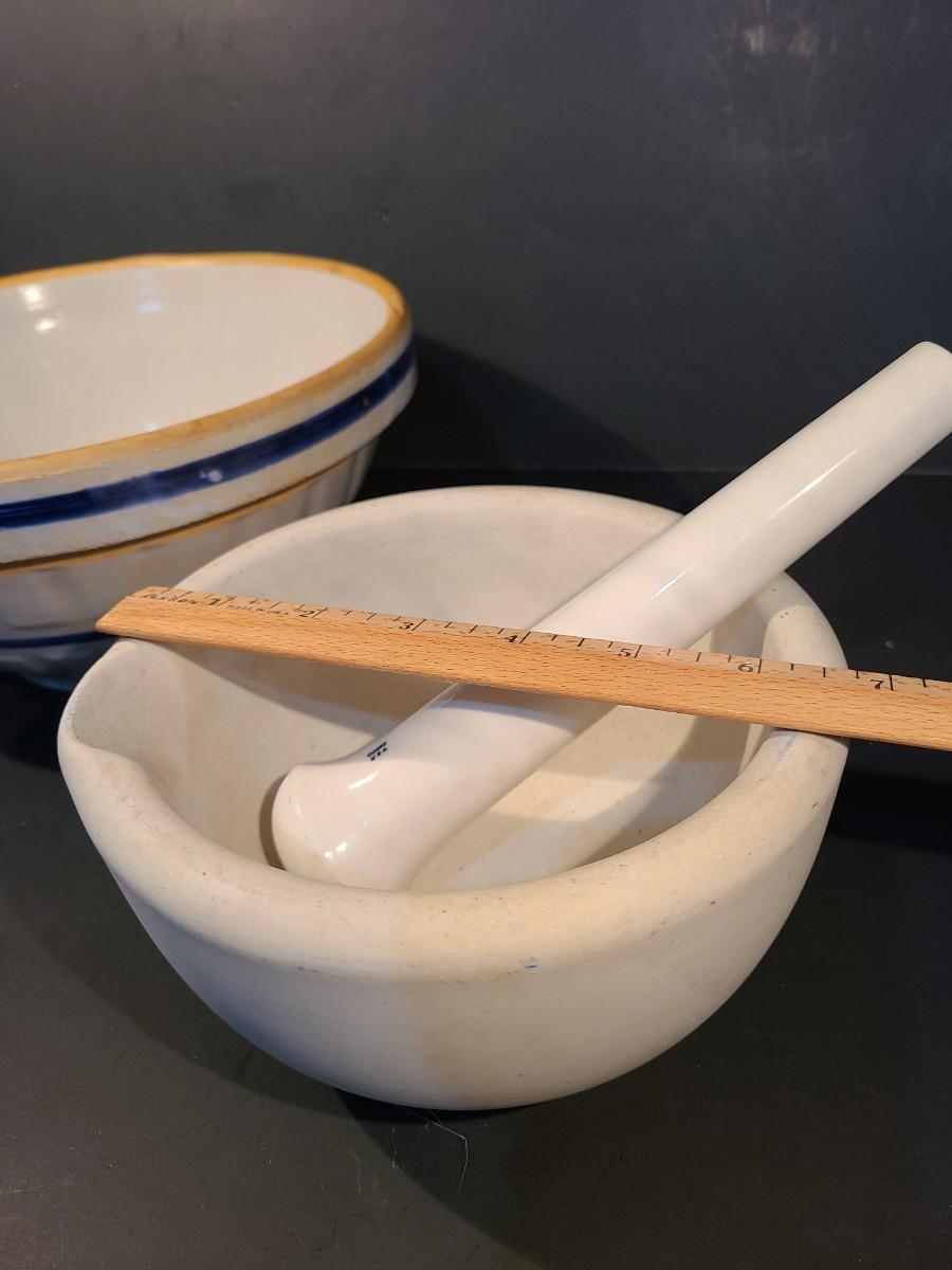 LOT 117: Vintage 10 inch Mixing Bowl & Mortar/Pestle