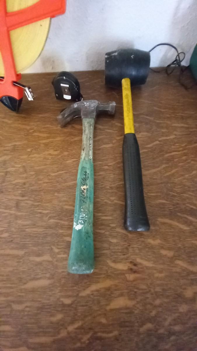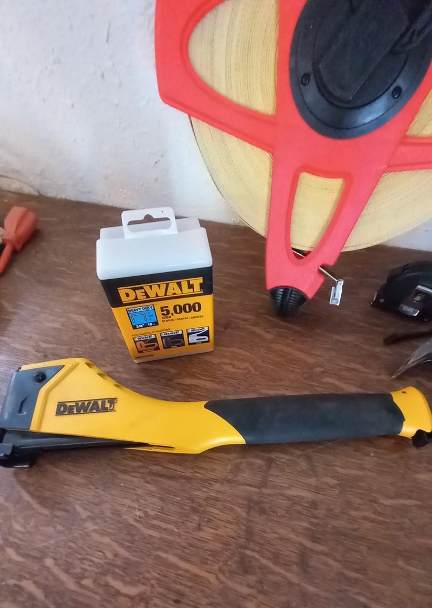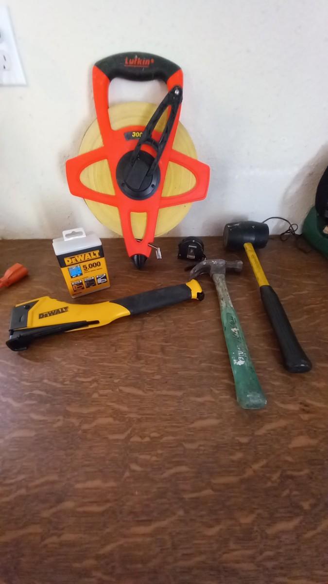 LOT 424 DEWALT STAPLER, LONG TAPE MEASURE, HAMMER AND MALLOT (SE)