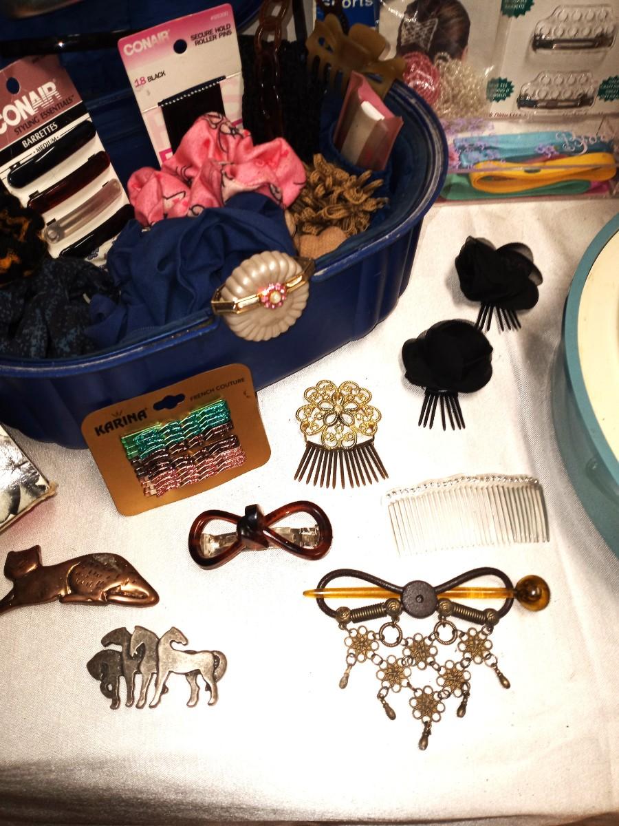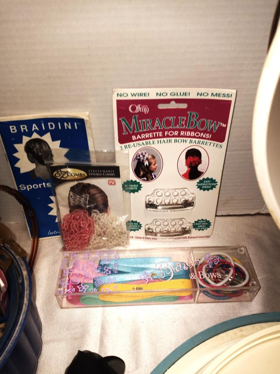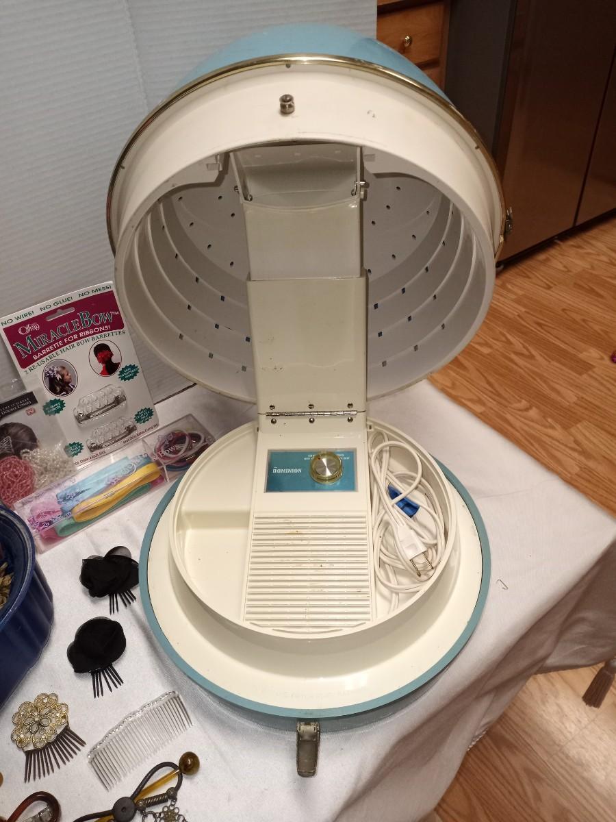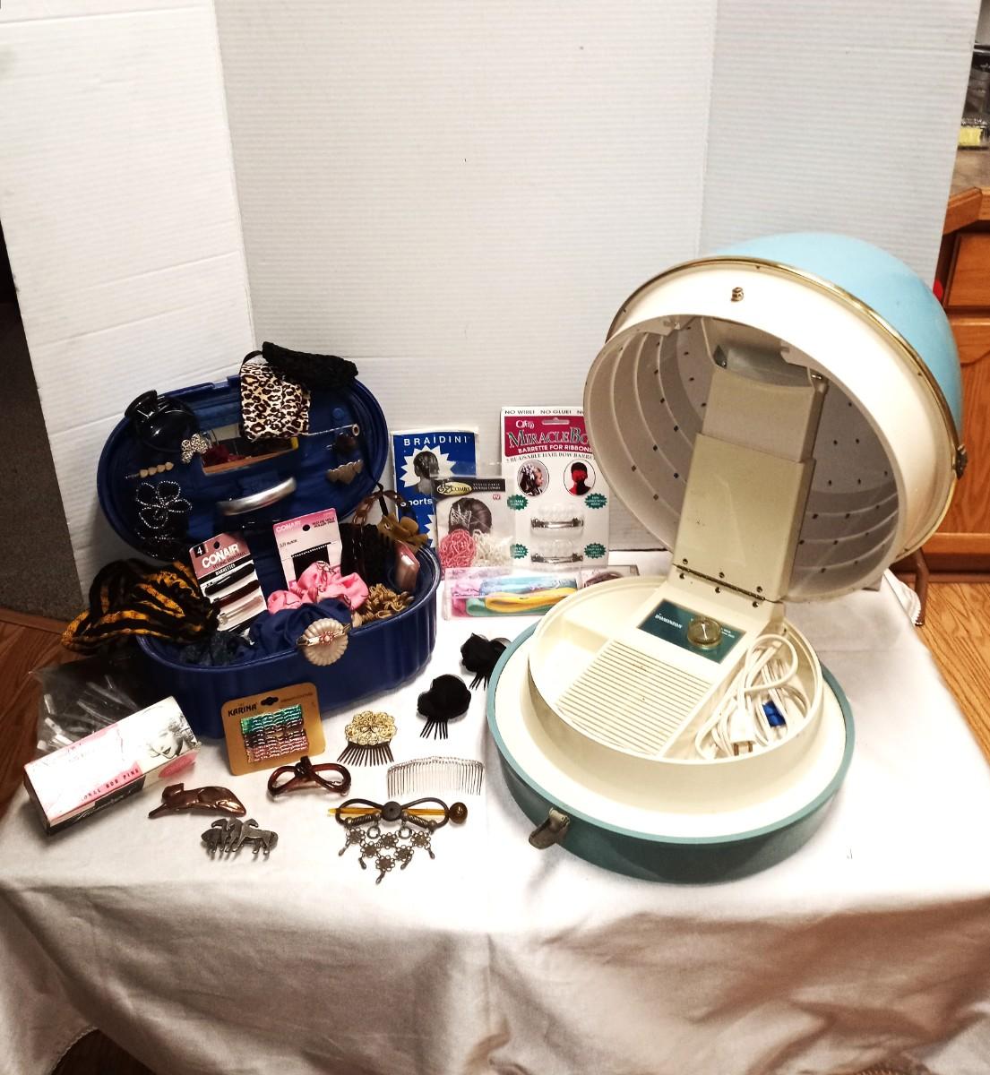 DOMINION TABLETOP HAIRDRYER-NICE VARIETY OF HAIR ORNAMENTS-CARRY CASE