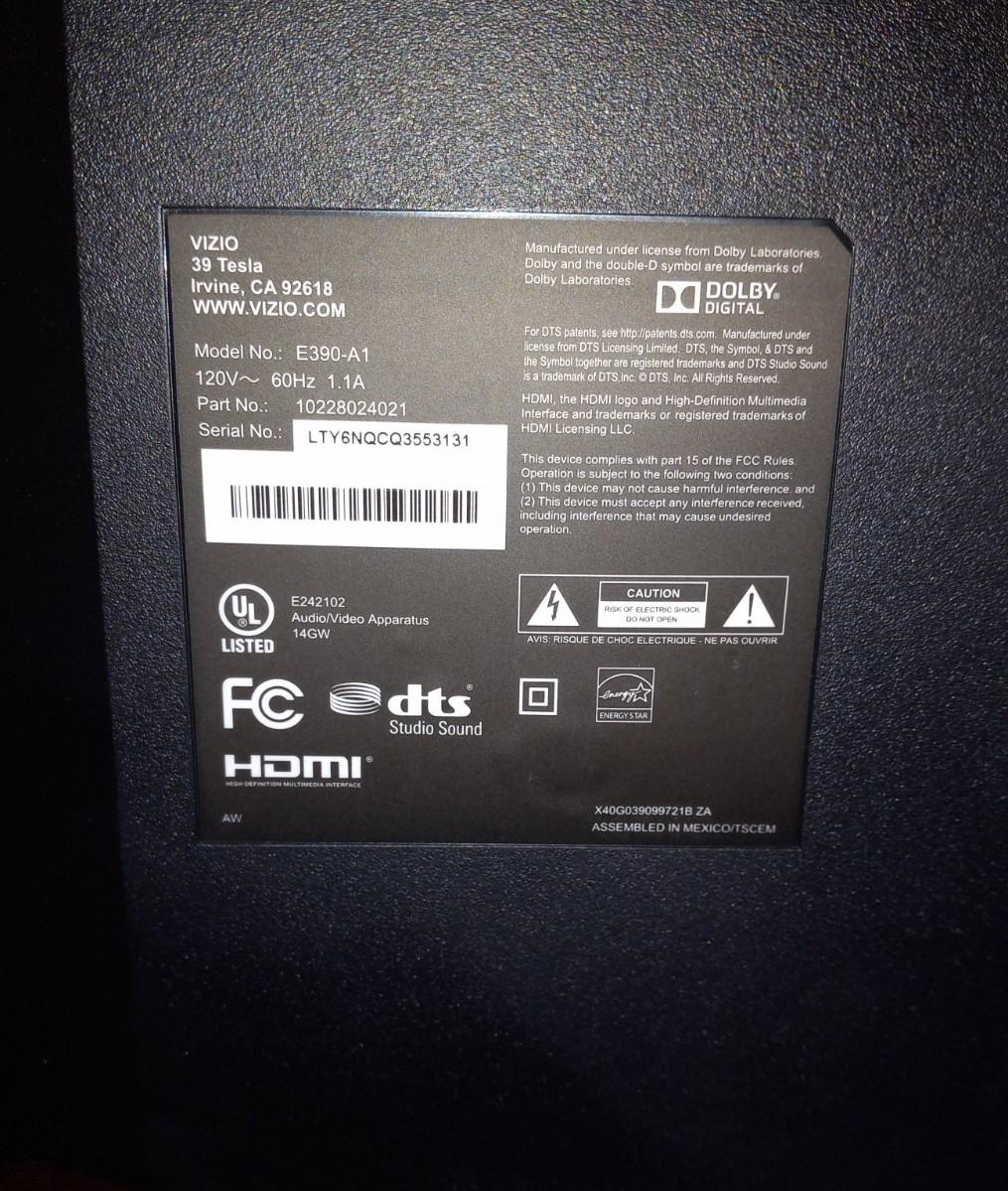 40" VIZIO FLATSCREEN TV MODEL E390-A1
