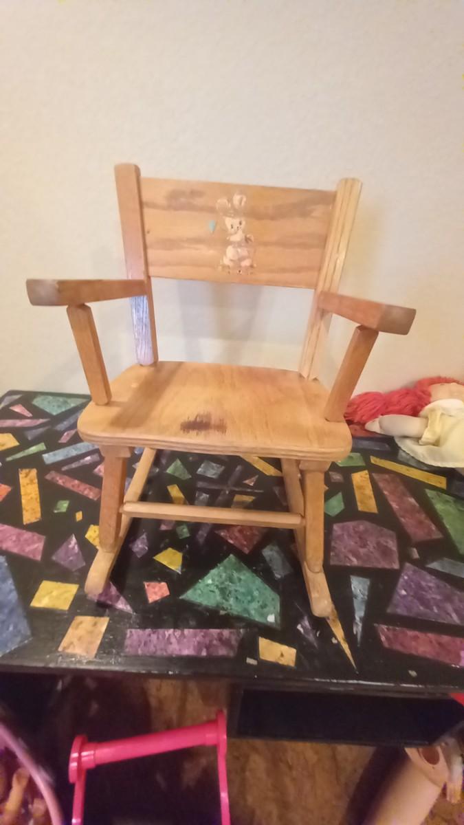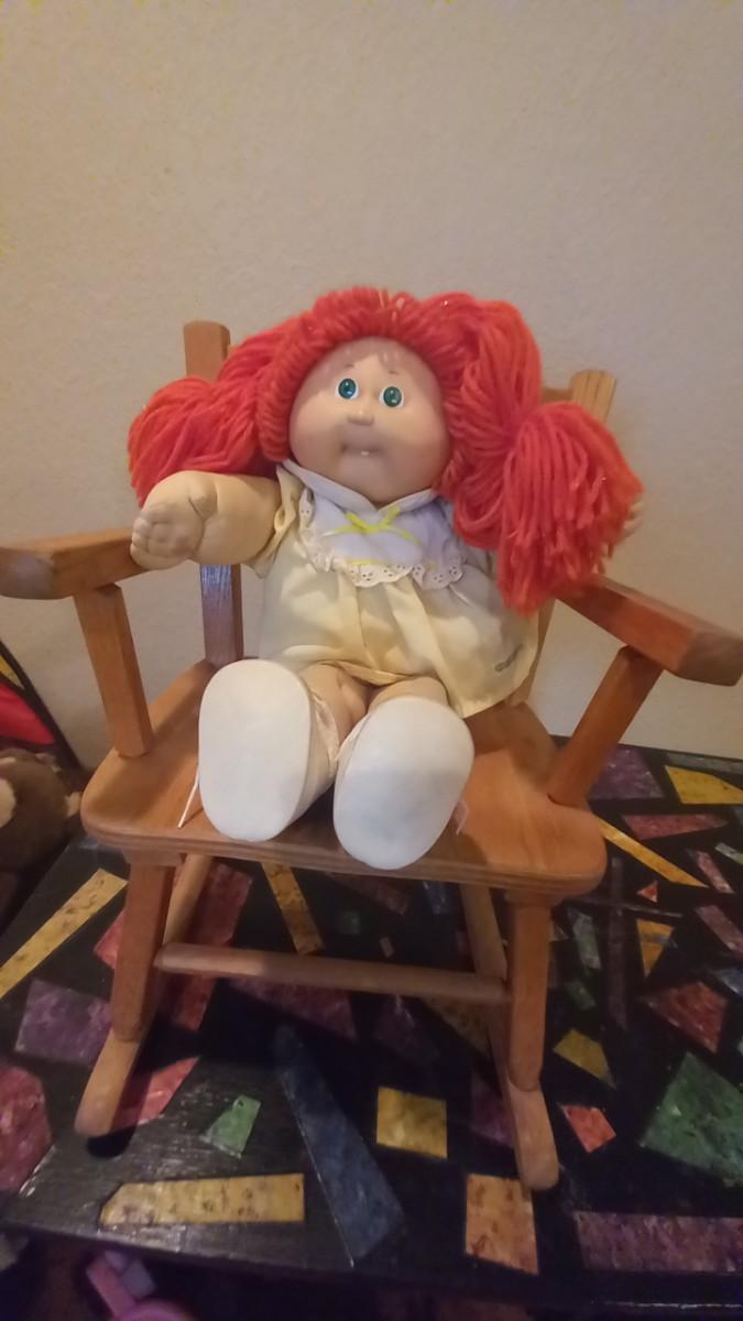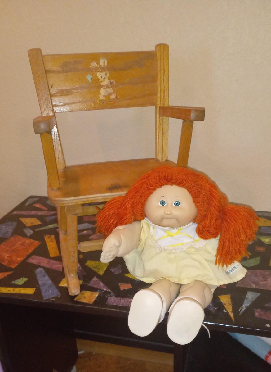 LOT 192 WOODEN CHILD'S ROCKING CHAIR AND A CABBAGE PATCH DOLL (HD)