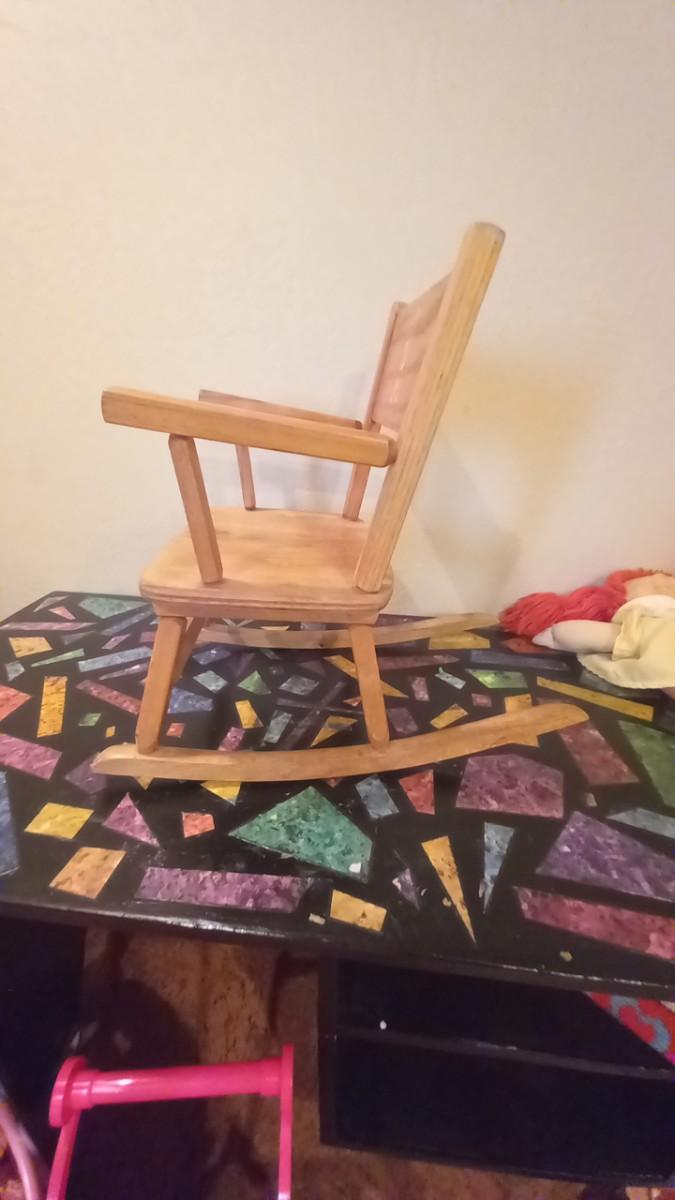 LOT 192  WOODEN CHILD'S ROCKING CHAIR AND A CABBAGE PATCH DOLL (HD)
