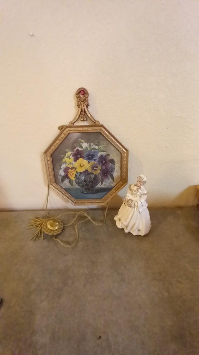 LOT 169  DELIA FIGURINE, HANGING PICTURE OF FLOWERS