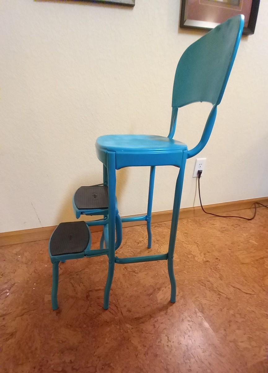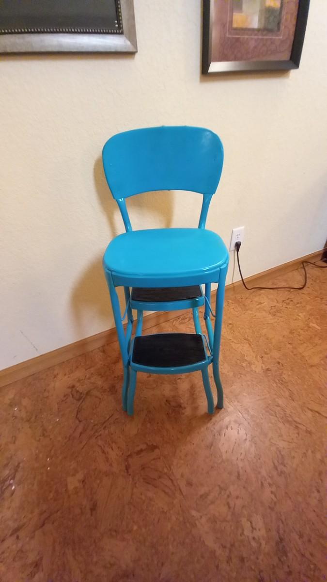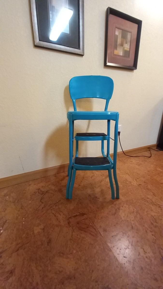 LOT 163 VINTAGE STEP STOOL CHAIR WITH TWO FRAMED PICTURES
