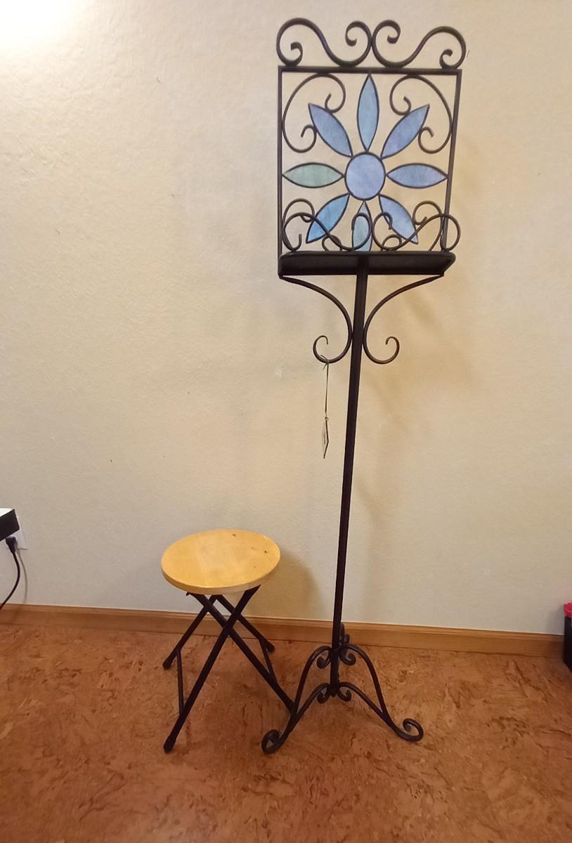 METAL MUSIC STAND MEASURES 12X57,AND SMALL STOOL 13X18