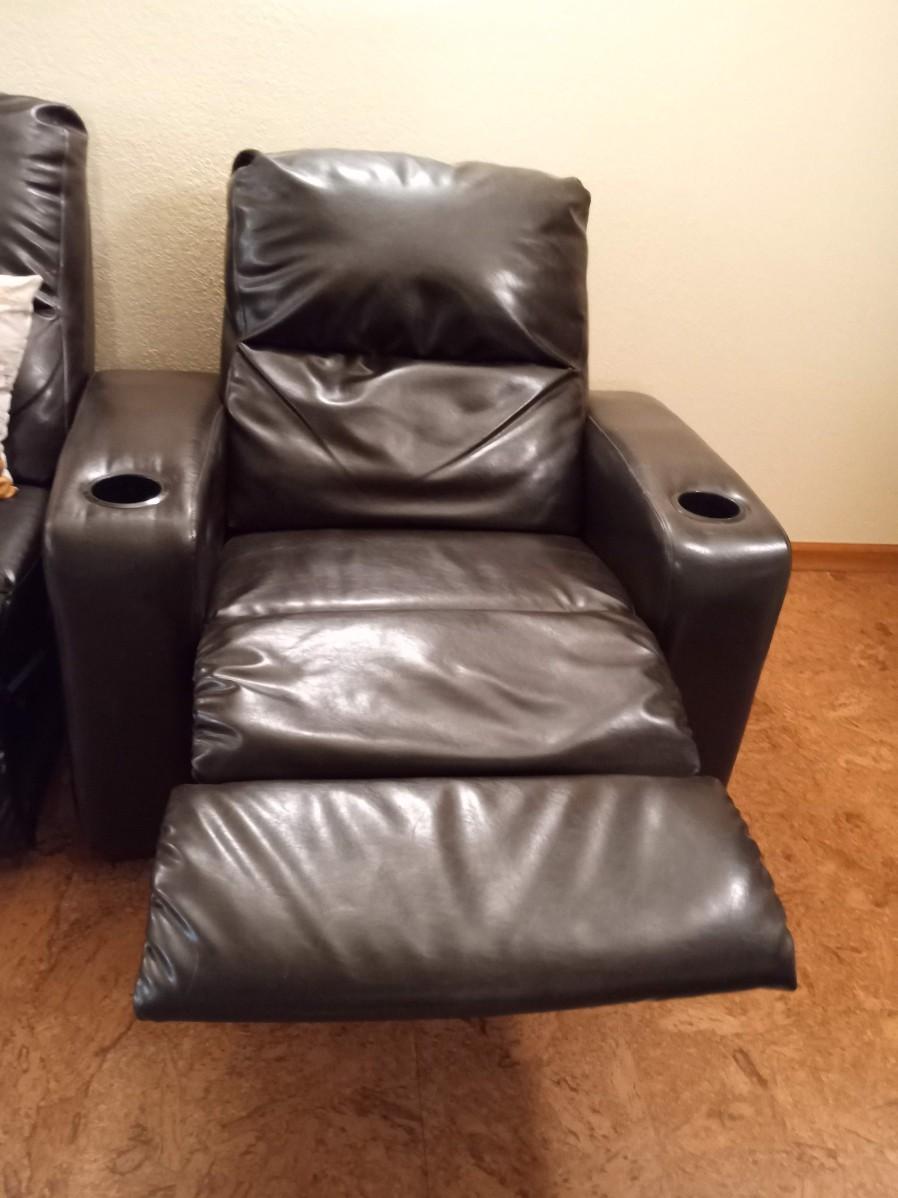 THE CABLES HAVE COME LOOSE ON 2 OF THE RECLINERS SO ONLY 1 RECLINES WHEN PULLING THE KNOB OTHERWISE THEY ARE IN GOOD SHAPE