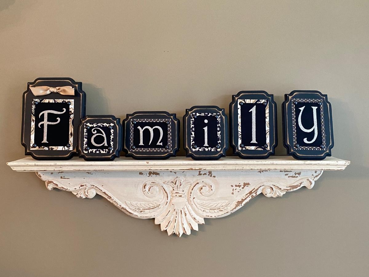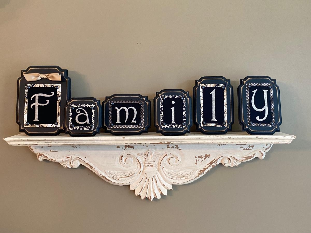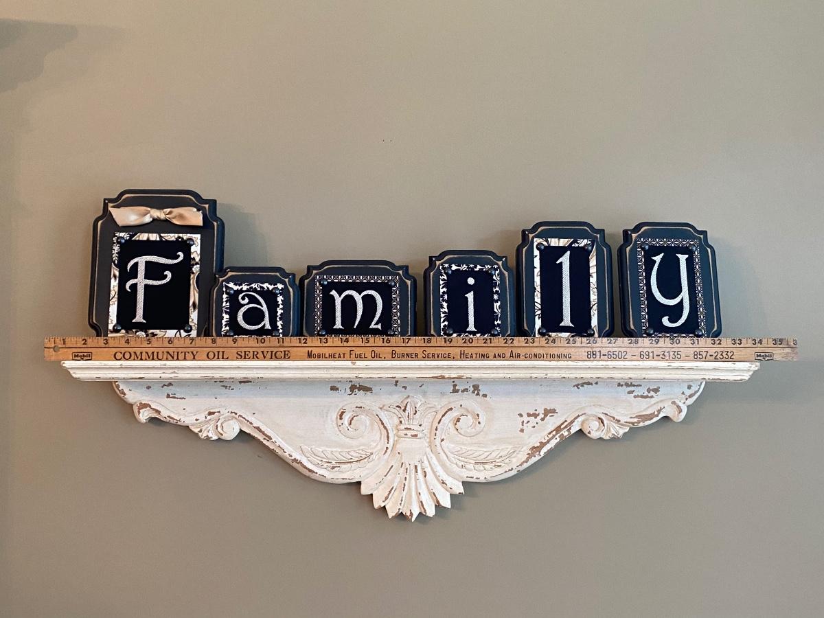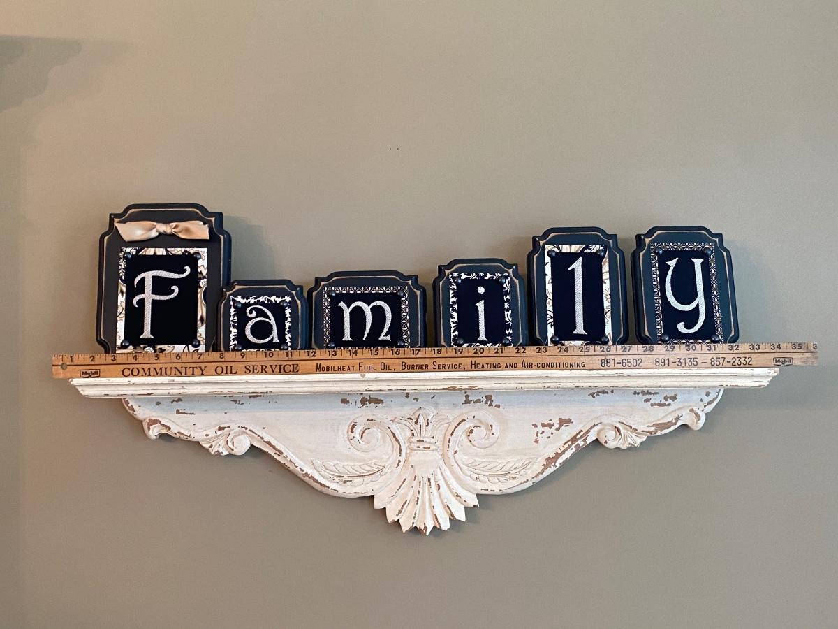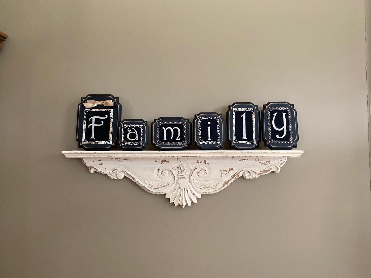 LOT 102C: Wall Shelf and Framed “Family” Decor