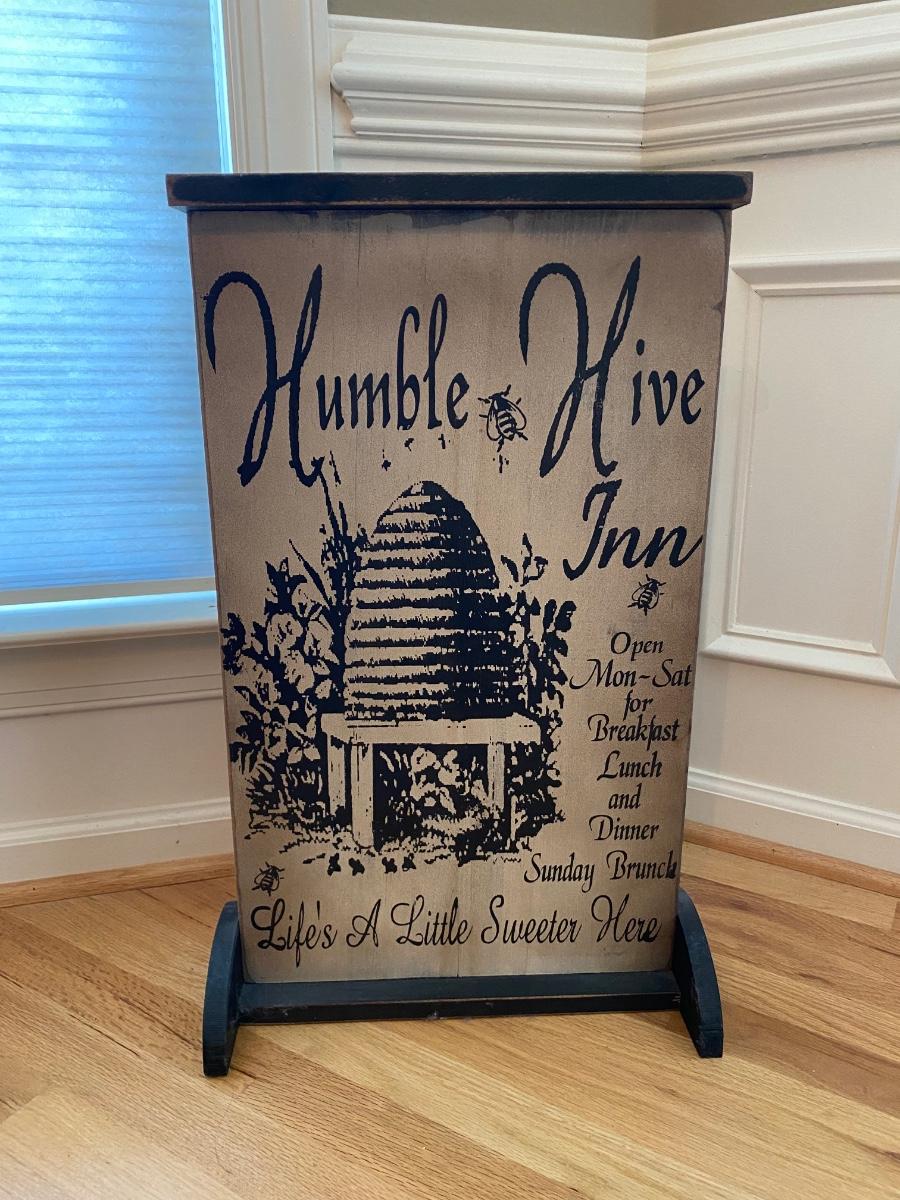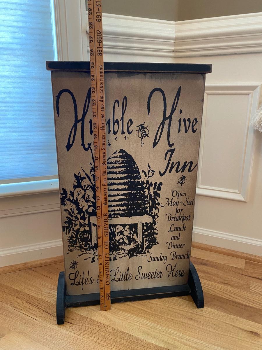 Bee themed lot includes Honey Hive Inn sign. Bee themed decorations for the home. Please see all pictures as they are the best representation of the items. The pictures show condition, measurements if taken, and what is included in the lot. Due to the large amount that we photograph and the time frame, we are not always able to take measurements. All items unless noted, are pre-owned and have been used. If you purchased furniture, you must bring help. We do not allow one person to carry large furniture out on their own. Bring help, tools and a truck for the safety of our client’s homes, and your personal safety. Any damages that result to the property including walls, and floors due to moving of the furniture will be charged to the buyer. Company policy. Thank you.