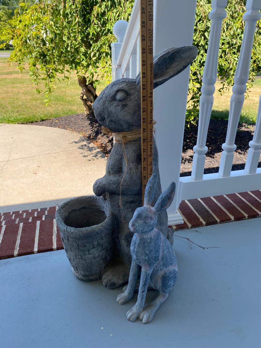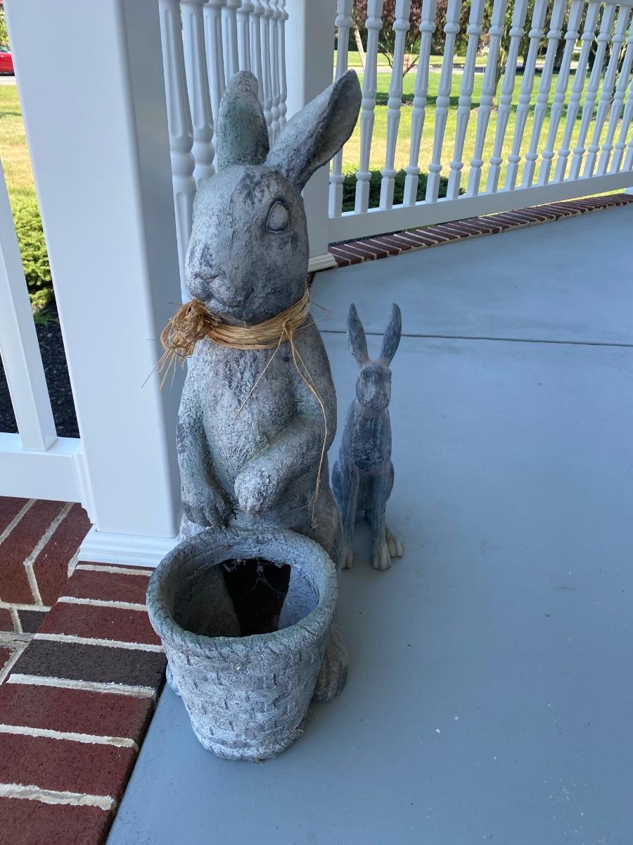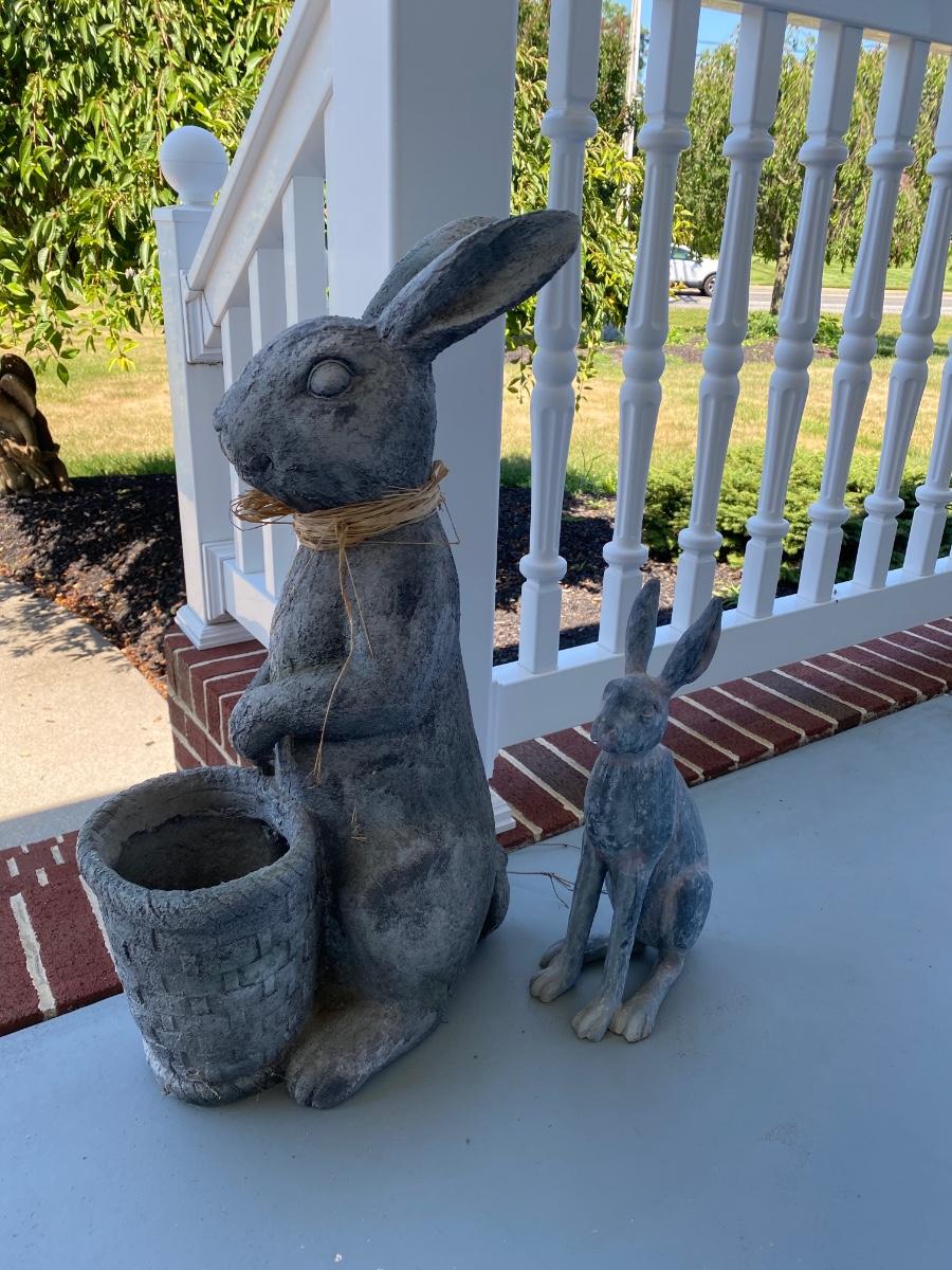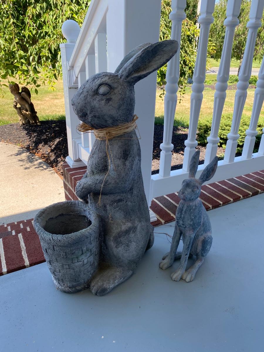 Resin Bunnies look like stone. Large bunny is also a flower pot. Please see all pictures as they are the best representation of the items. The pictures show condition, measurements if taken, and what is included in the lot. Due to the large amount that we photograph and the time frame, we are not always able to take measurements. All items unless noted, are pre-owned and have been used. If you purchased furniture, you must bring help. We do not allow one person to carry large furniture out on their own. Bring help, tools and a truck for the safety of our client’s homes, and your personal safety. Any damages that result to the property including walls, and floors due to moving of the furniture will be charged to the buyer. Company policy. Thank you.