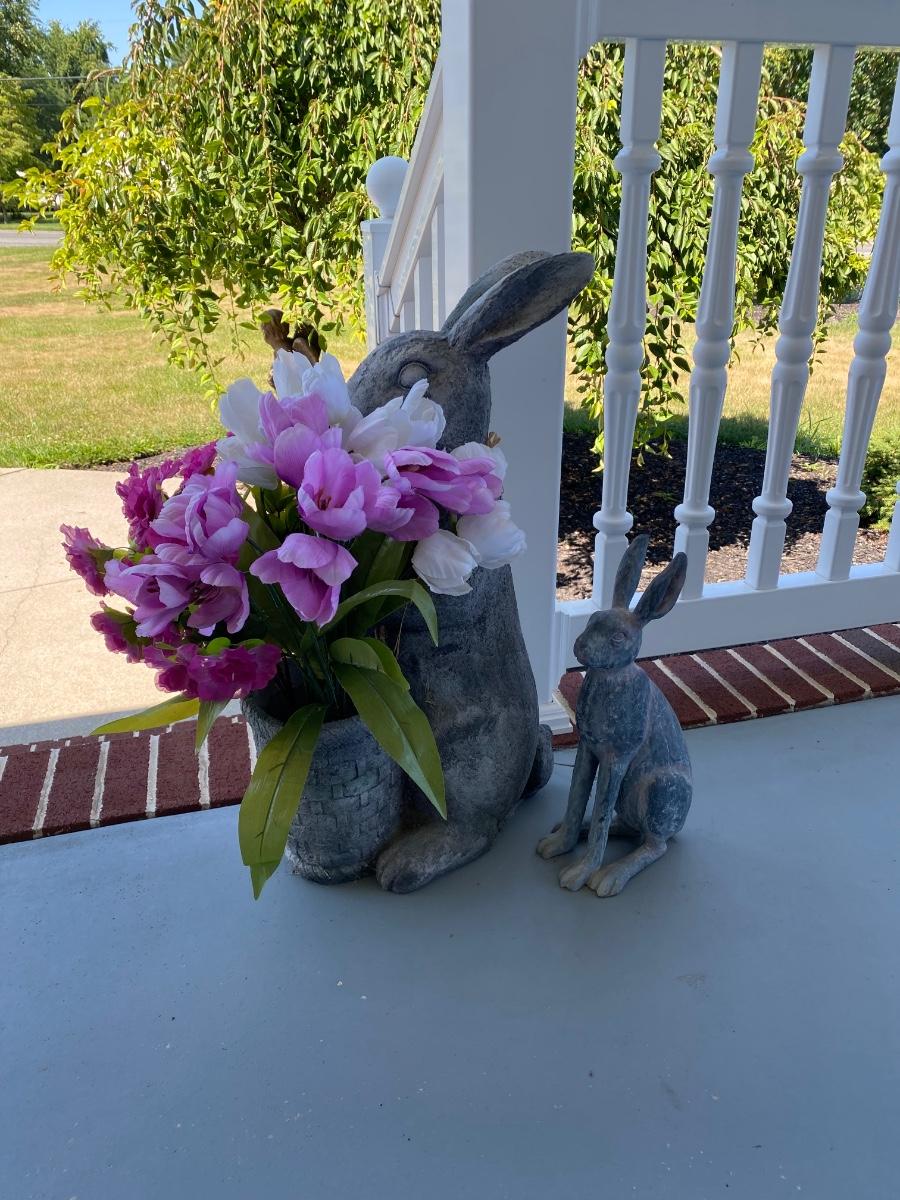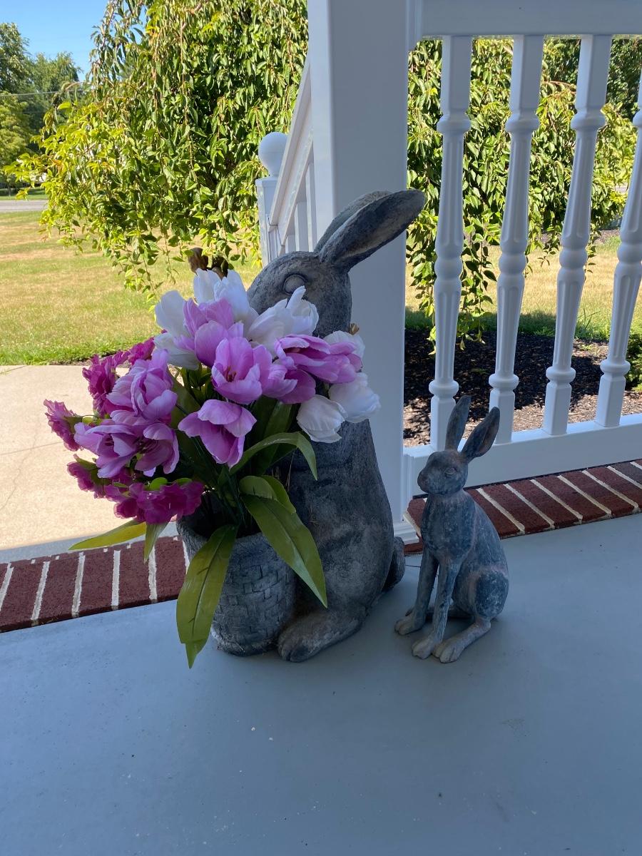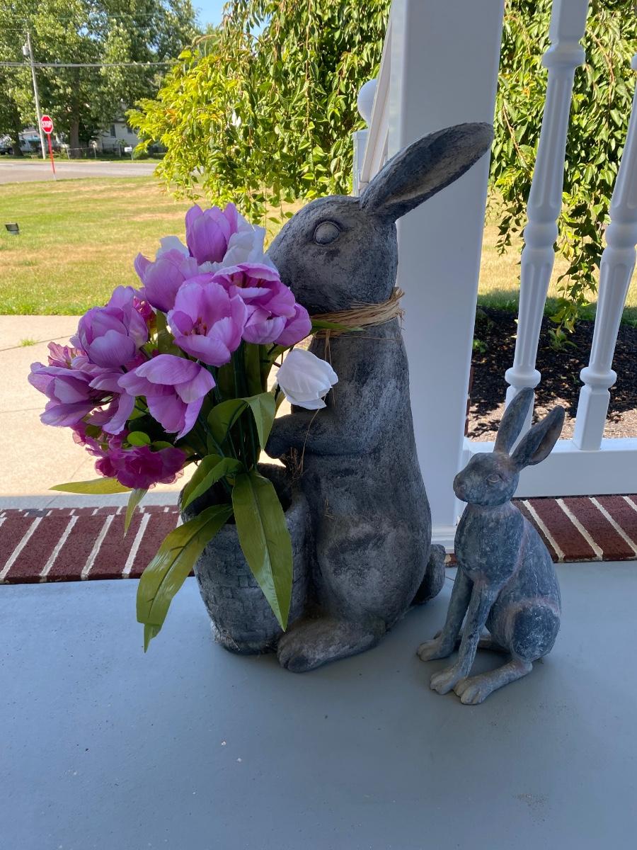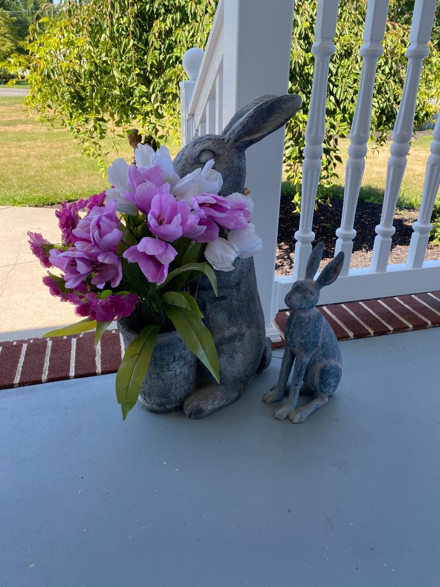 Resin Bunnies look like stone. Large bunny is also a flower pot. Please see all pictures as they are the best representation of the items. The pictures show condition, measurements if taken, and what is included in the lot. Due to the large amount that we photograph and the time frame, we are not always able to take measurements. All items unless noted, are pre-owned and have been used. If you purchased furniture, you must bring help. We do not allow one person to carry large furniture out on their own. Bring help, tools and a truck for the safety of our client’s homes, and your personal safety. Any damages that result to the property including walls, and floors due to moving of the furniture will be charged to the buyer. Company policy. Thank you.