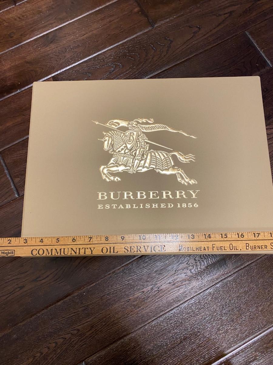 Large Burberry box (empty). Box does have damage under lid. Shown in pictures. Please see all pictures as they are the best representation of the items. The pictures show condition, measurements if taken, and what is included in the lot. Due to the large amount that we photograph and the time frame, we are not always able to take measurements. All items unless noted, are pre-owned and have been used. If you purchased furniture, you must bring help. We do not allow one person to carry large furniture out on their own. Bring help, tools and a truck for the safety of our client’s homes, and your personal safety. Any damages that result to the property including walls, and floors due to moving of the furniture will be charged to the buyer. Company policy. Thank you.