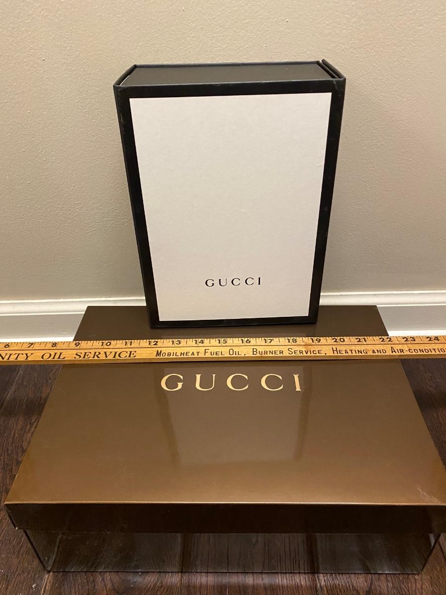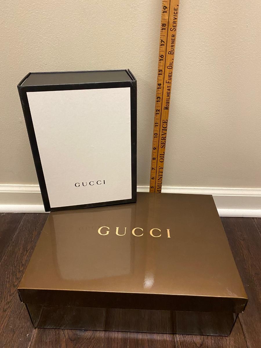 Two (empty) Gucci boxes. Please see all pictures as they are the best representation of the items. The pictures show condition, measurements if taken, and what is included in the lot. Due to the large amount that we photograph and the time frame, we are not always able to take measurements. All items unless noted, are pre-owned and have been used. If you purchased furniture, you must bring help. We do not allow one person to carry large furniture out on their own. Bring help, tools and a truck for the safety of our client’s homes, and your personal safety. Any damages that result to the property including walls, and floors due to moving of the furniture will be charged to the buyer. Company policy. Thank you.