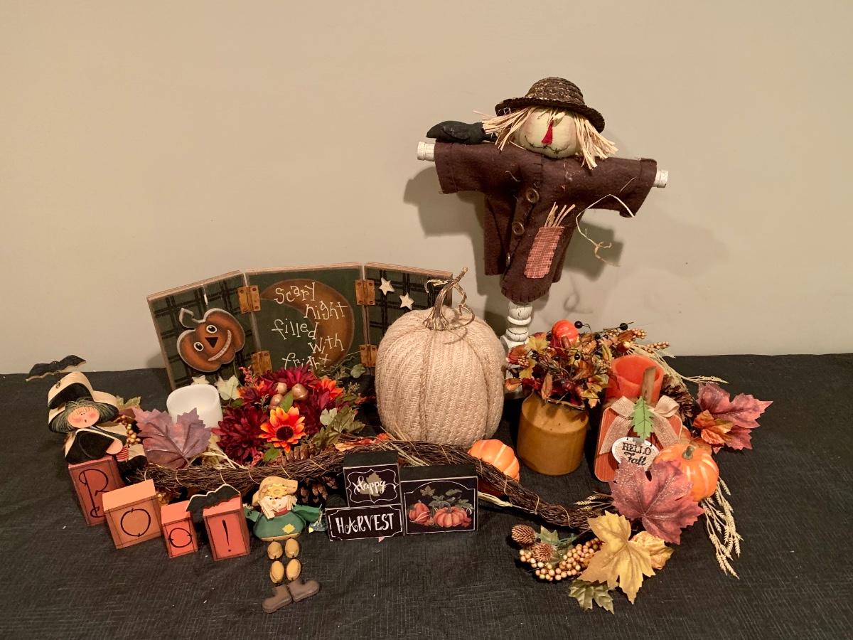 R LOT 0029: Fall Collection: Pumpkins, Scarecrows Faux Floral/Leaves